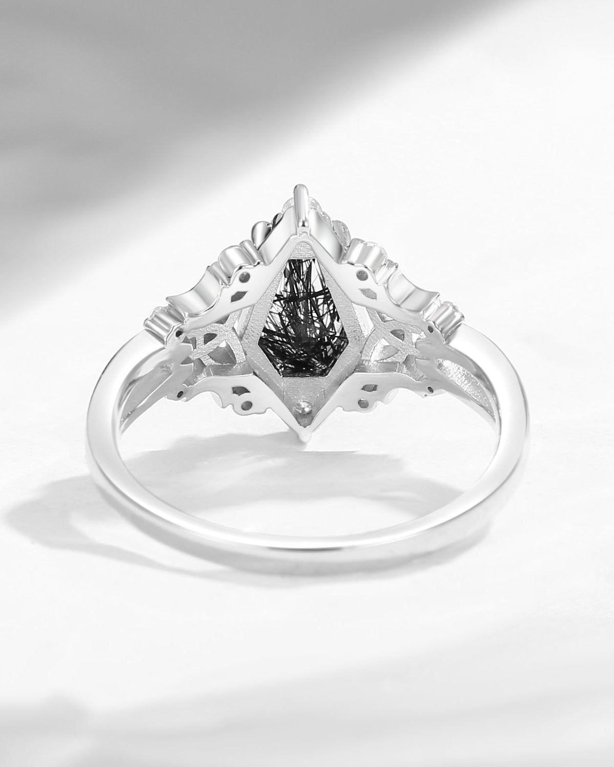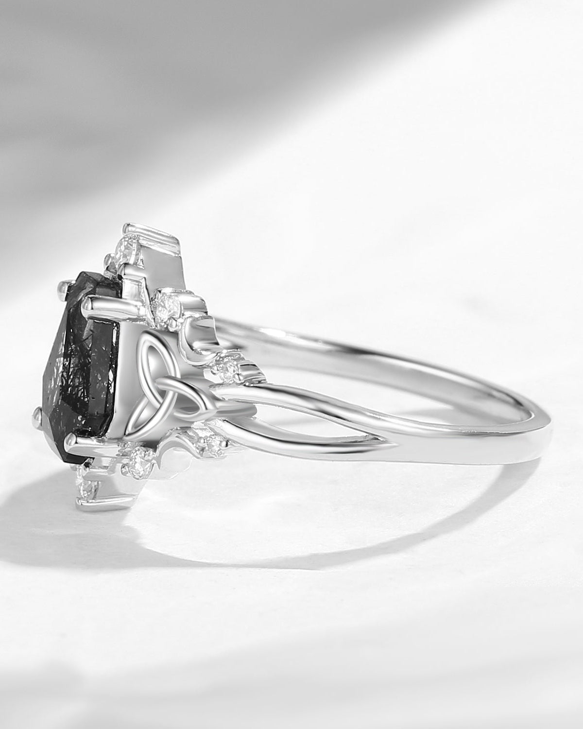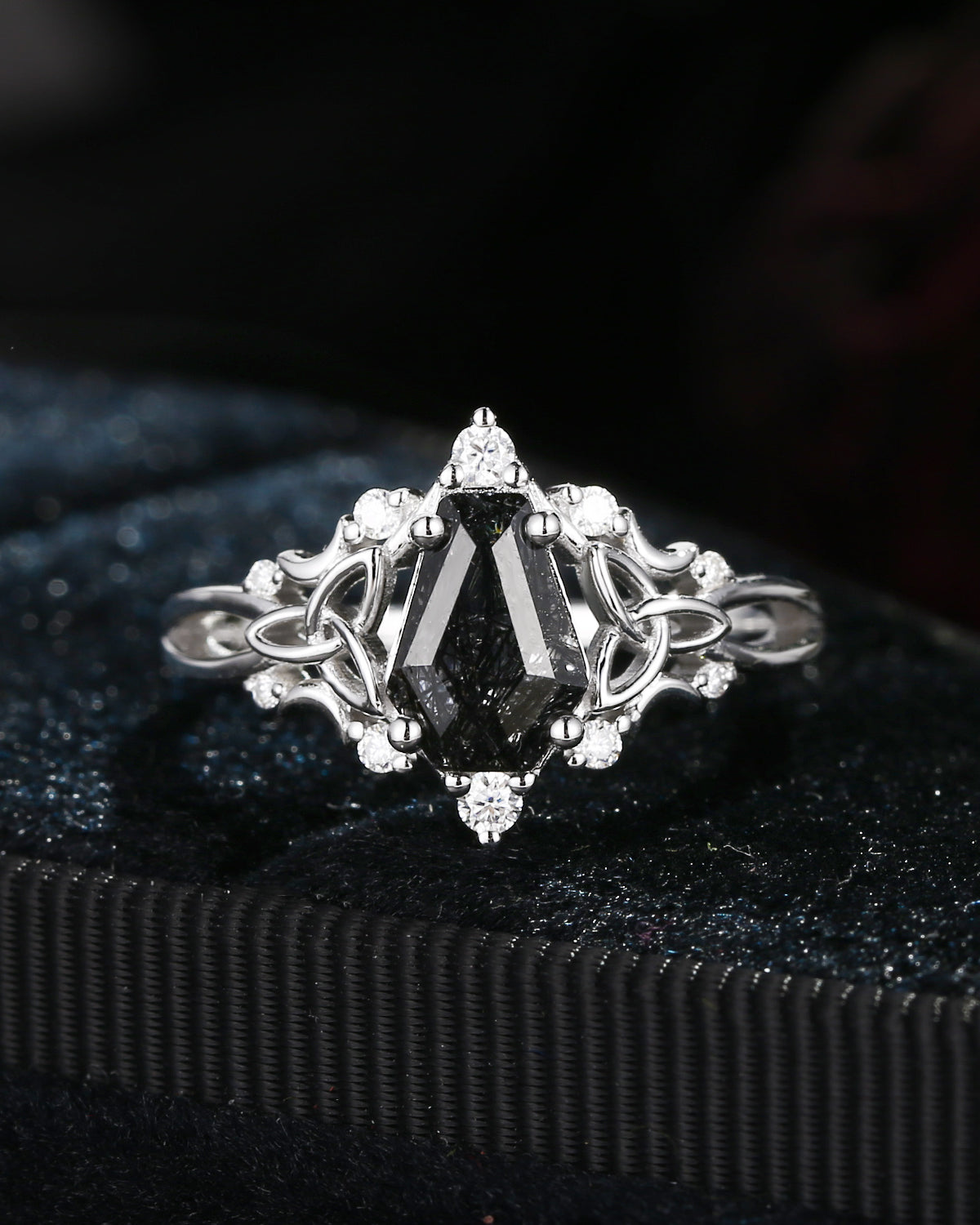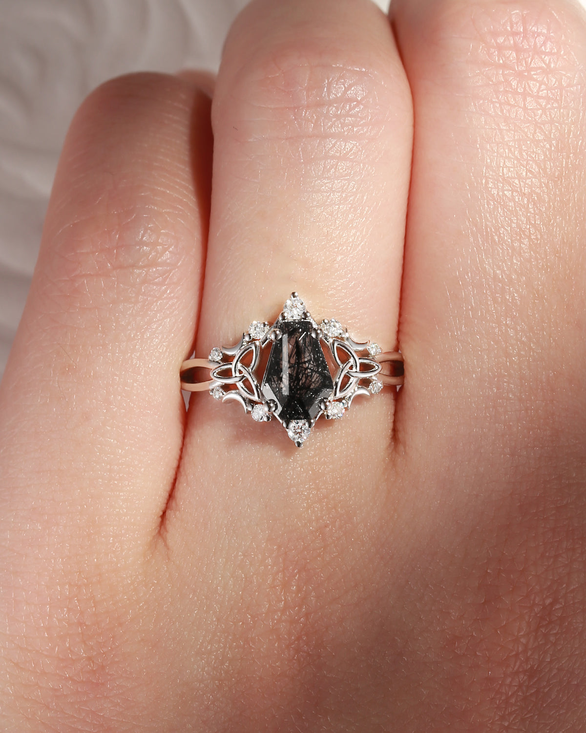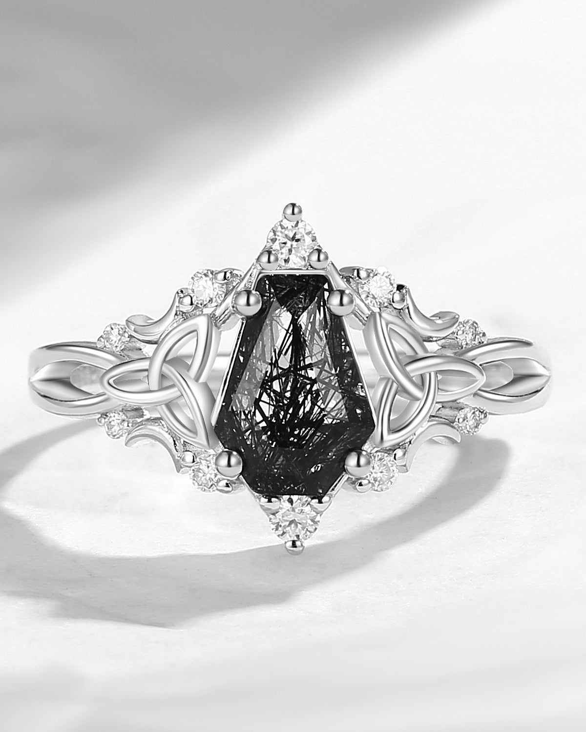 Celtic Moon | Coffin Black Rutilated Quartz Celtic Engagement Ring