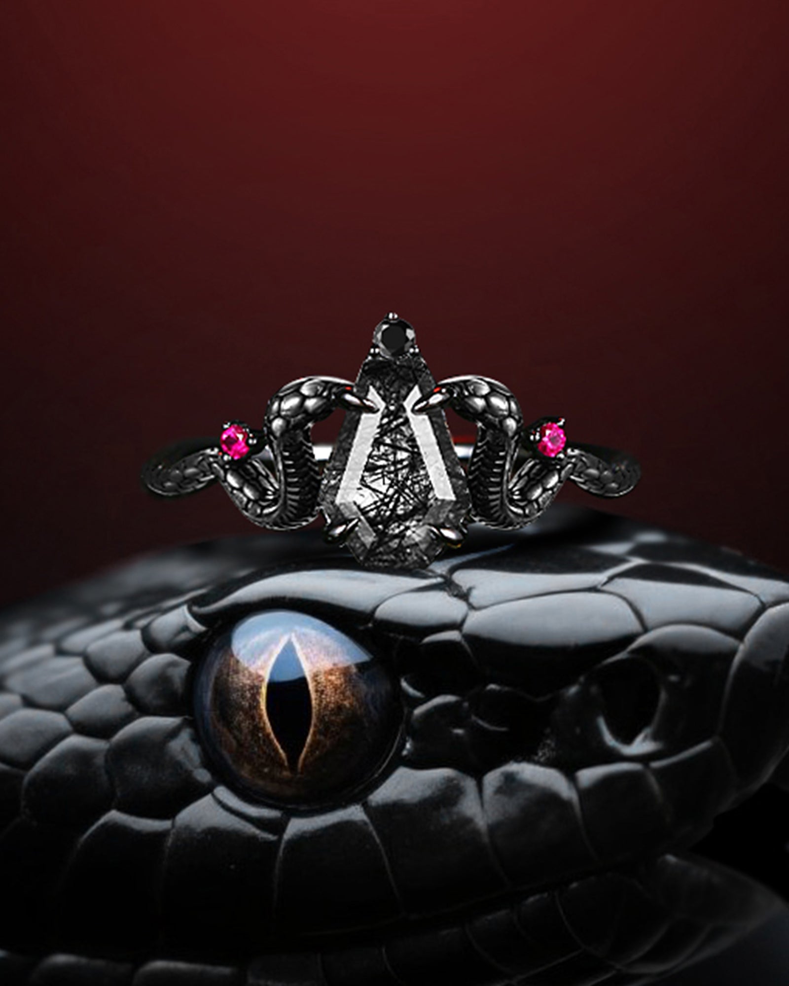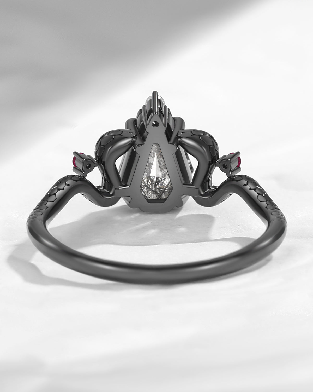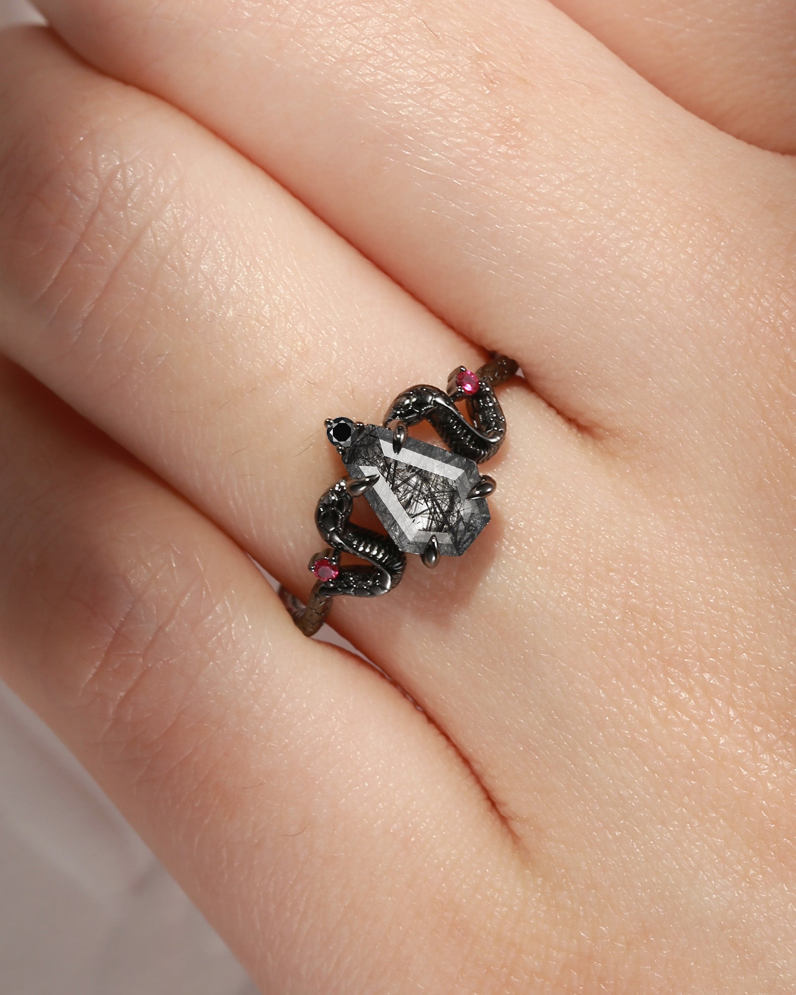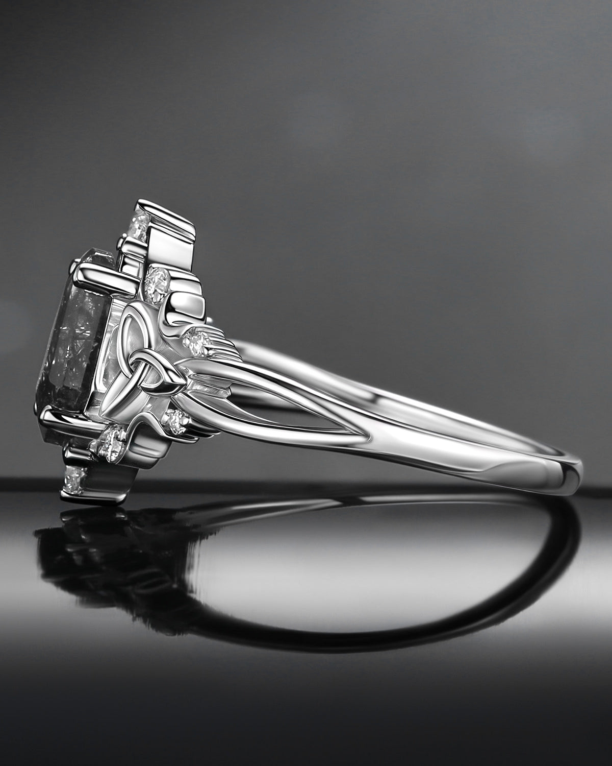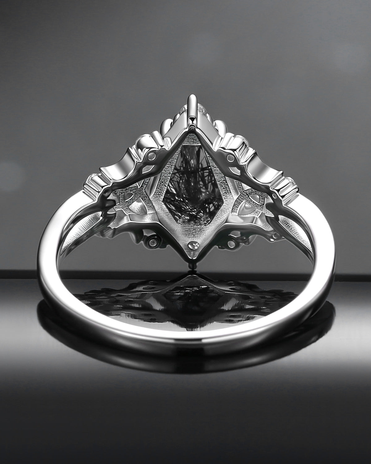 Celtic Moon | Coffin Black Rutilated Quartz Celtic Engagement Ring