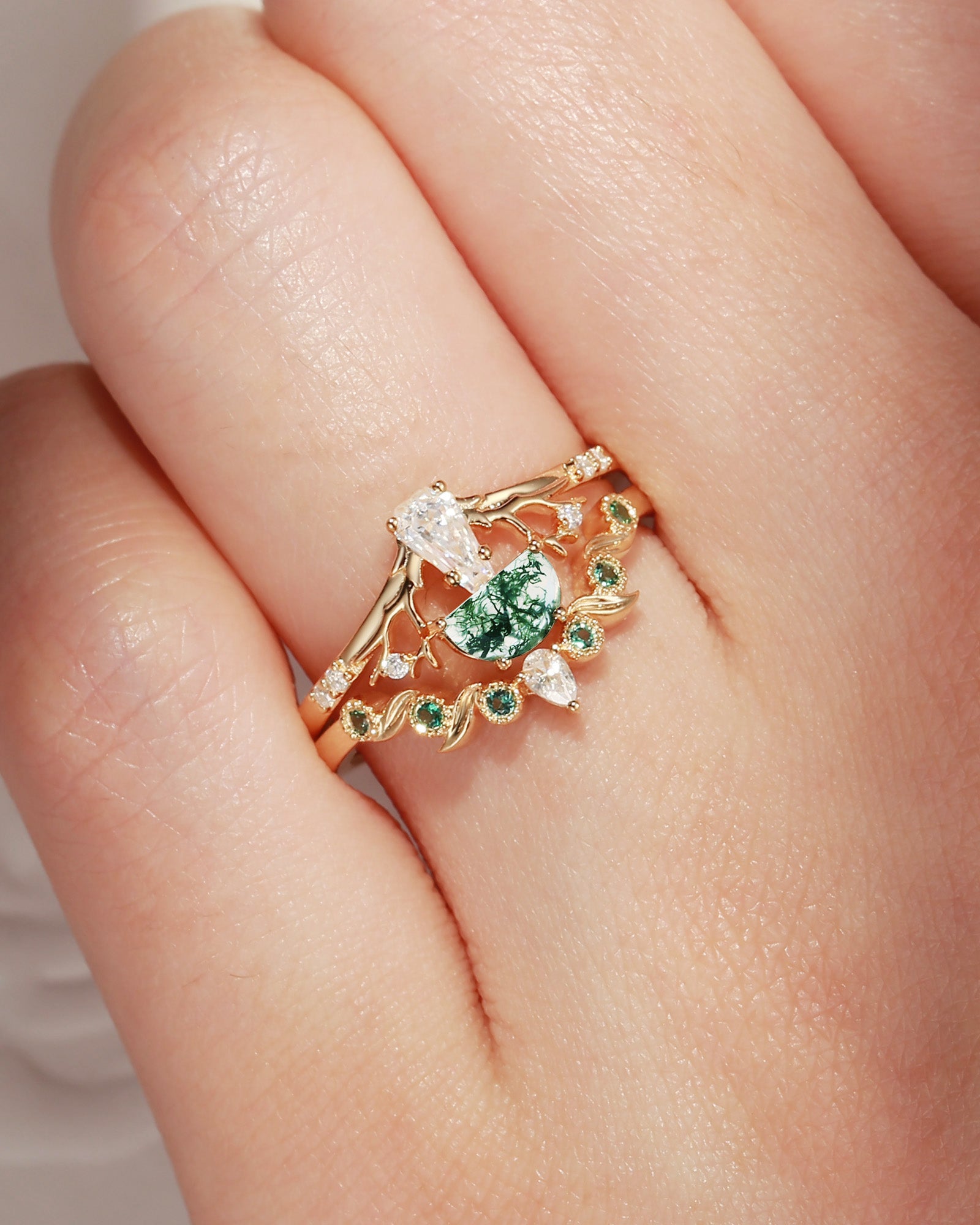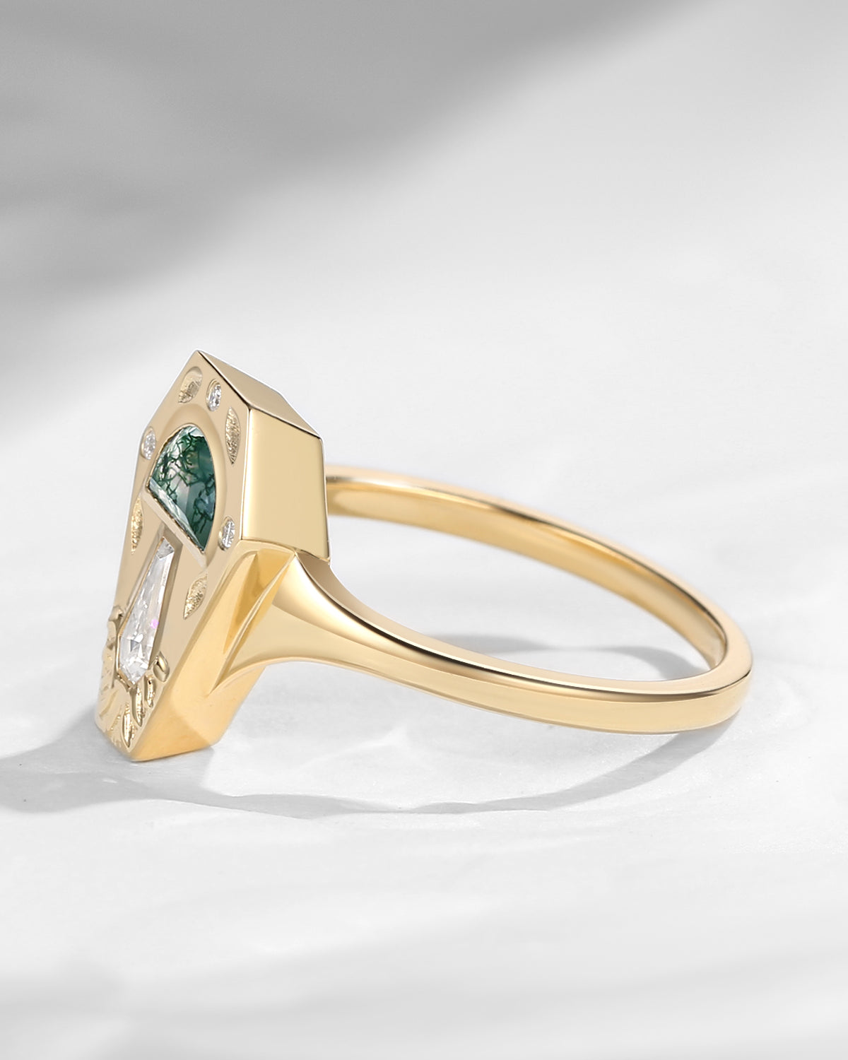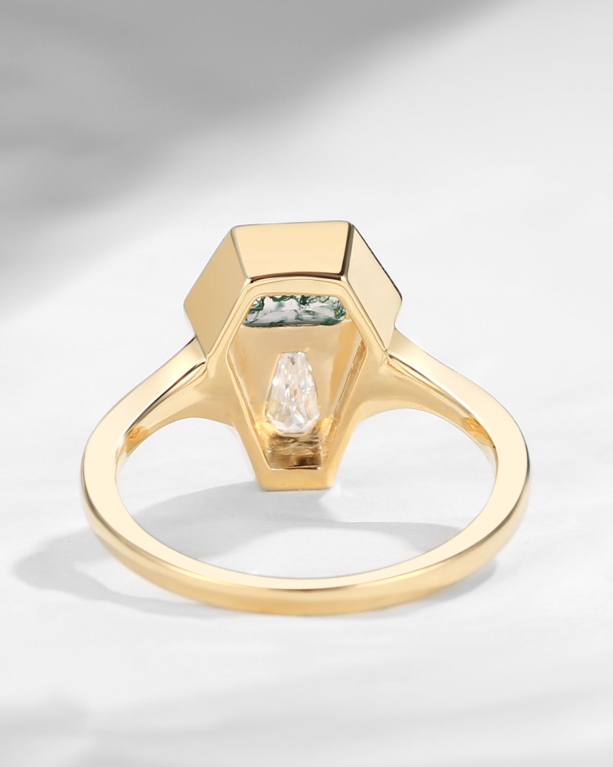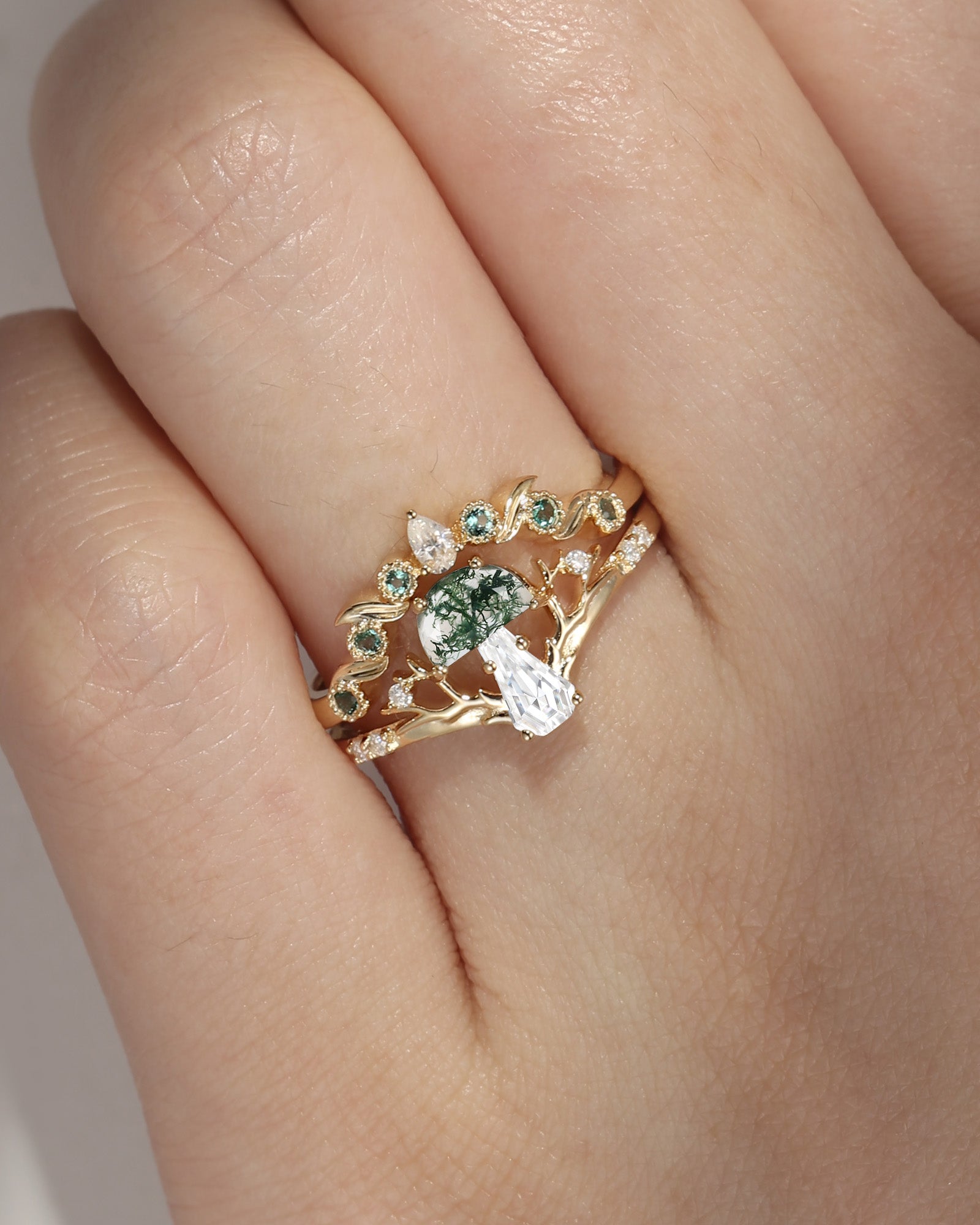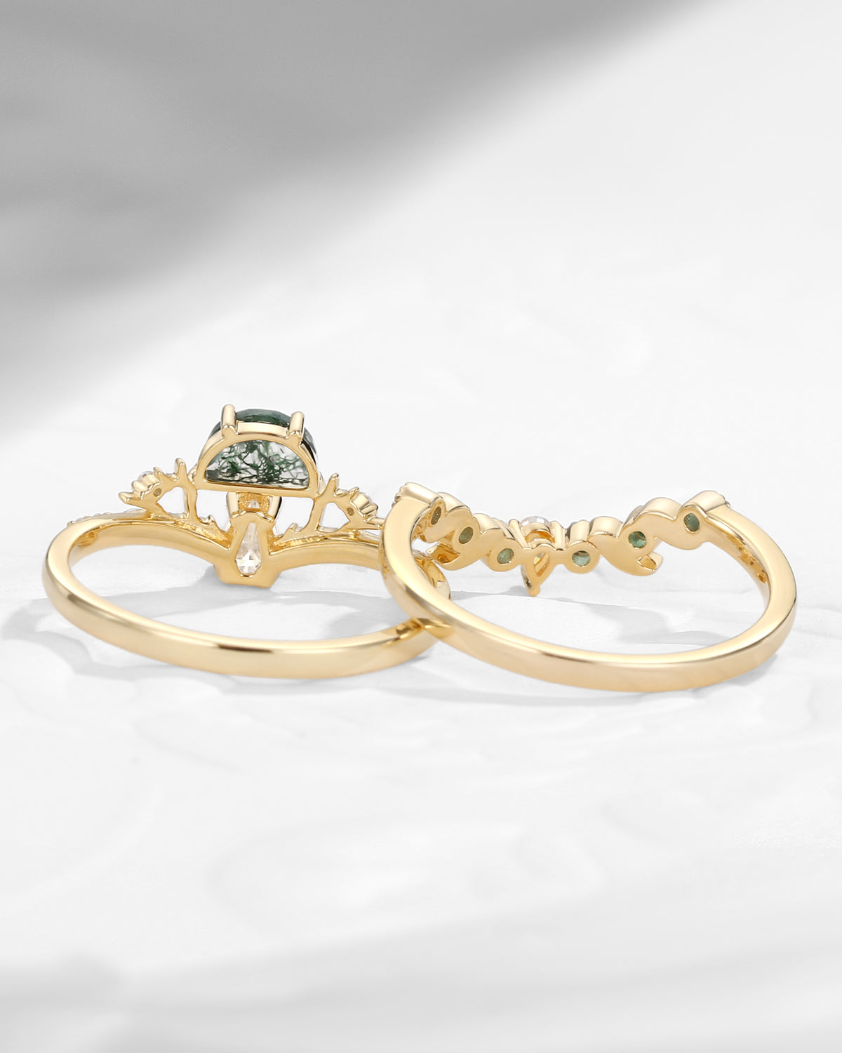 Crescent Moon | Coffin Cut Moss Agate 'Till Death Do Us Apart' Ring Set 2pcs