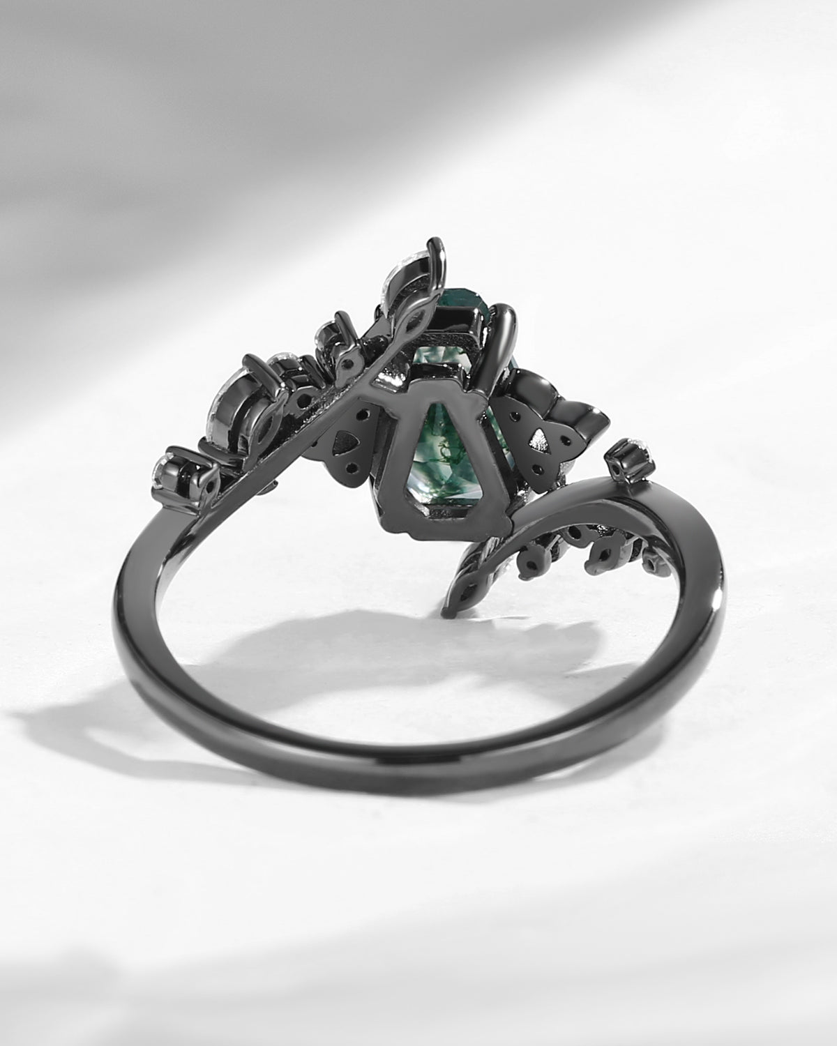 Crescent Moon | Coffin Cut Lab Emerald 'Black Statement' Ring Set 2pcs