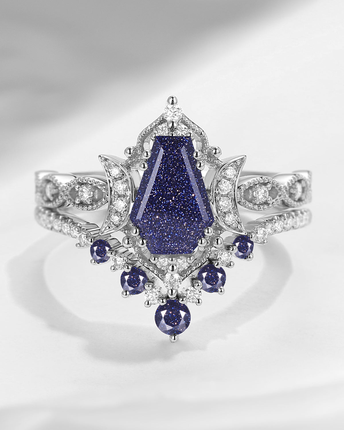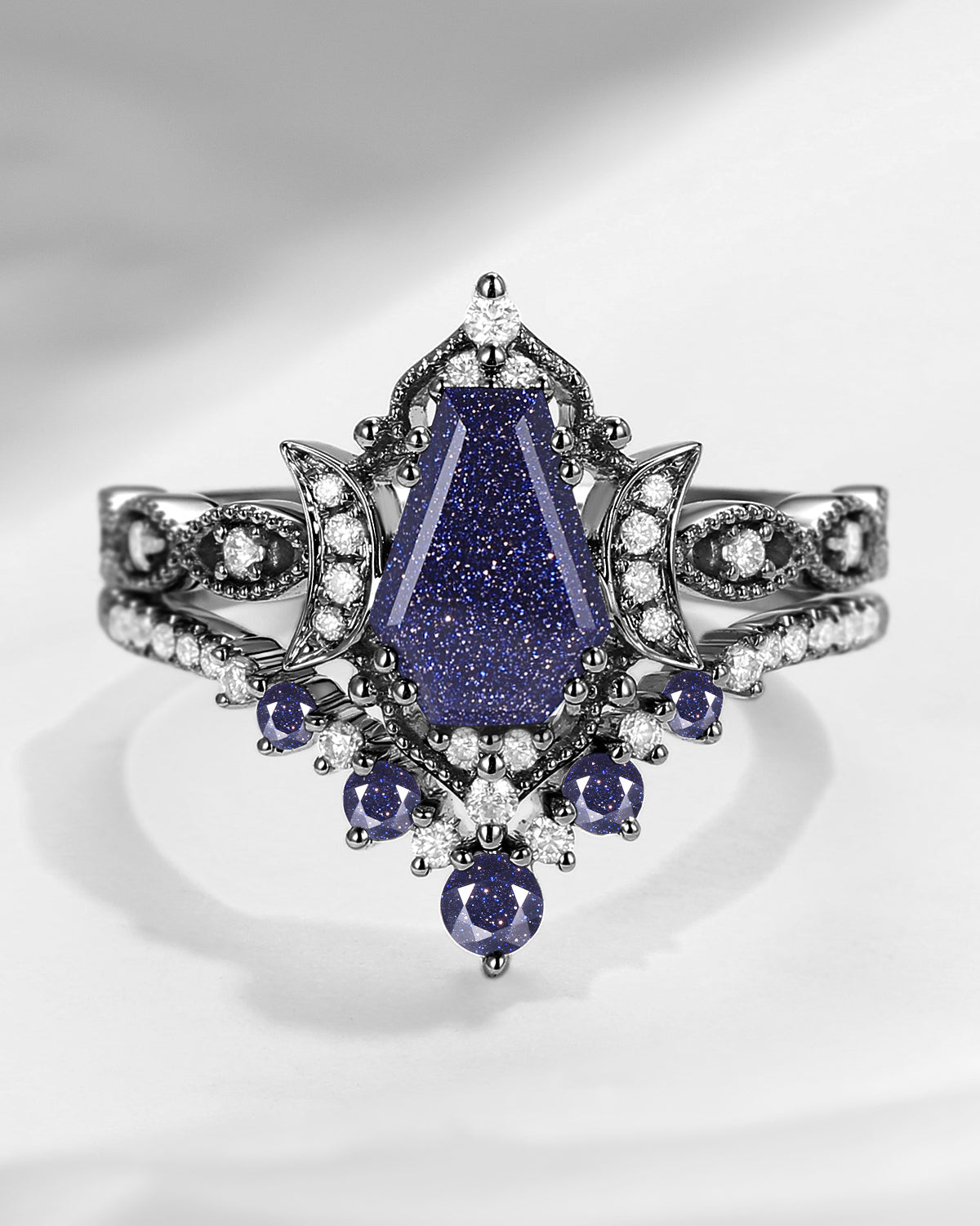 Crescent Moon | Coffin Cut Blue Sandstone 'Till Death Do Us Apart' Ring Set 2pcs