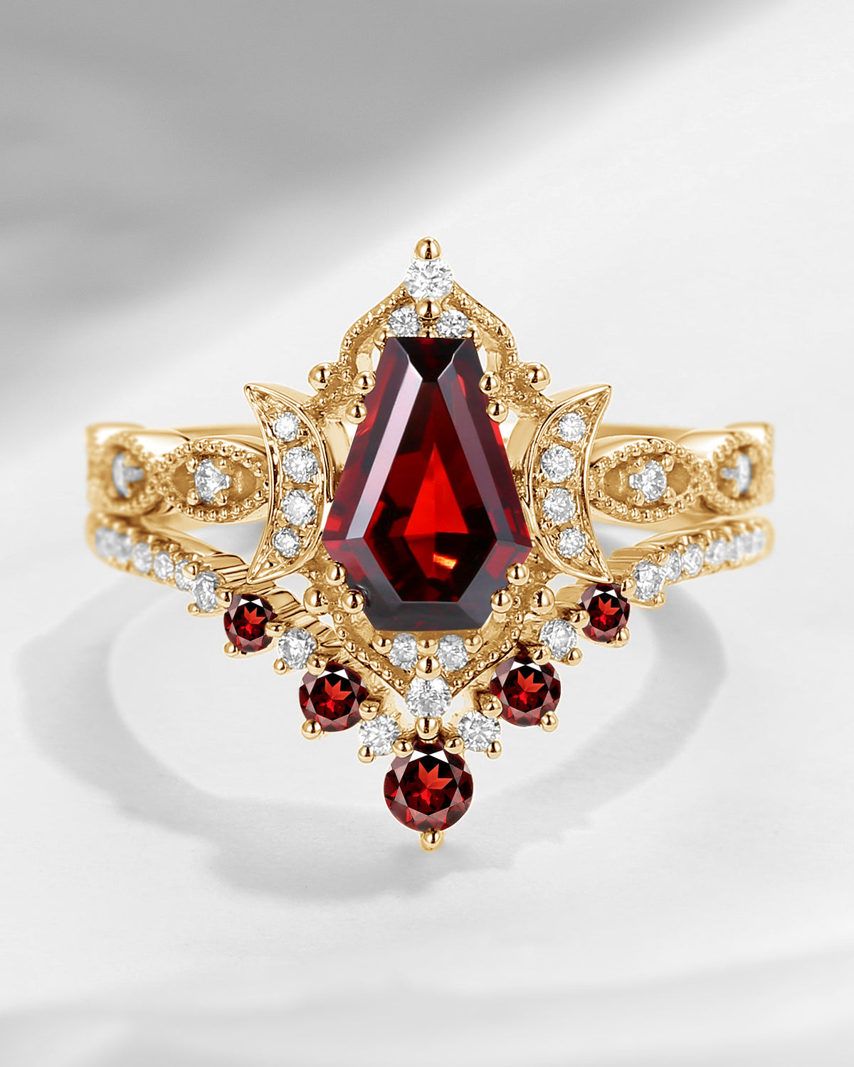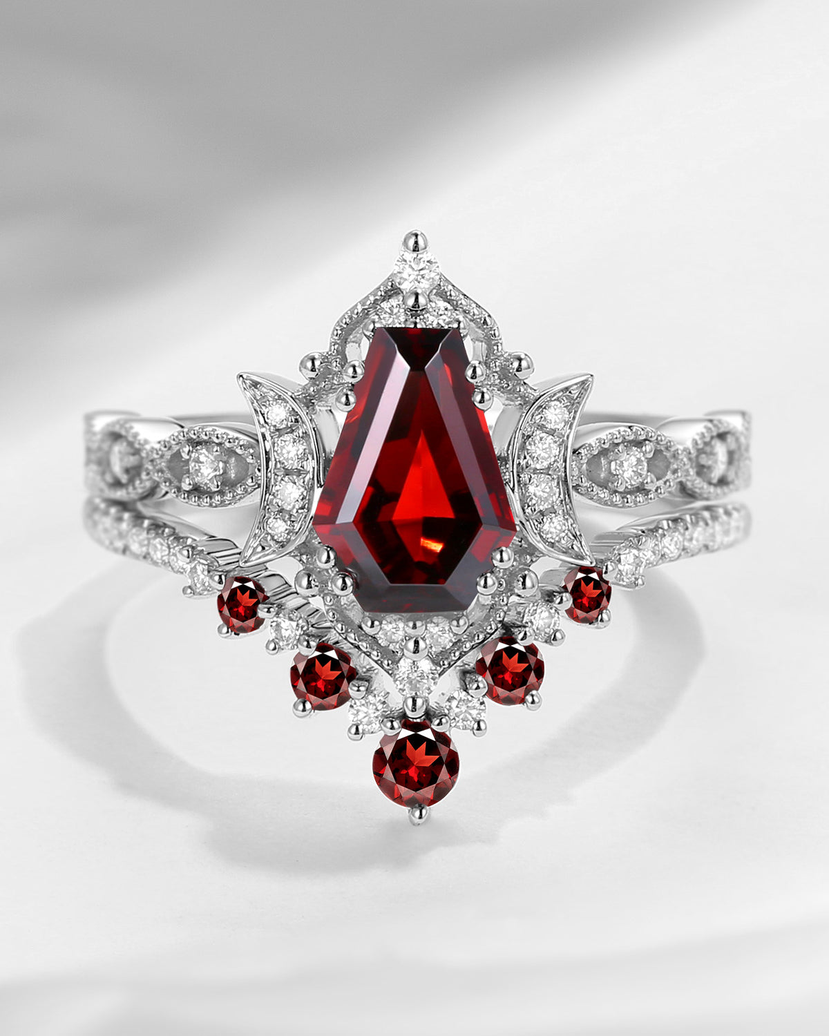 Crescent Moon | Coffin Cut Garnet 'Till Death Do Us Apart' Ring Set 2pcs