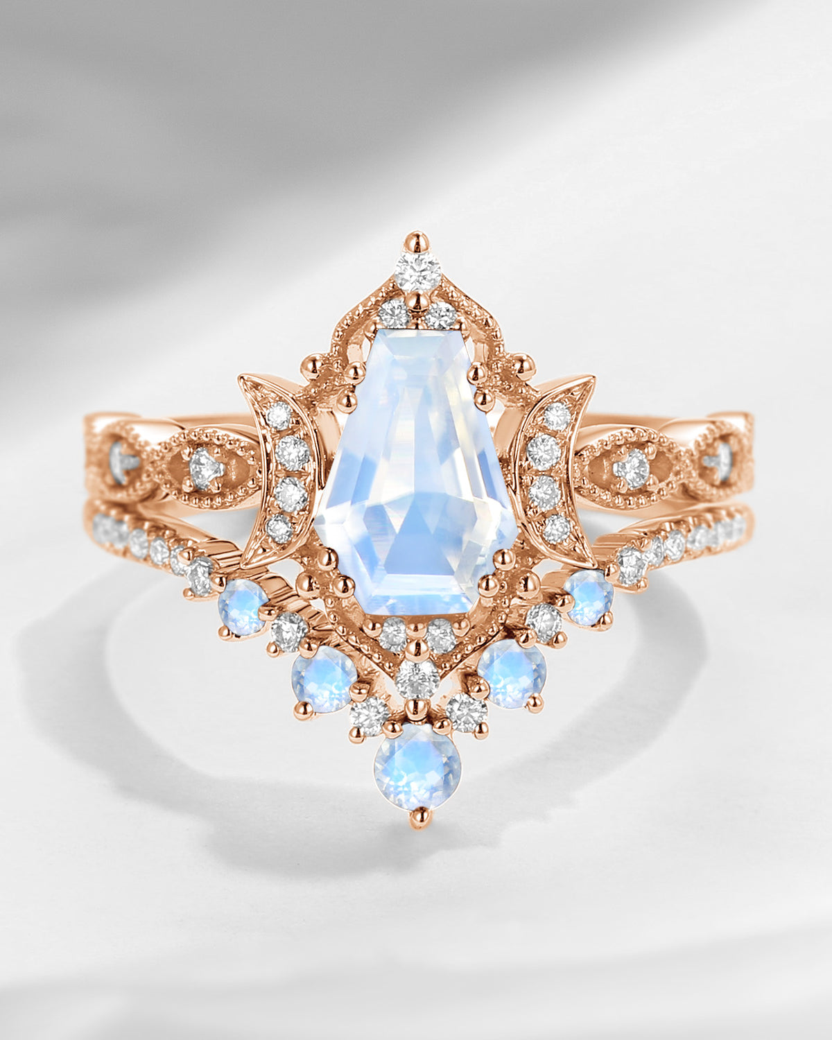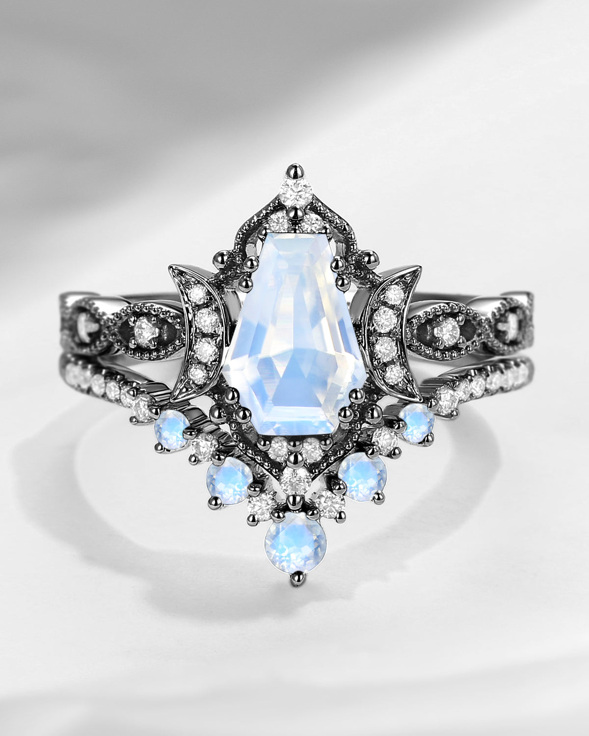 Crescent Moon | Coffin Cut Moonstone 'Ultra Galaxy' Engagement Ring Set 2pcs