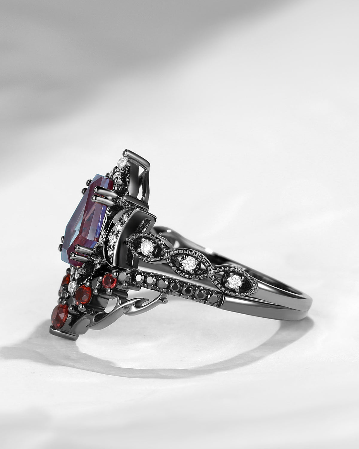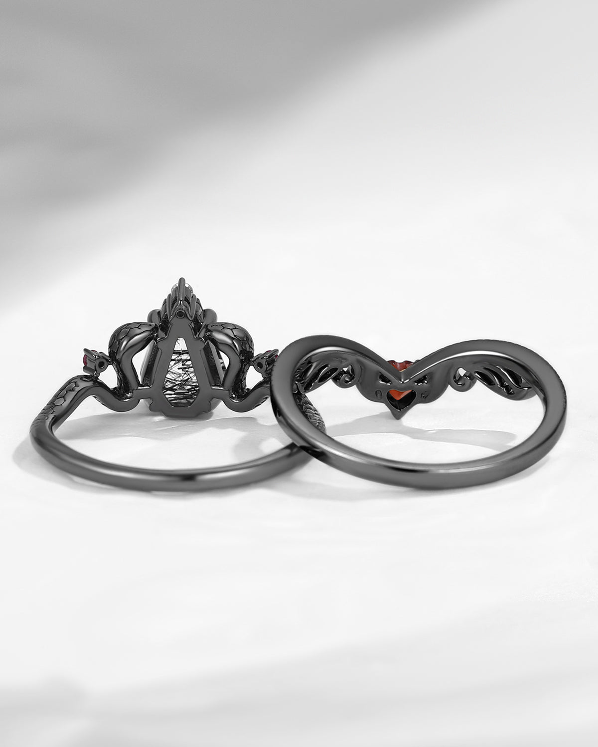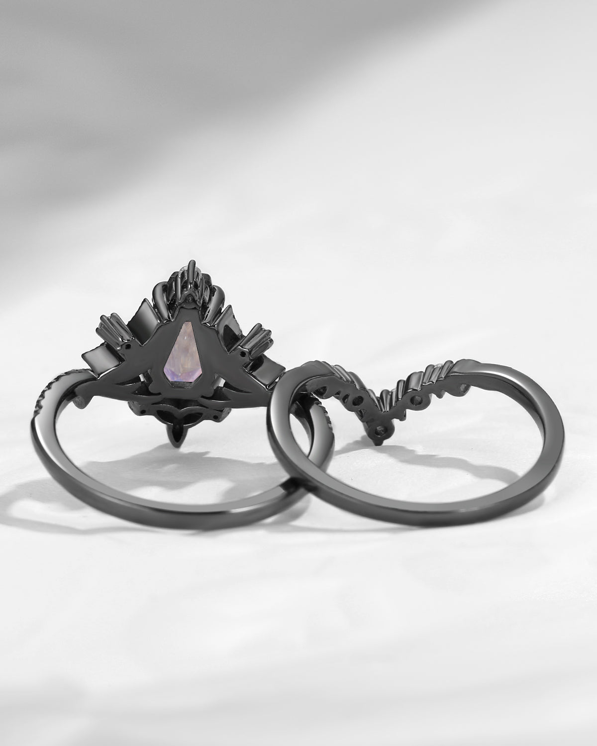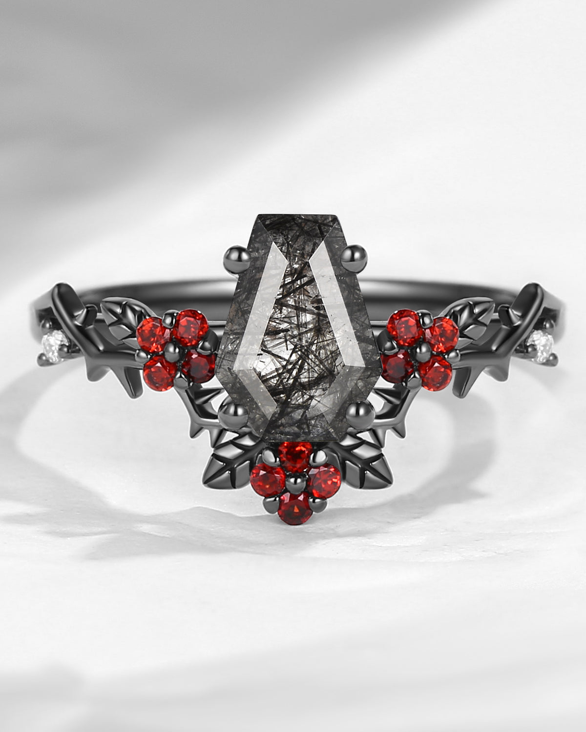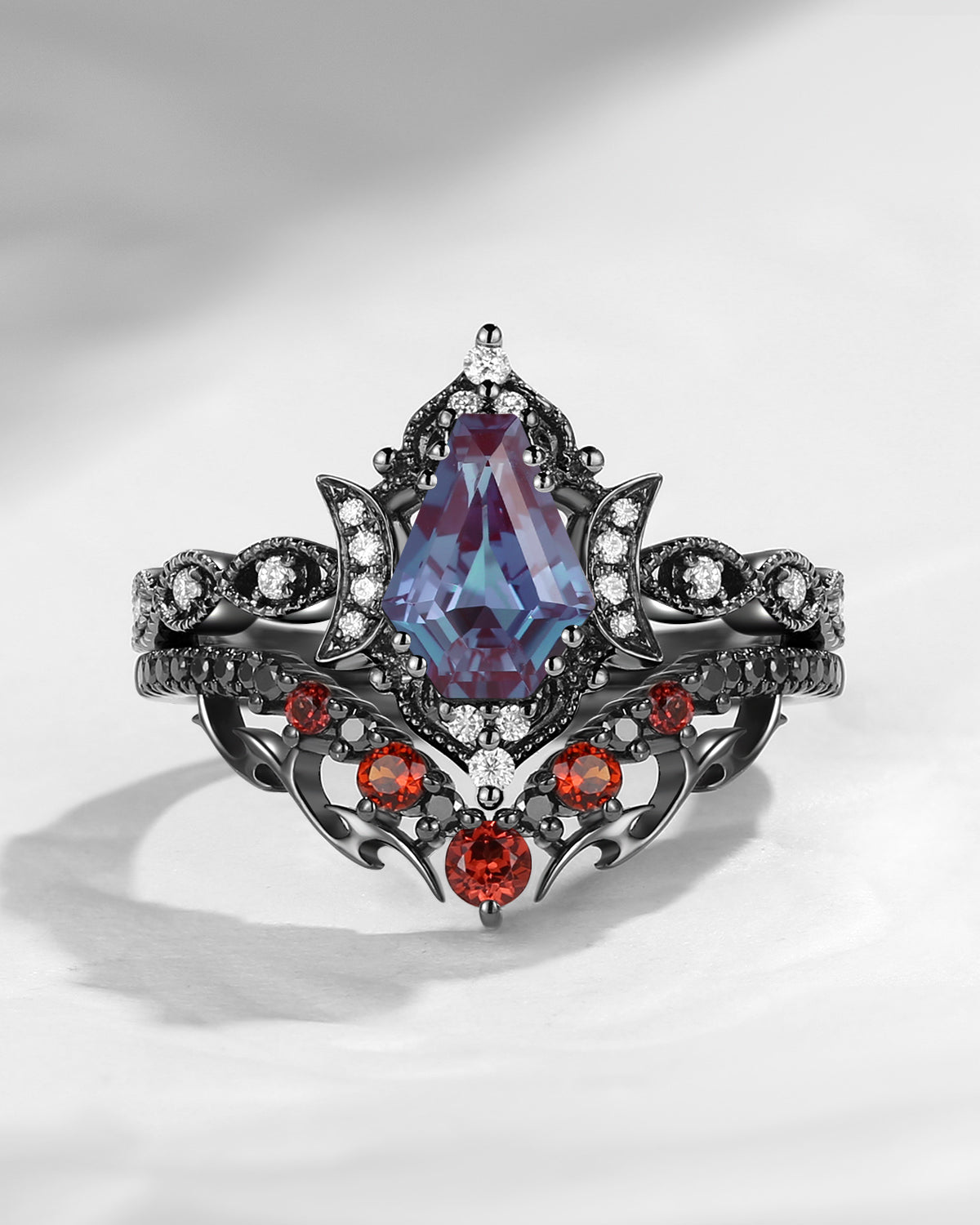 Celtic Moon | Coffin Cut Garnet Celtic Gothic Engagement Ring Set 2pcs