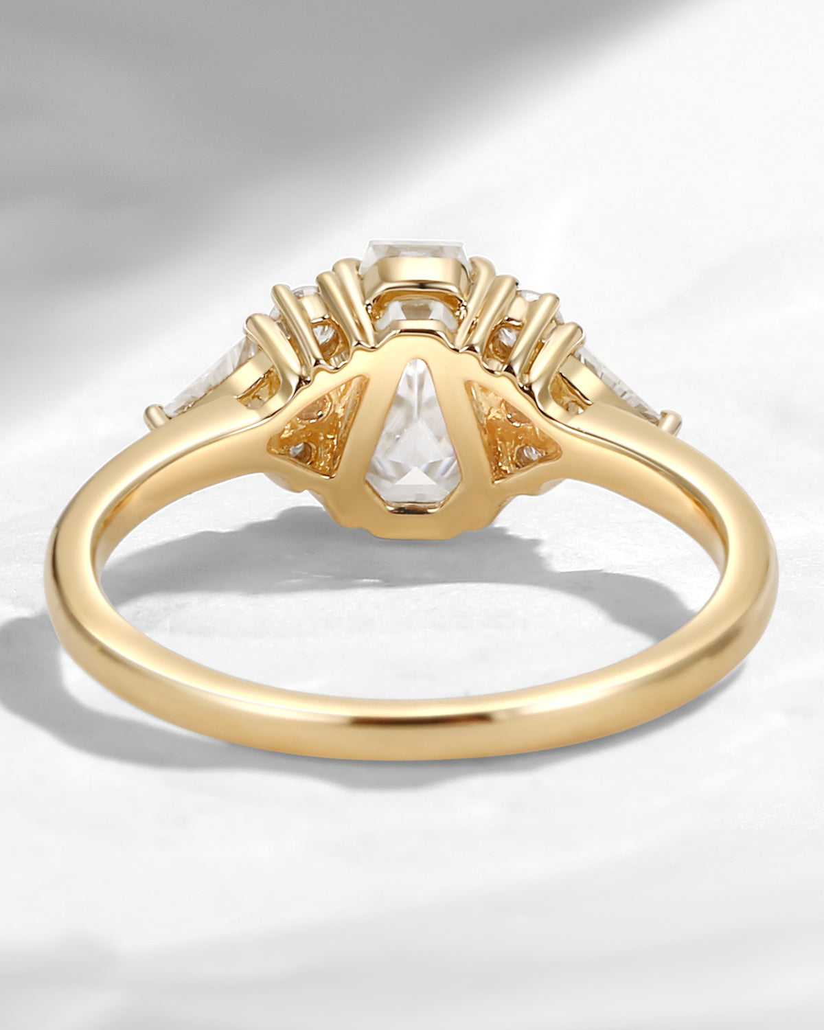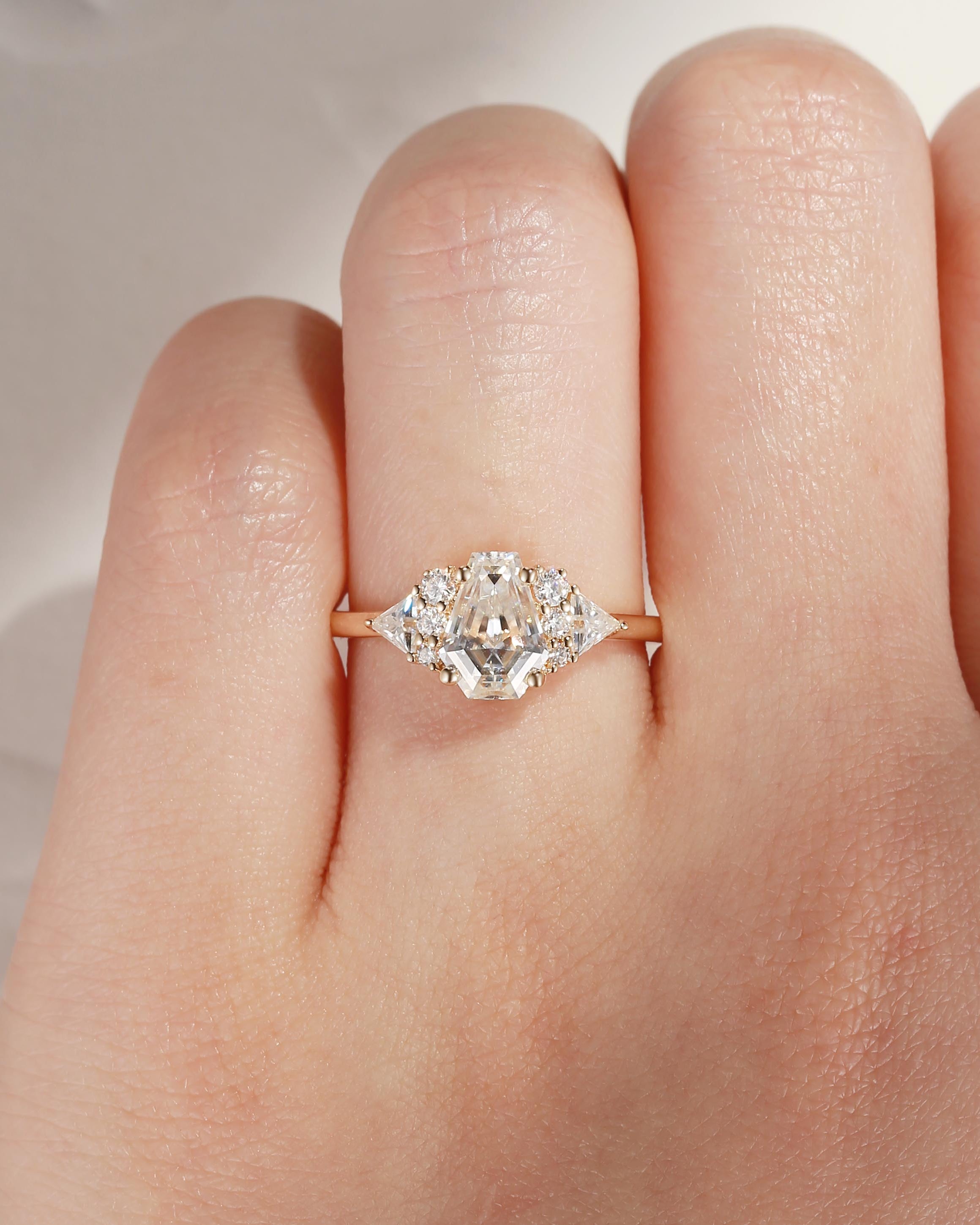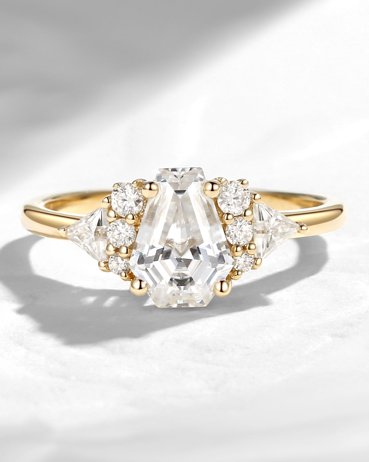 Classic Coffin Shaped Moissanite Geometric Cluster Engagement Ring