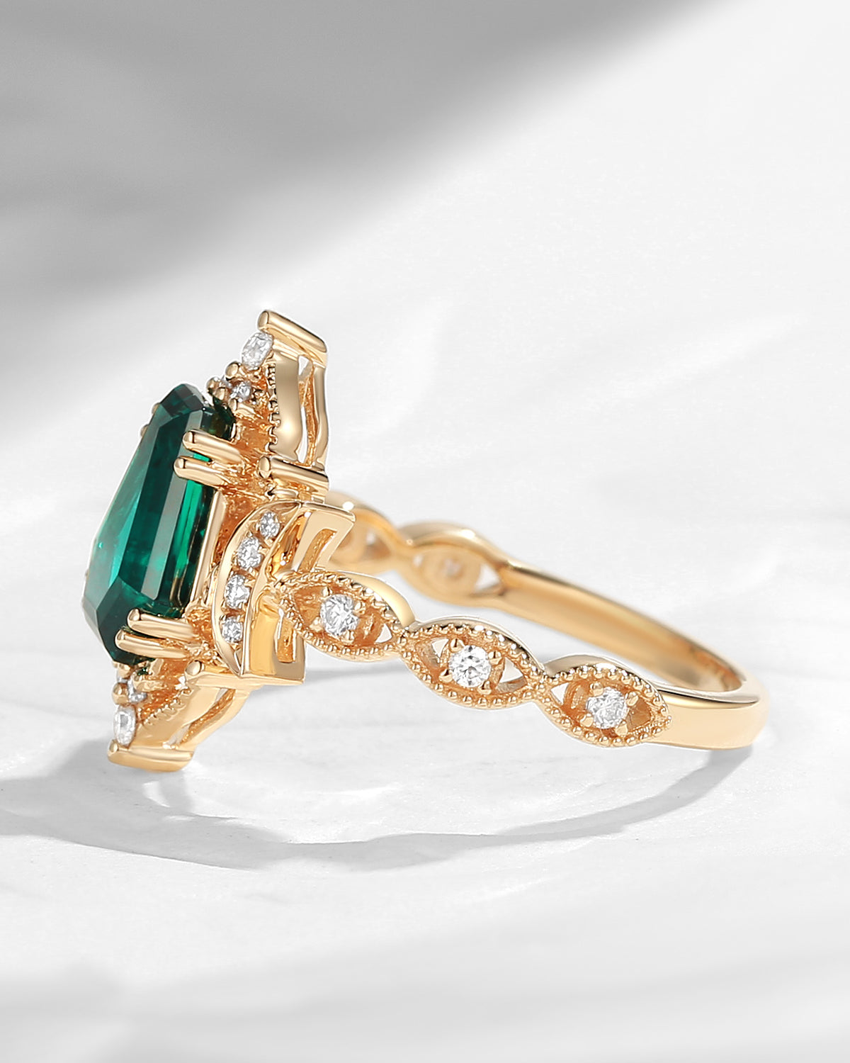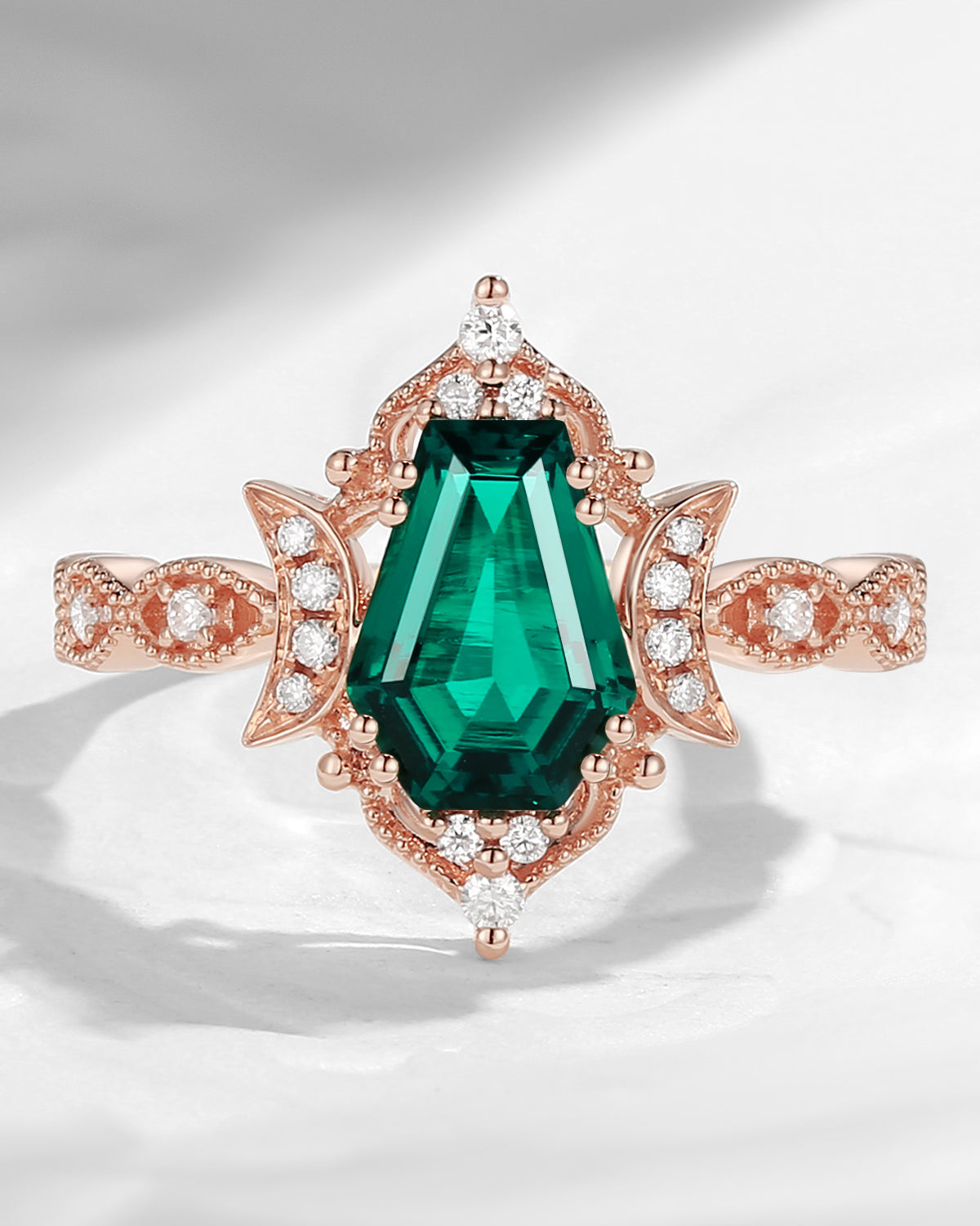 Crescent Moon | Coffin Cut Lab Emerald Ring - Till Death Do Us Part