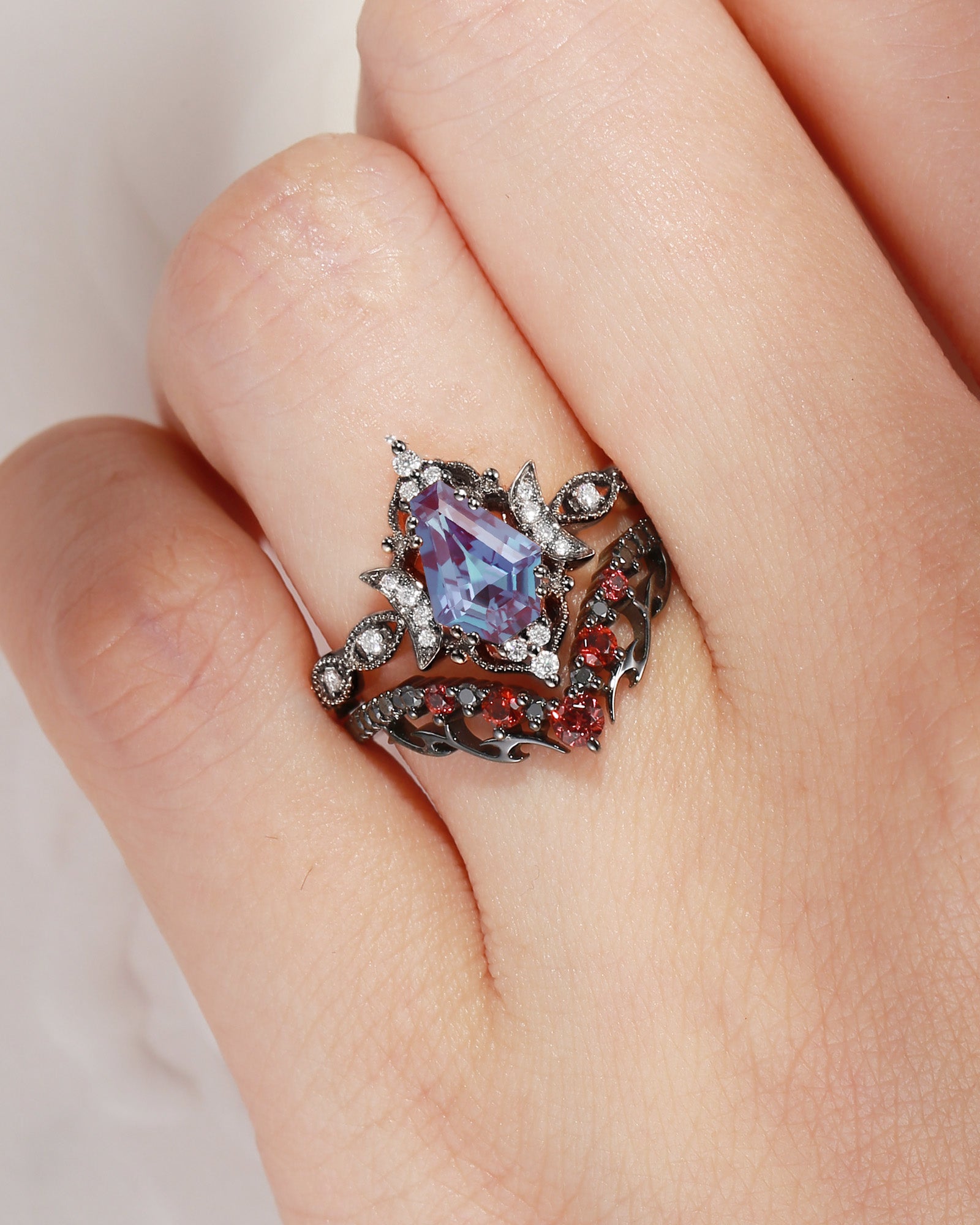 Unique Coffin Lab Alexandrite Thorns & Roses Engagement Ring