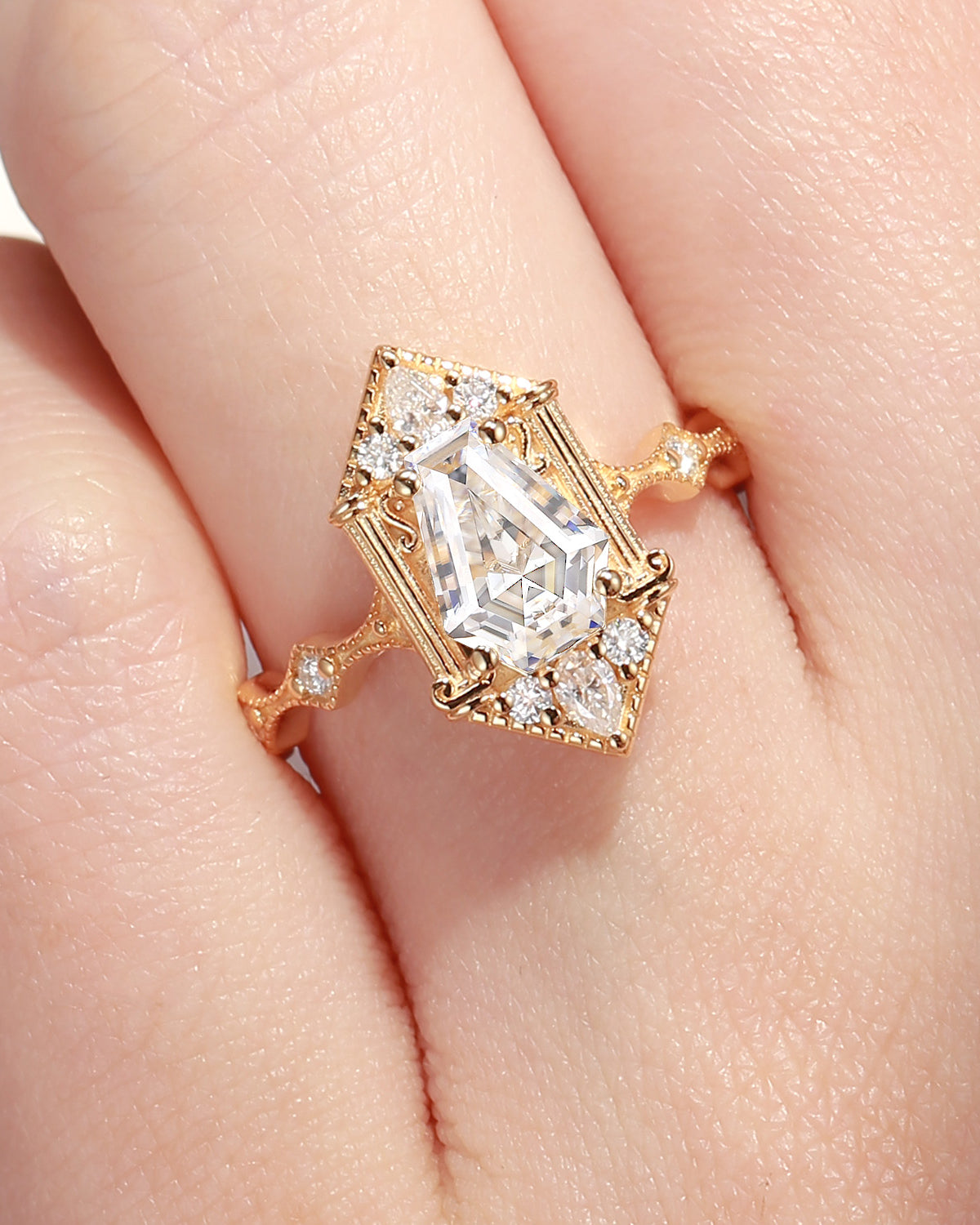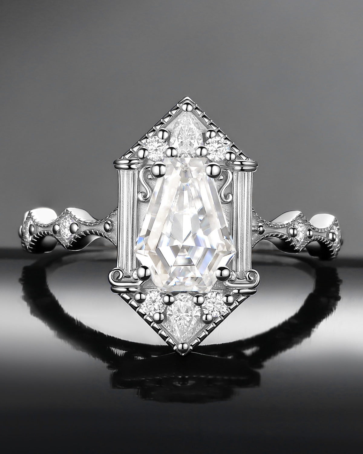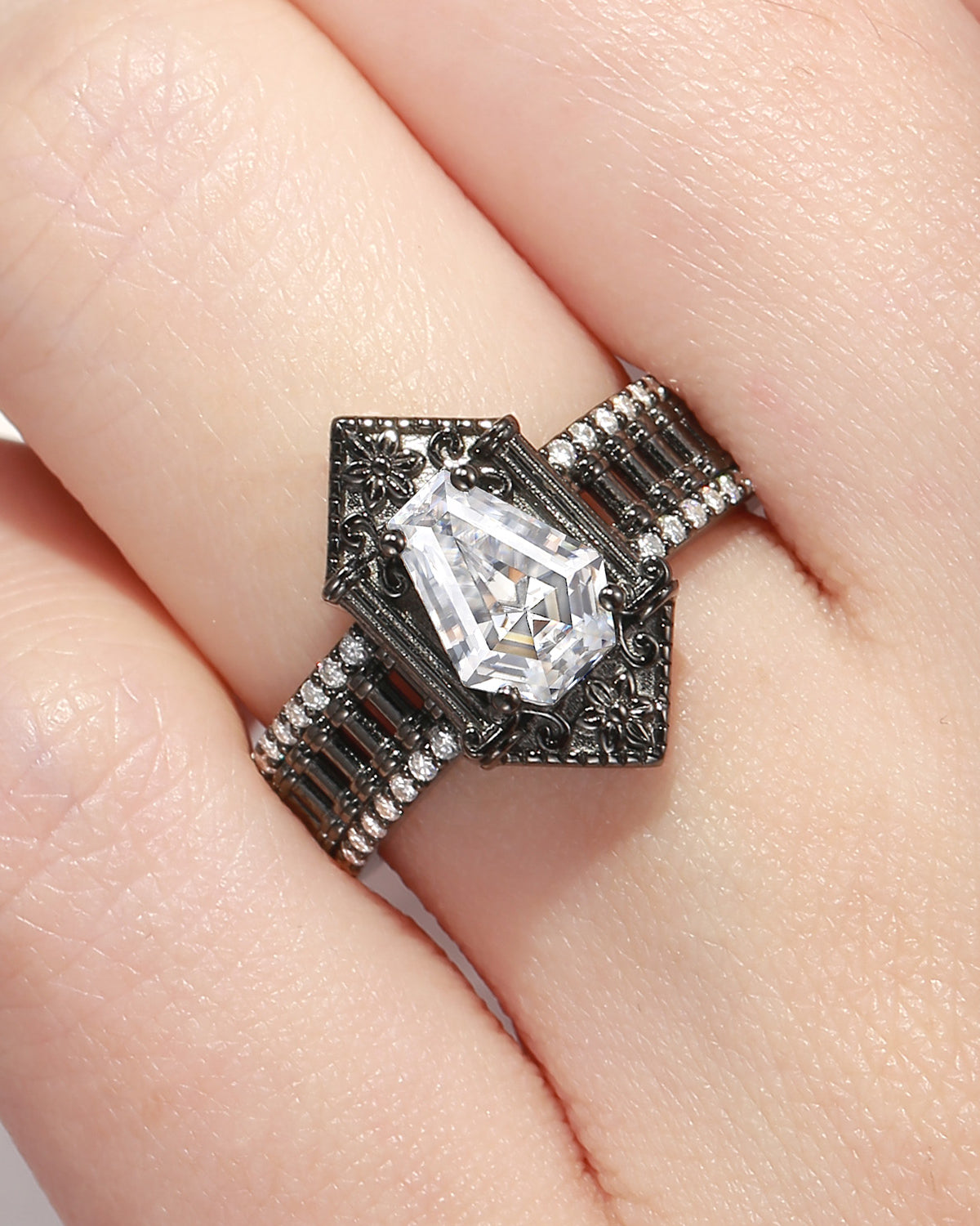 Vintage Inspired Coffin Cut Moissanite 'Fallen Aegis' Art Deco Engagement Ring