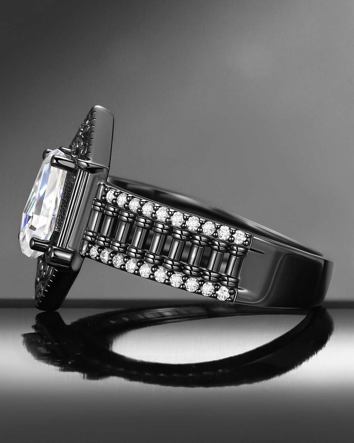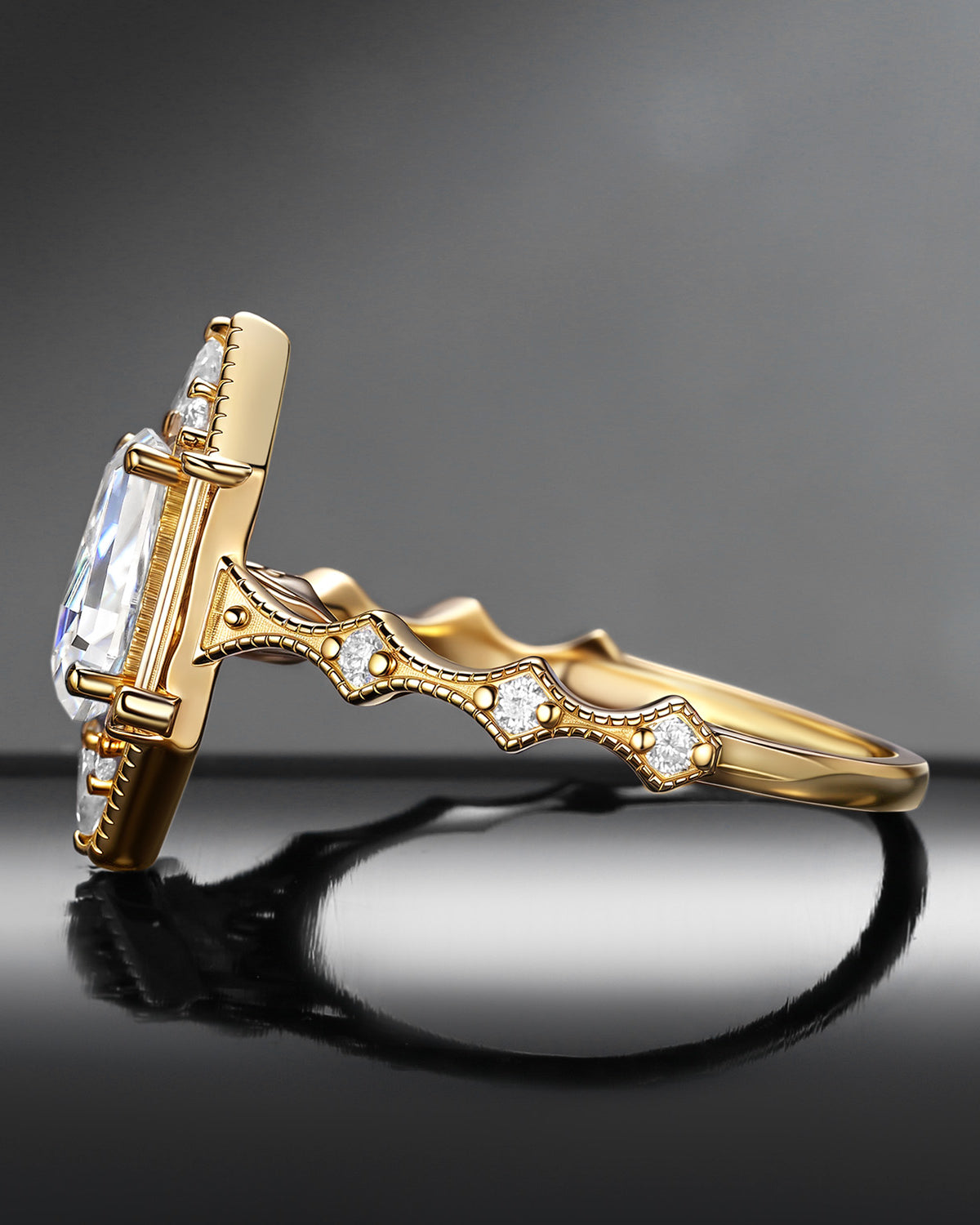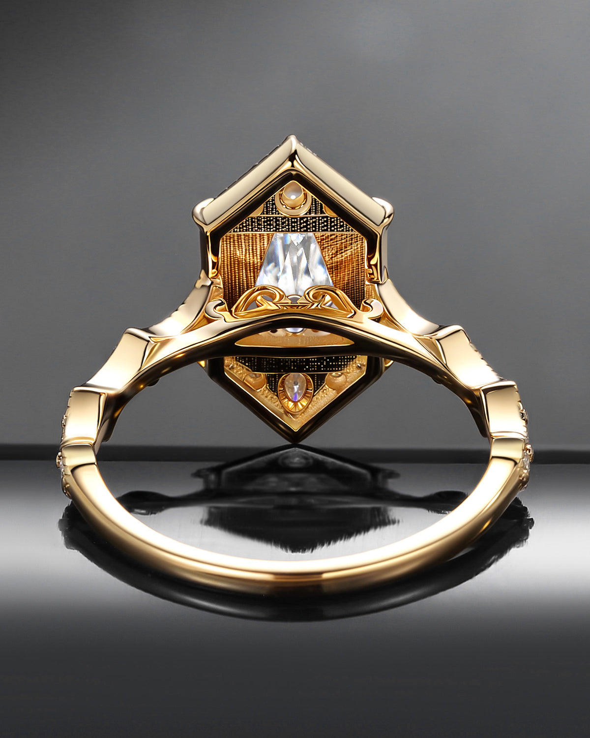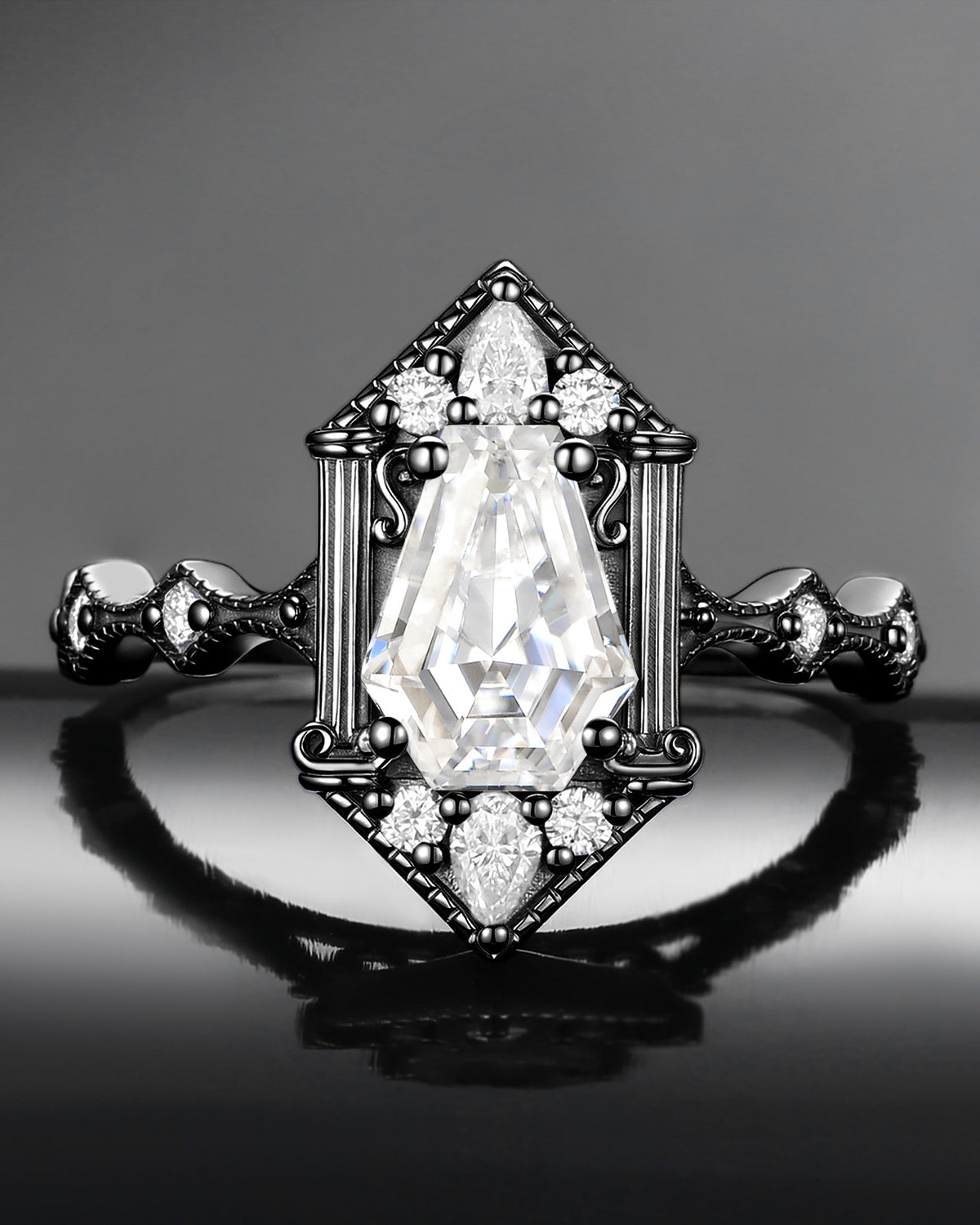 Vintage Inspired Coffin Cut Moissanite 'Fallen Aegis' Art Deco Engagement Ring