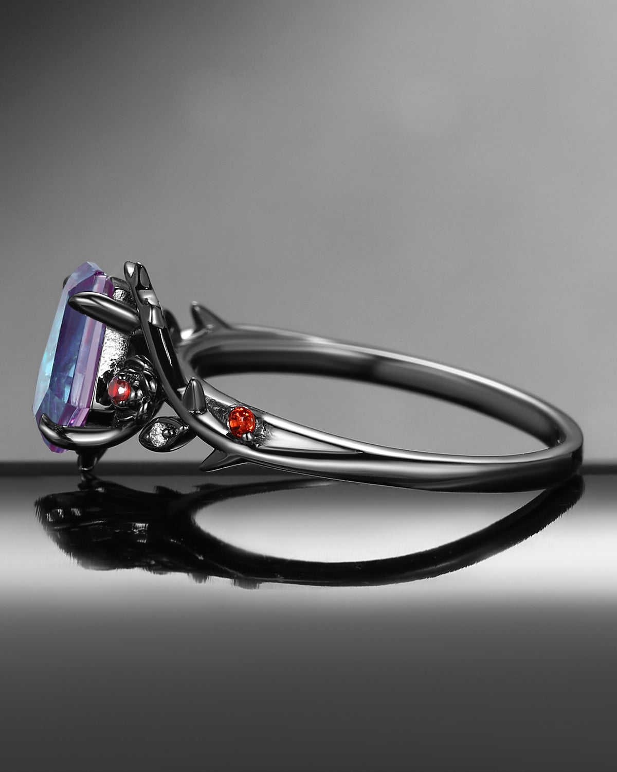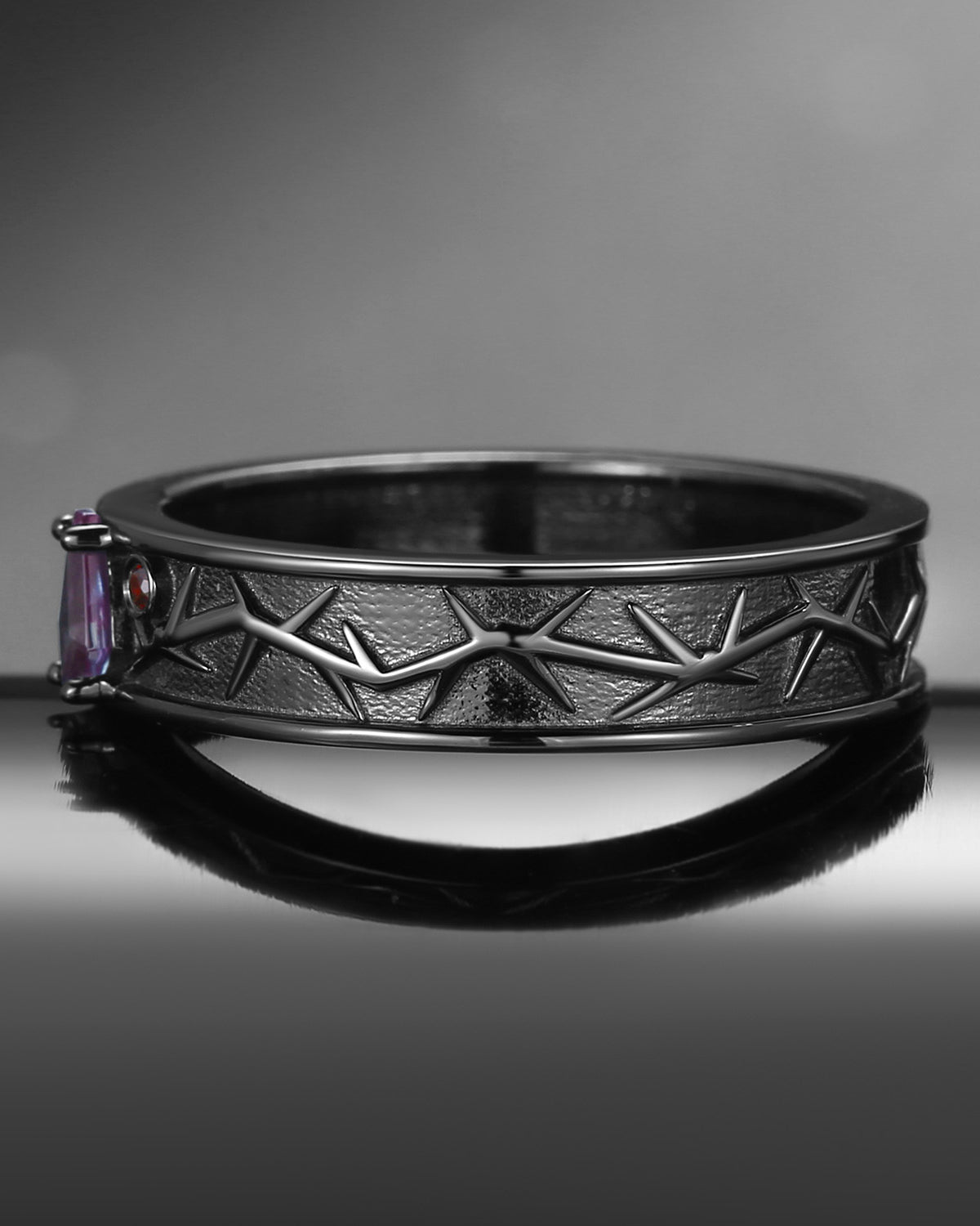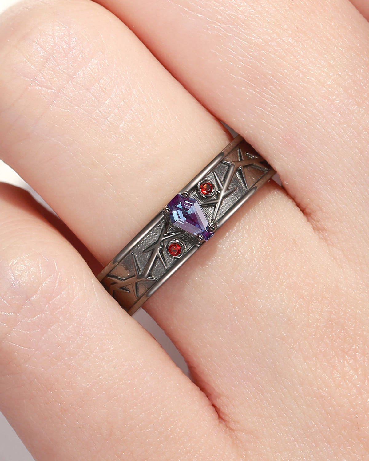 Gothic Style Coffin Purple Garnet Celtic Moon Engagement Ring