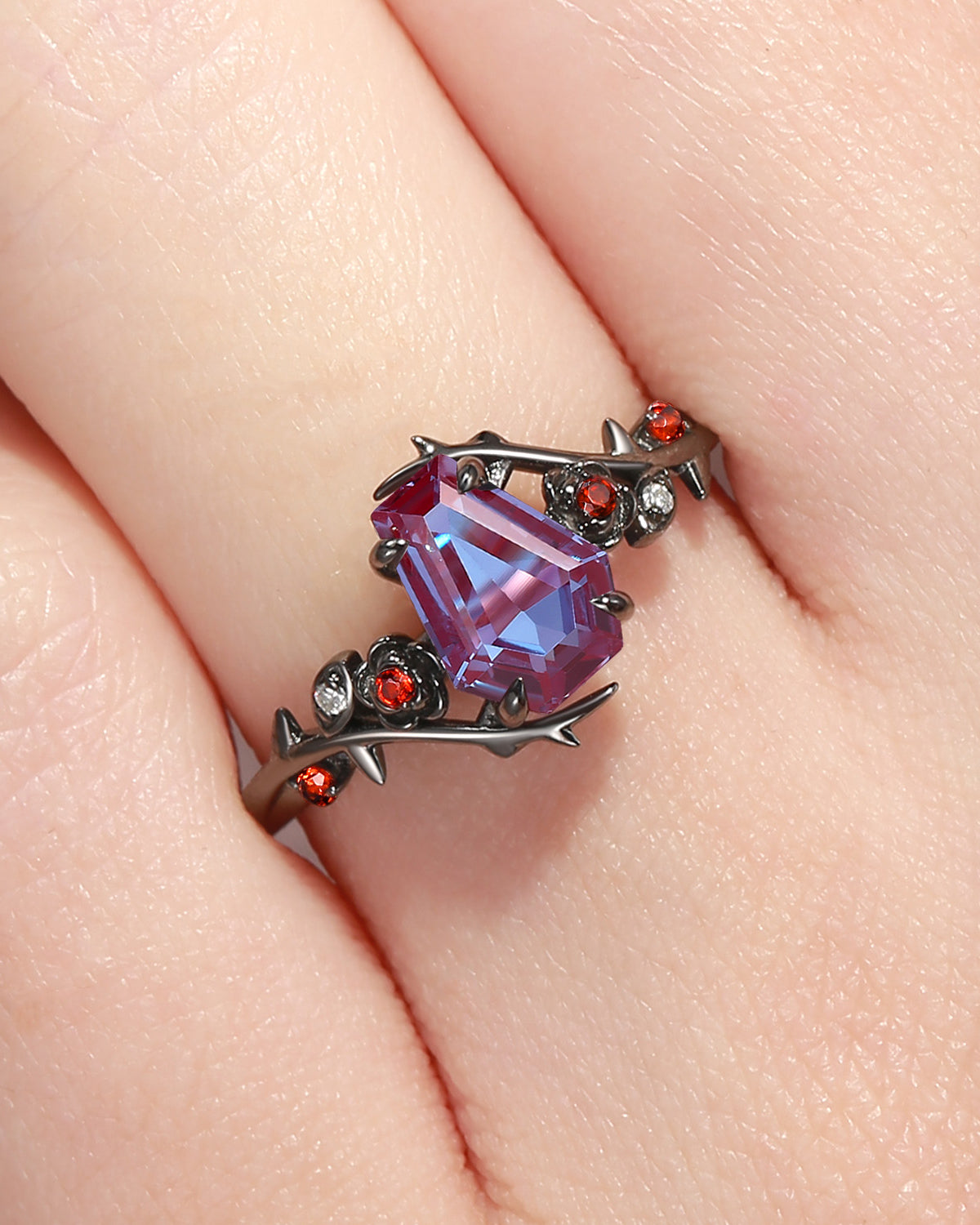 'Thorns & Roses'- Nature Inspired Coffin Cut Garnet Engagement Ring