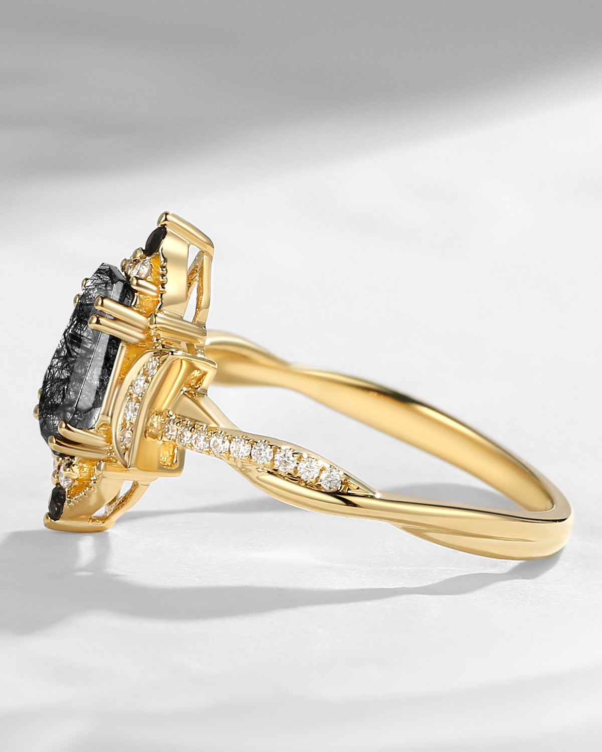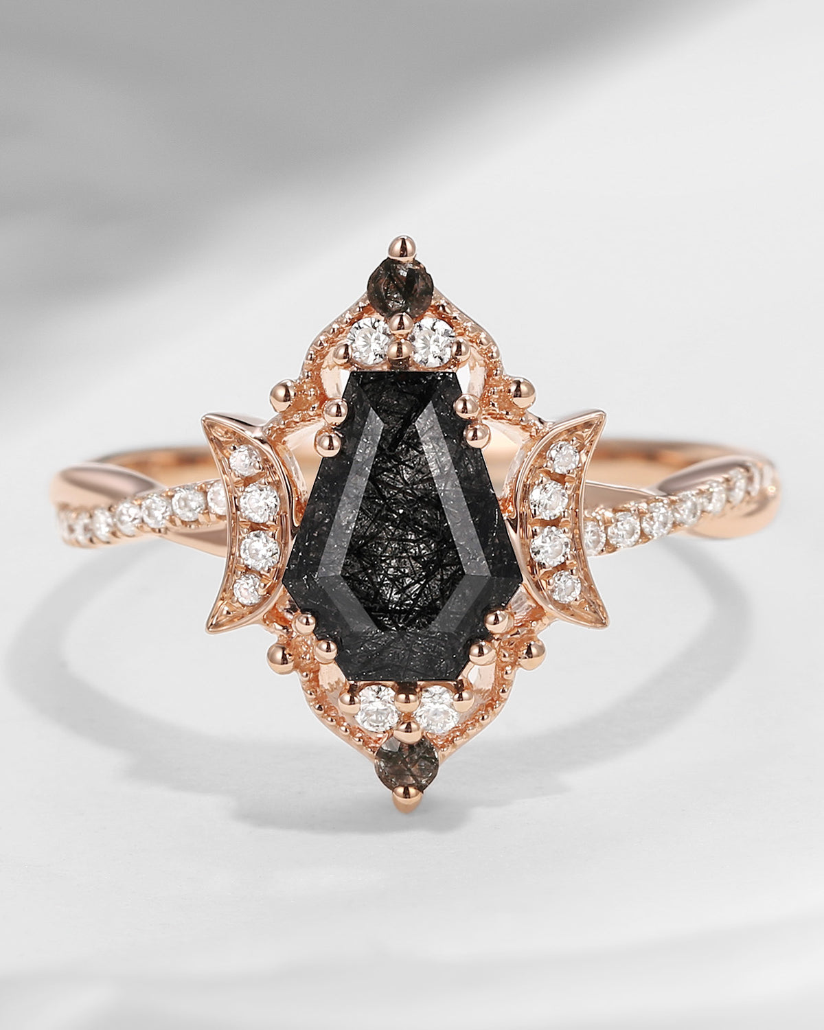 Crescent Moon | Unique Coffin Black Rutilated Quartz Infinity Celtic Engagement Ring