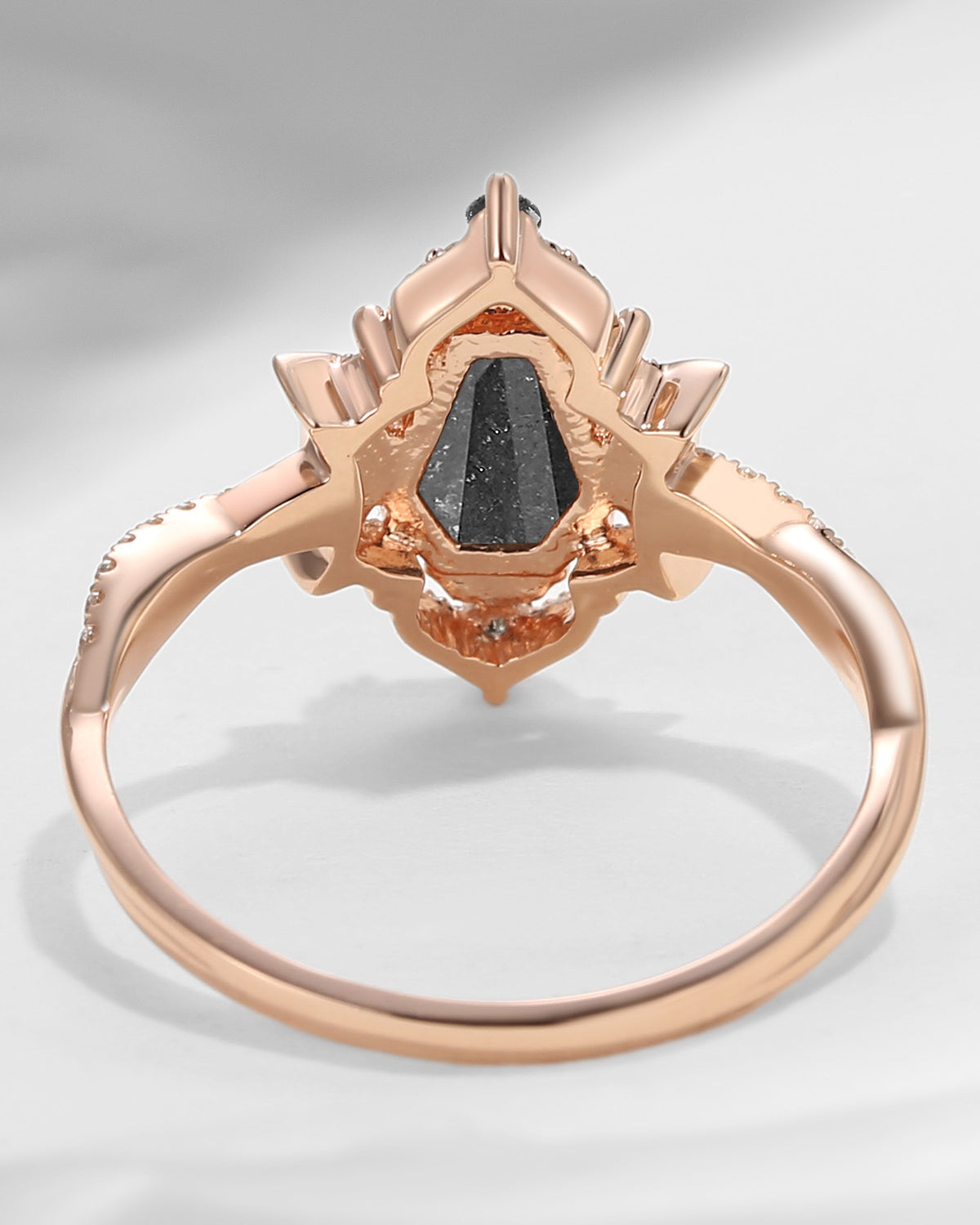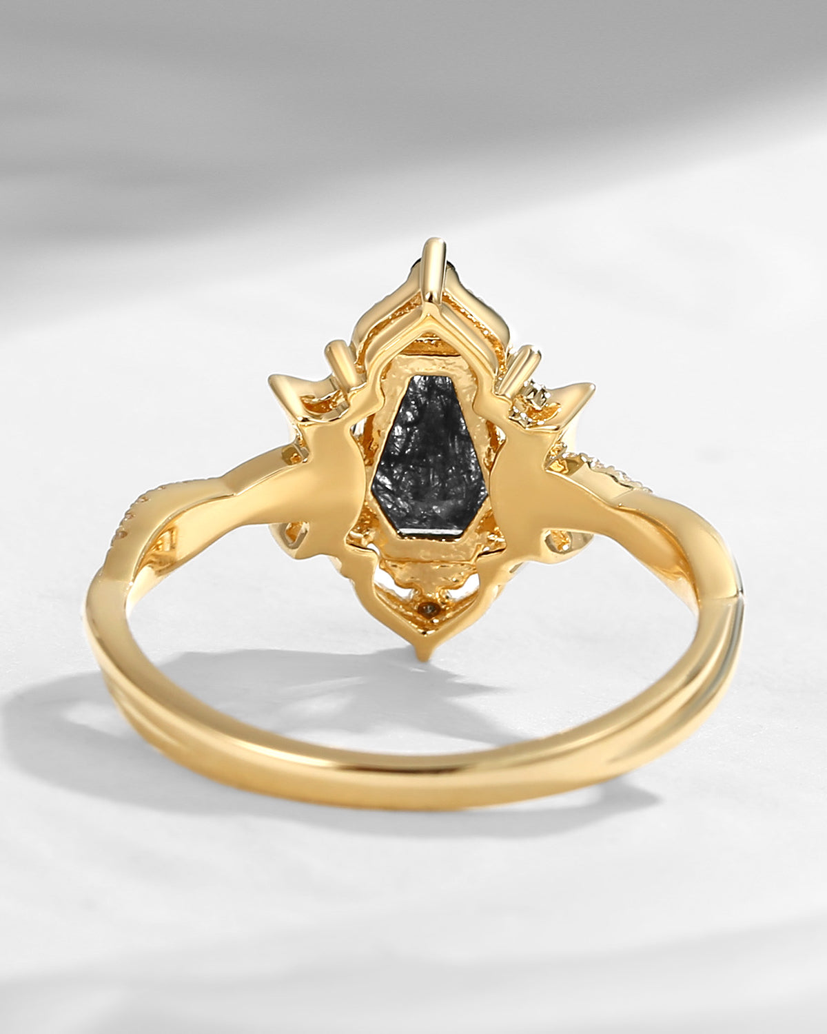 Crescent Moon | Coffin Cut Salt And Pepper Diamond Twisted Engagement Ring
