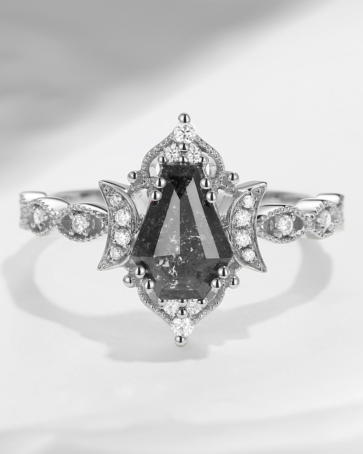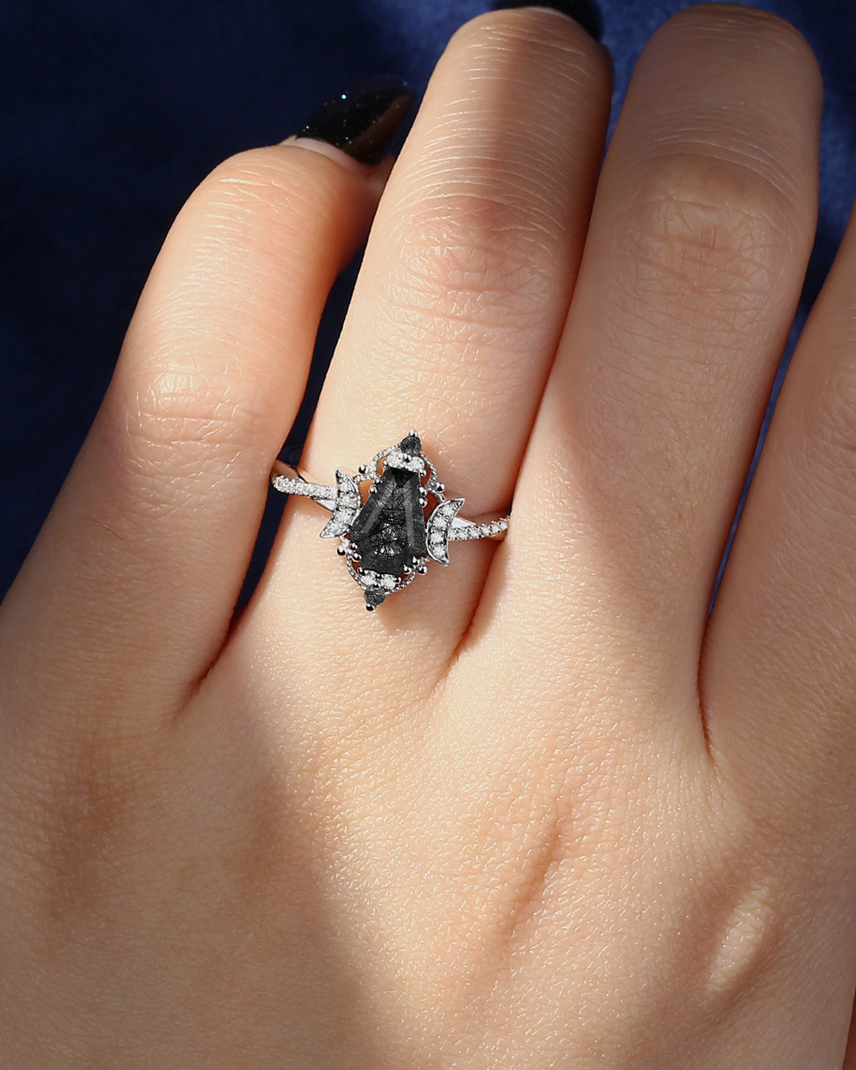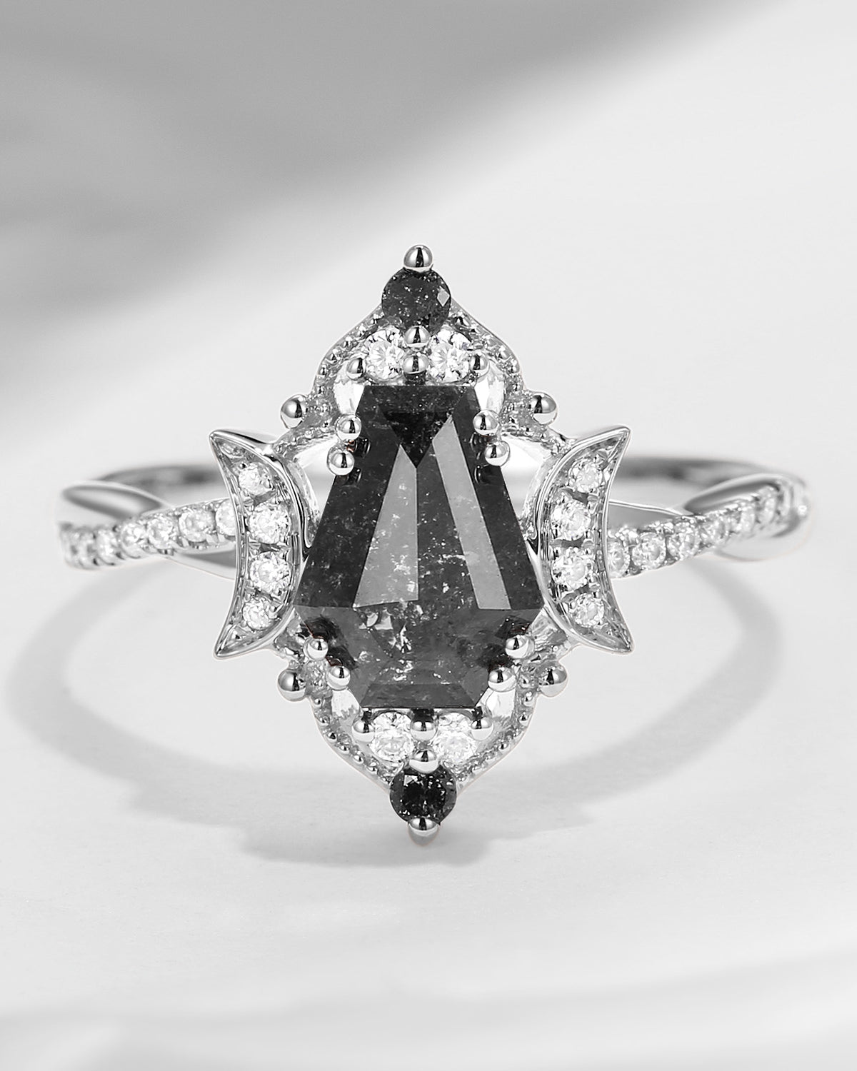 Crescent Moon | Coffin Cut Salt And Pepper Diamond Engagement Ring