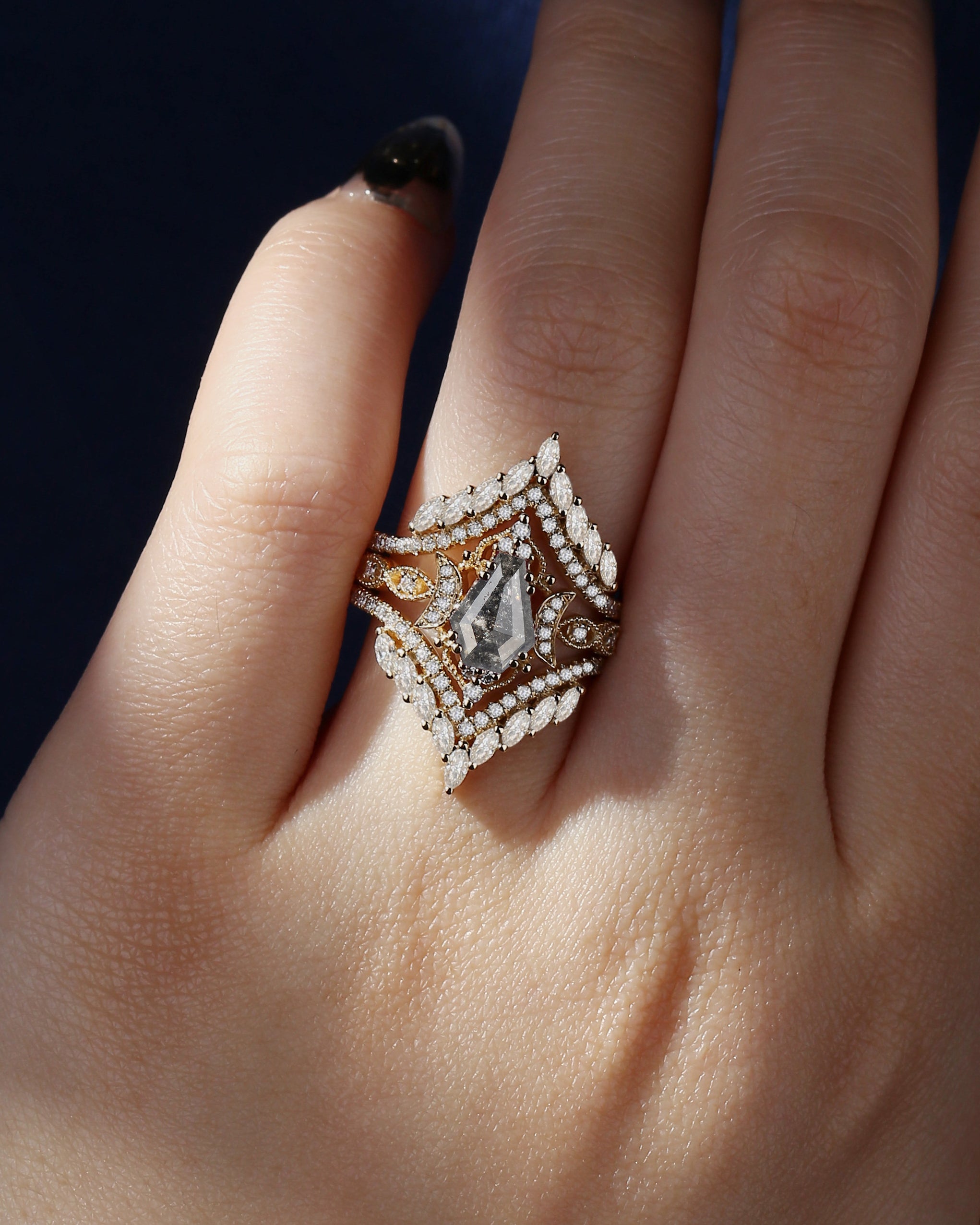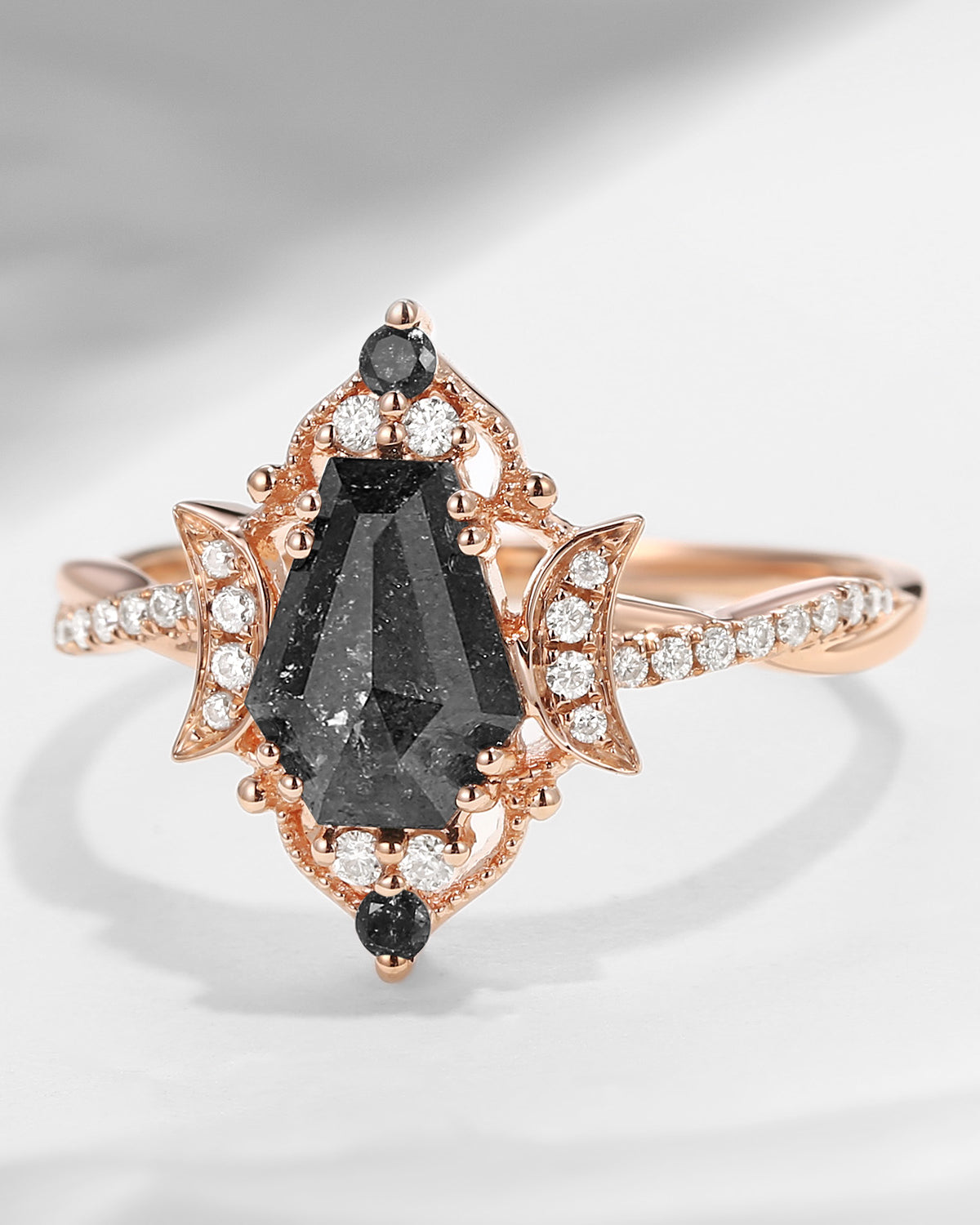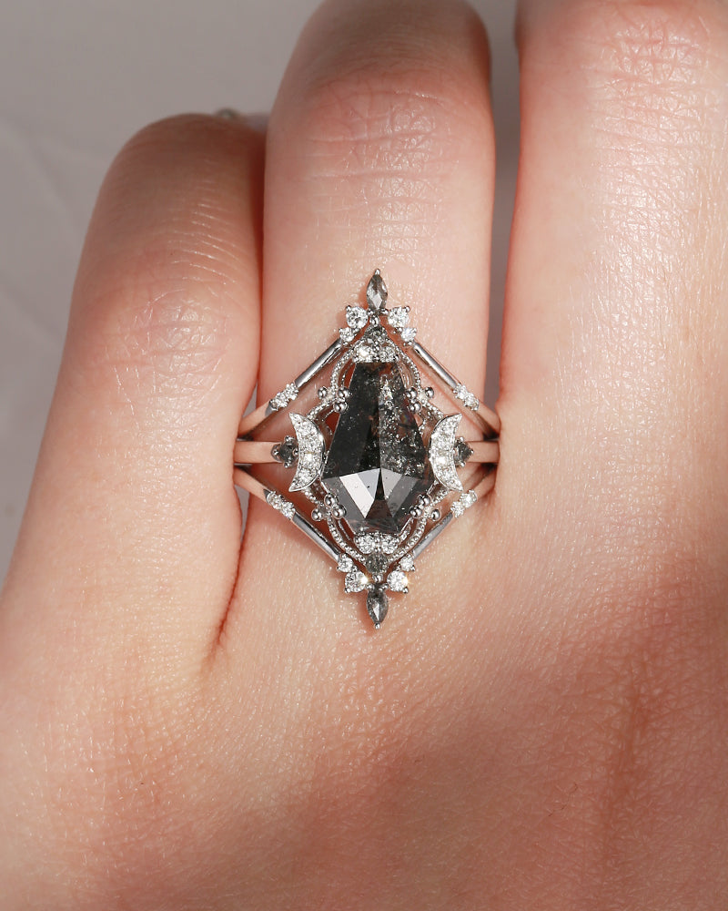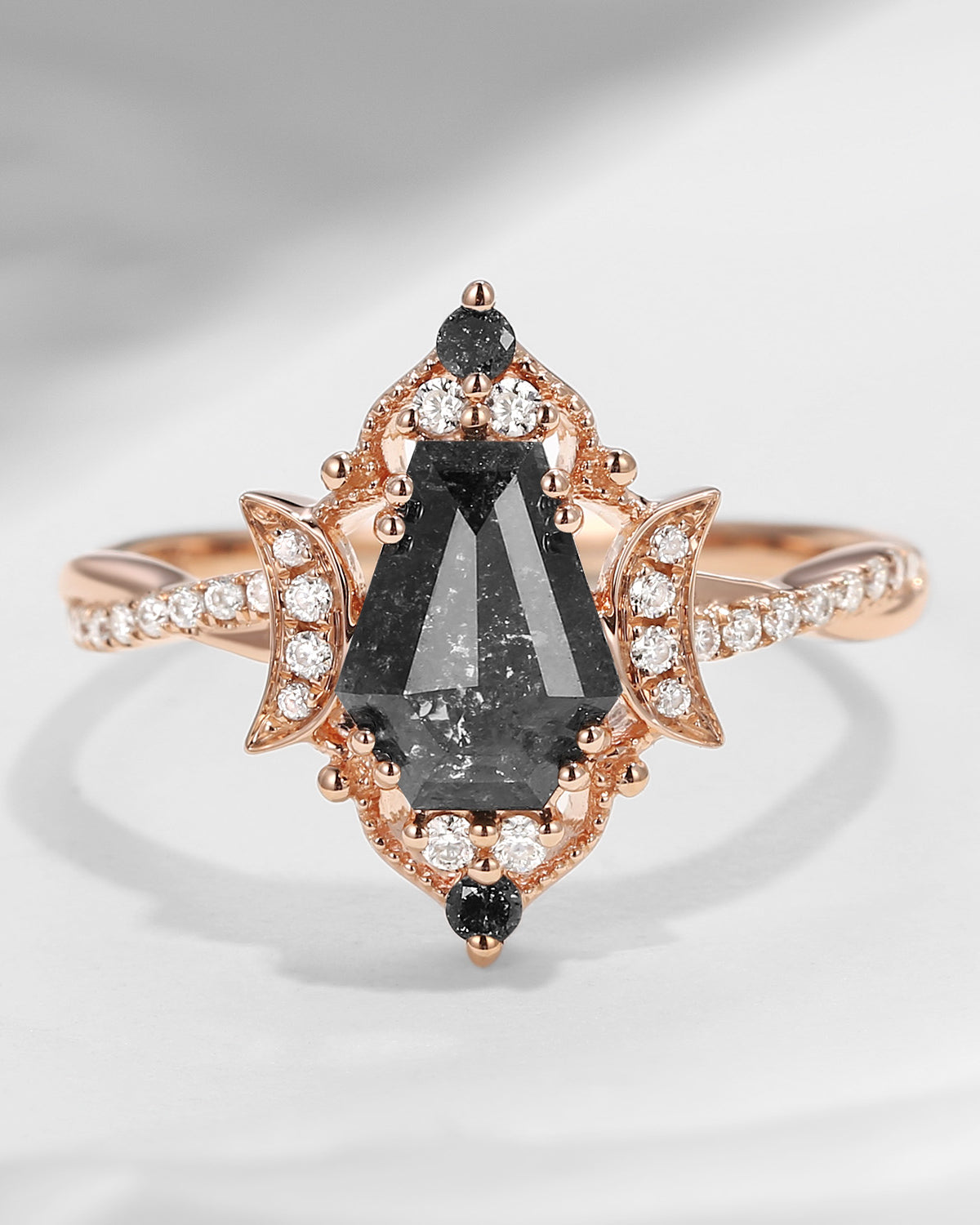 Crescent Moon | Coffin Cut Salt And Pepper Diamond Engagement Ring
