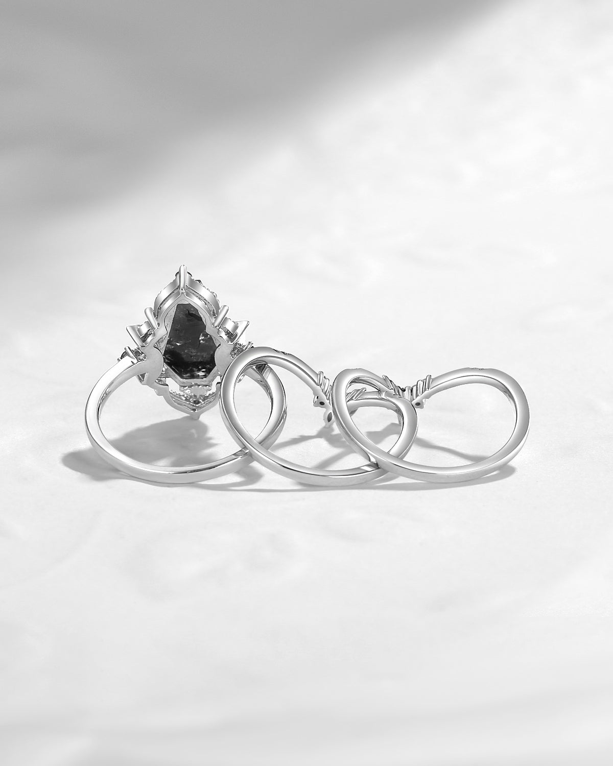 Crescent Moon | Coffin Cut Black Rutilated Quartz 'Black Statement' Ring Set 3pcs