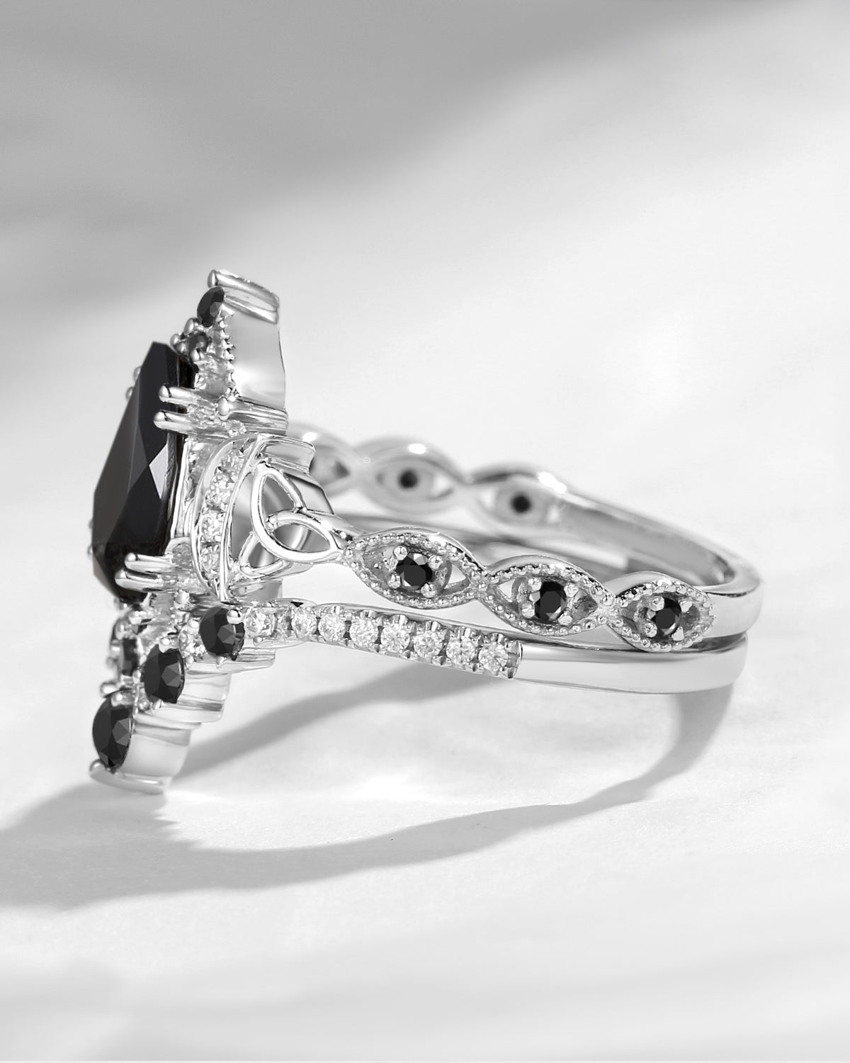 Crescent Moon | Unique Coffin Black Moissanite Celtic Infinity Engagement Ring Set 3pcs