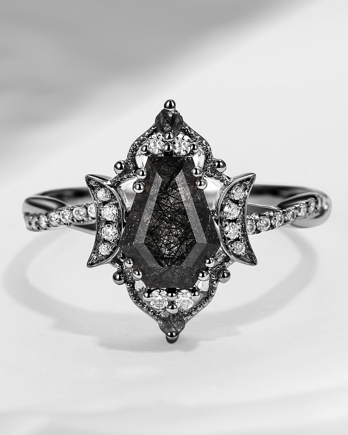 Crescent Moon | Coffin Cut Black Rutilated Quartz 'Black Statement' Ring