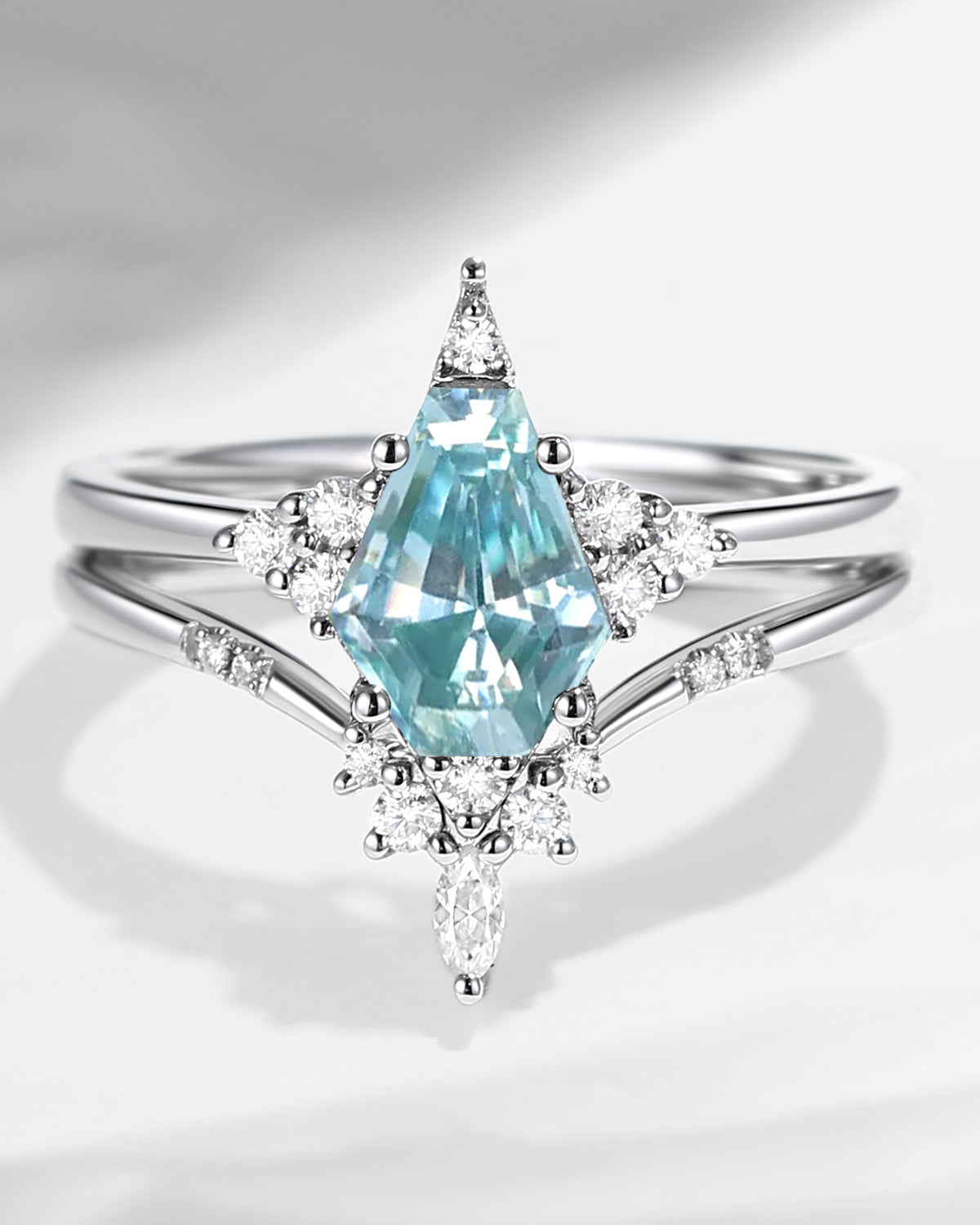 Coffin Natural Aquamarine Cluster Engagement Star Ring Set 2pcs - Coffin Kite