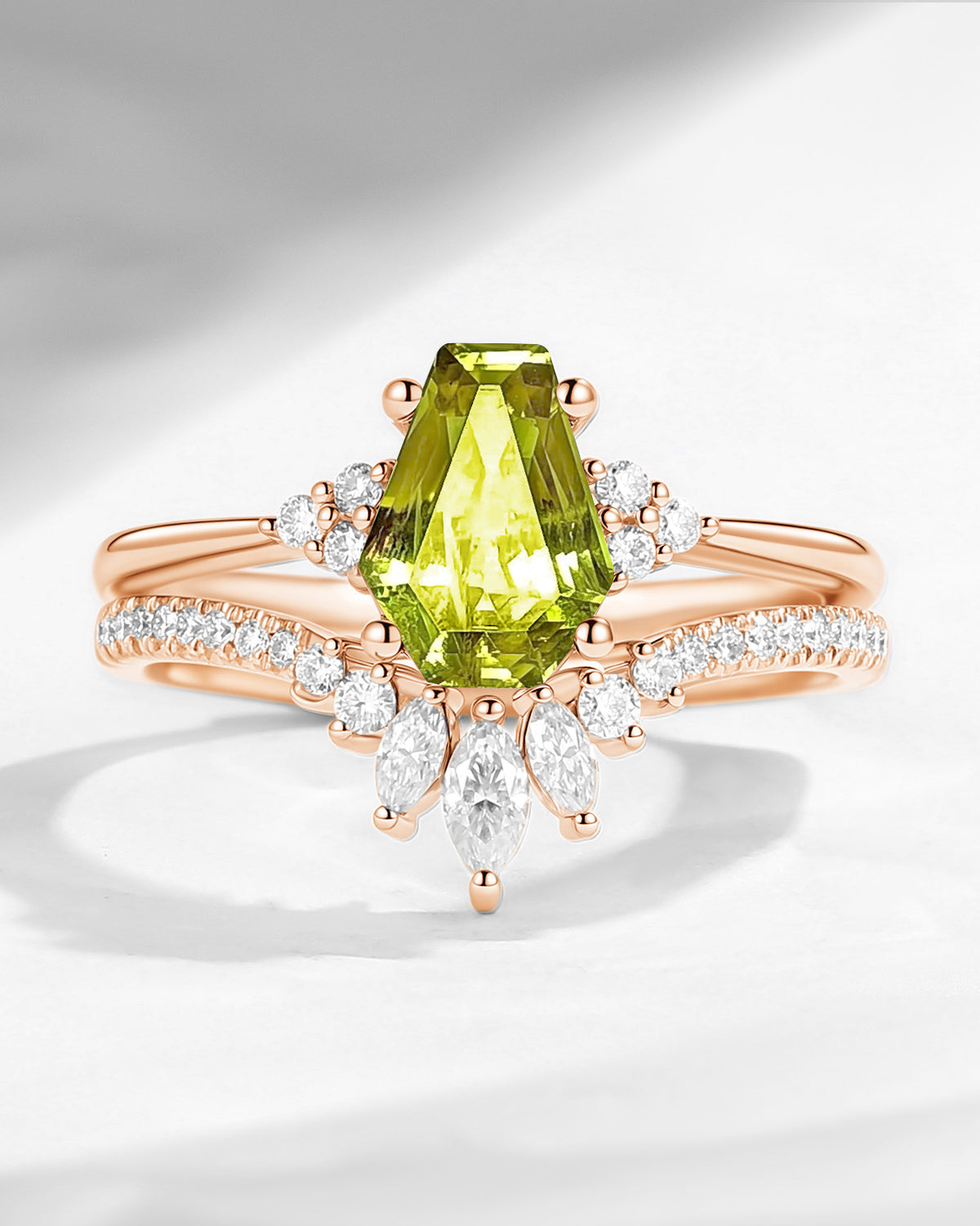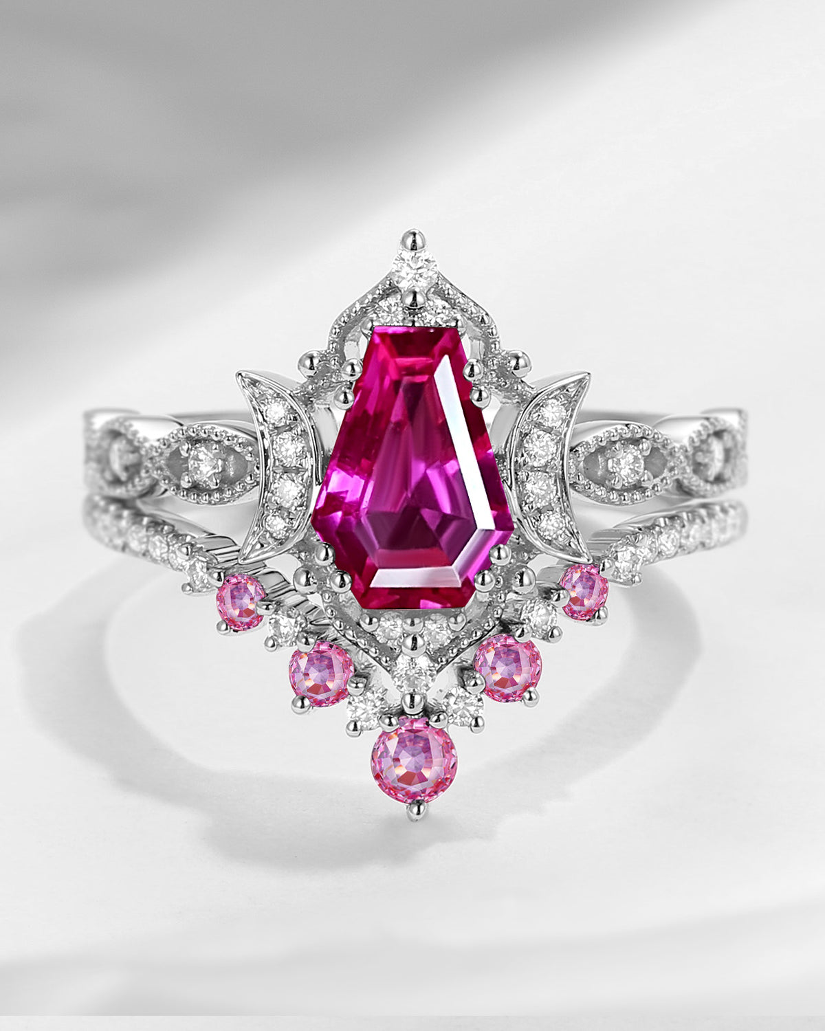 Coffin Morganite Cluster Engagement Star Ring Set 2pcs - Coffin Kite
