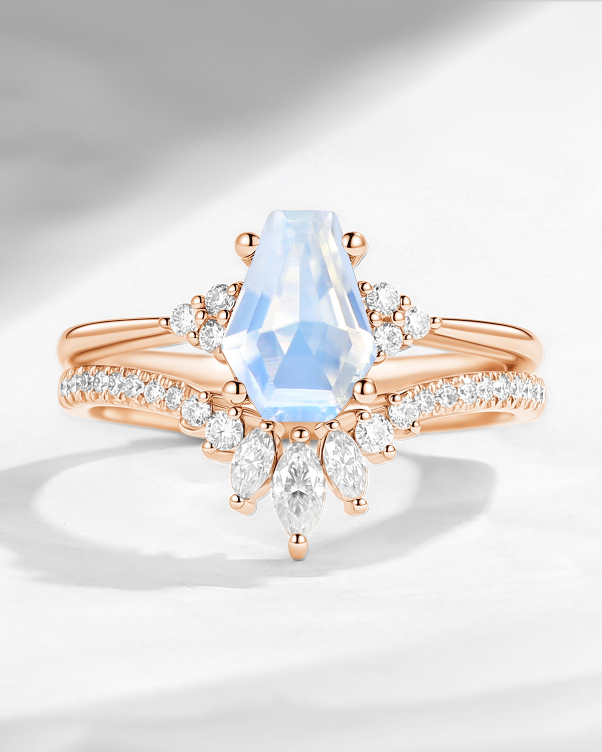 Coffin Cut Moonstone Cluster Engagement Set 2pcs - White Dress