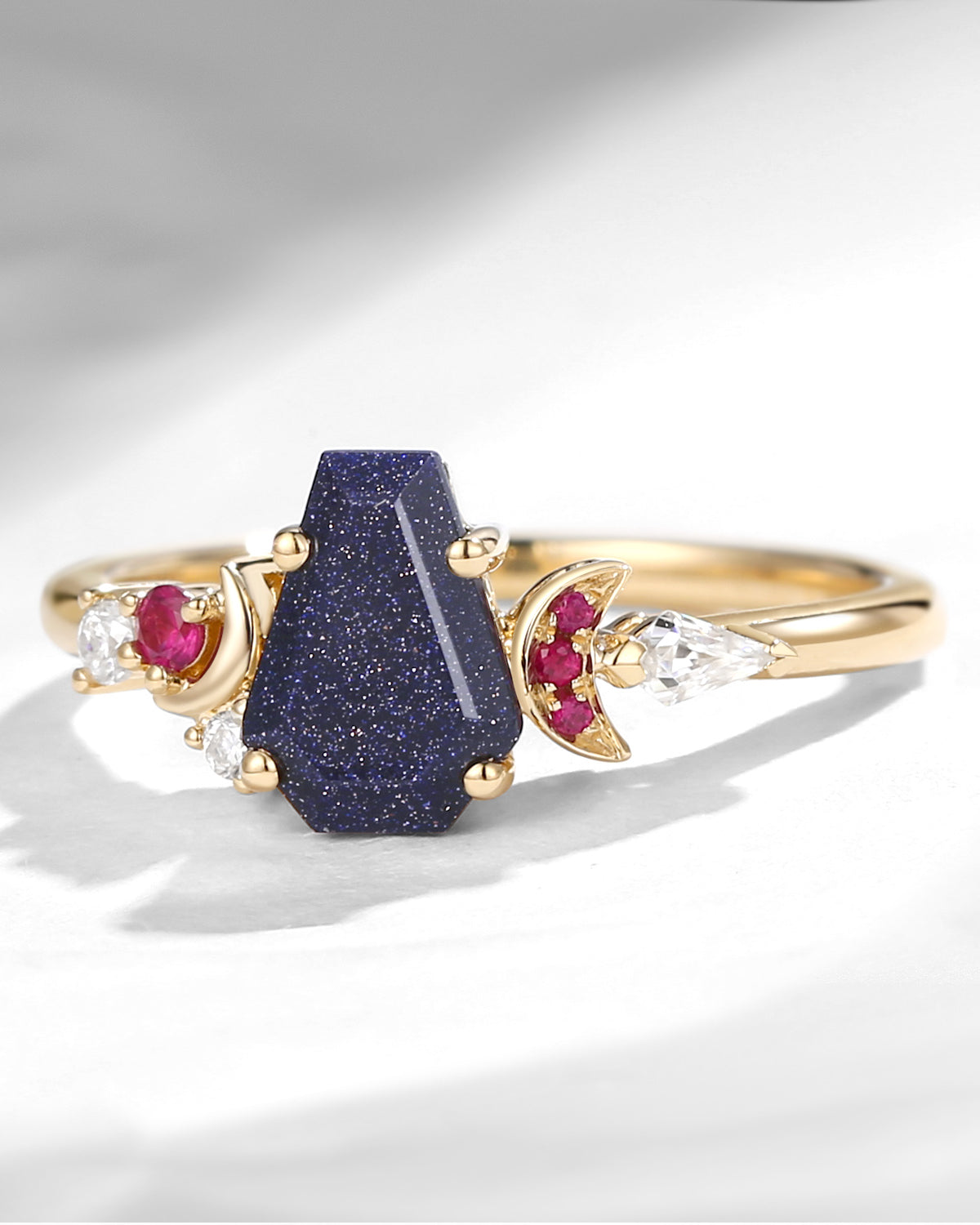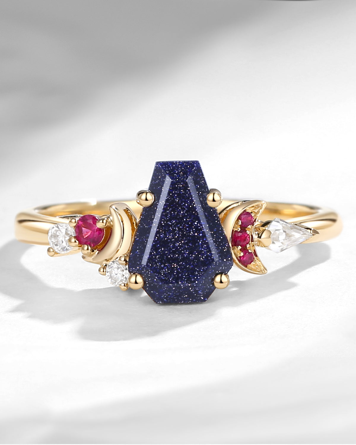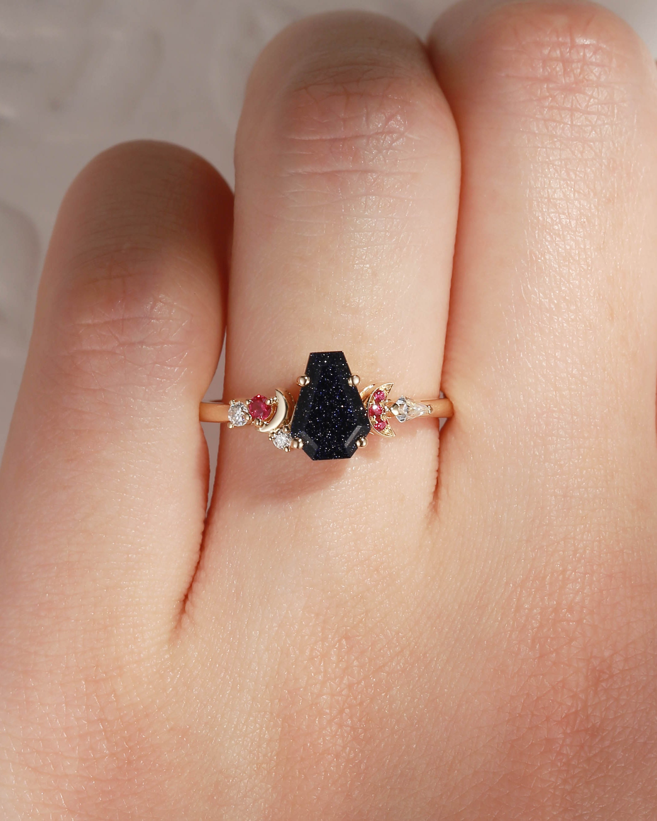 Crescent Moon | Unique Coffin Blue Sandstone Infinity Celtic Engagement Ring