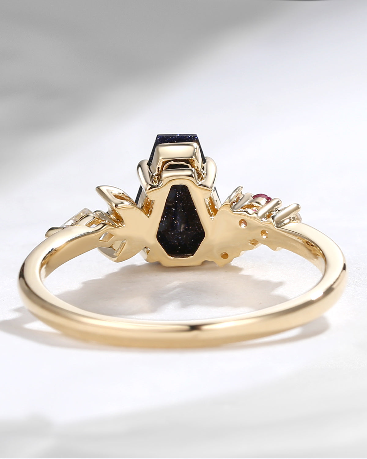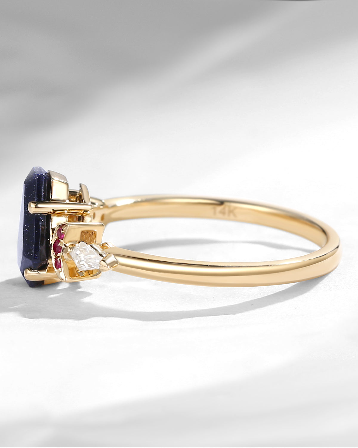 Cluster Coffin Shaped Blue Sandstone Classic Engagement Ring