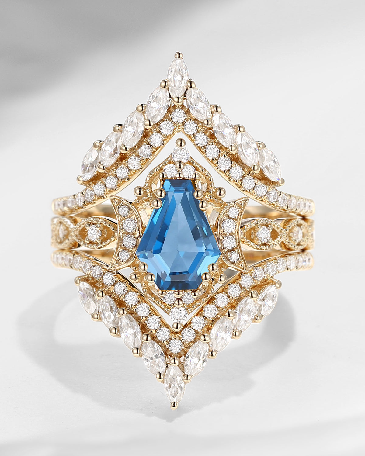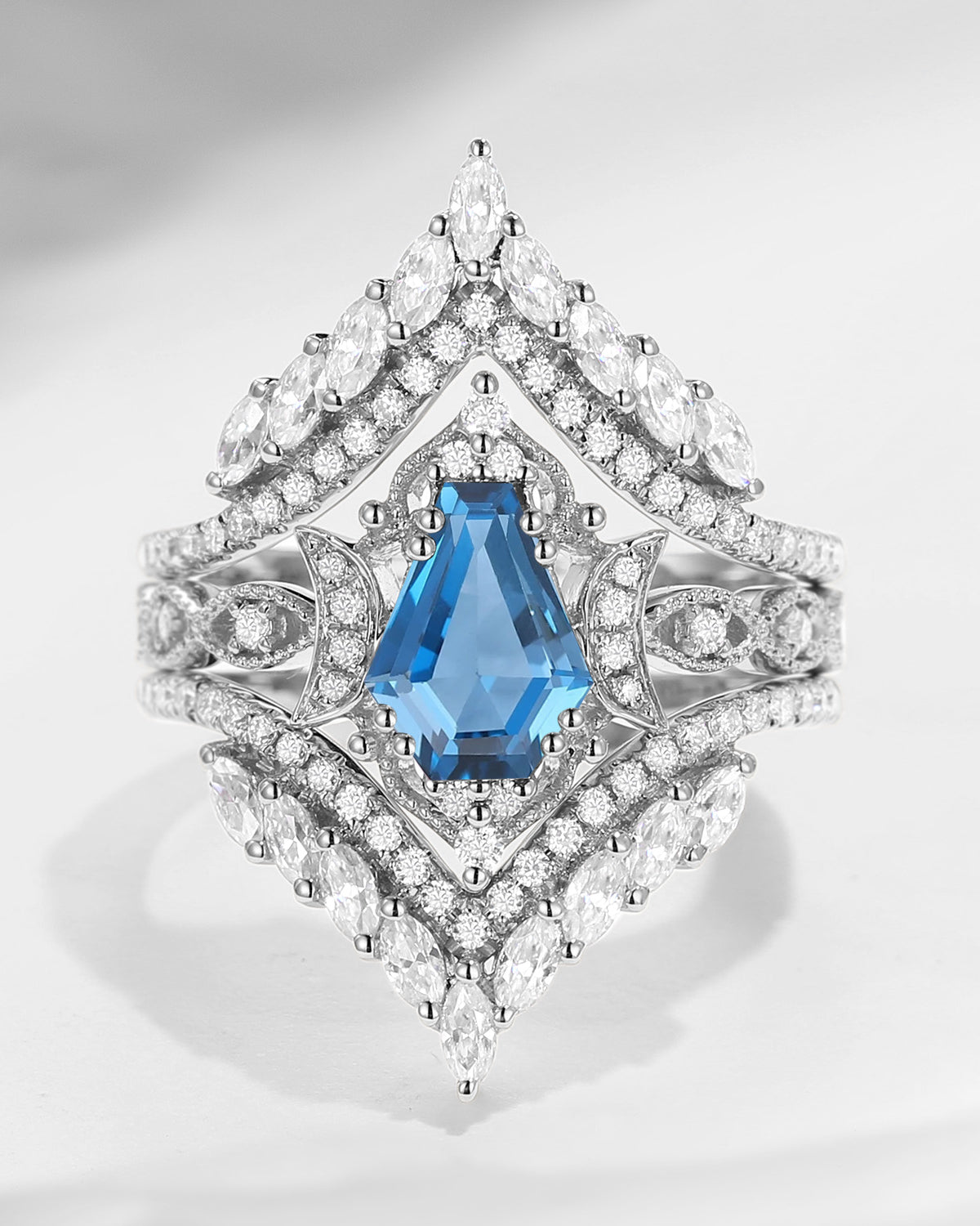 Crescent Moon | Unique Coffin Cut Blue Sandstone Celtic Engagement Ring Set 2pcs