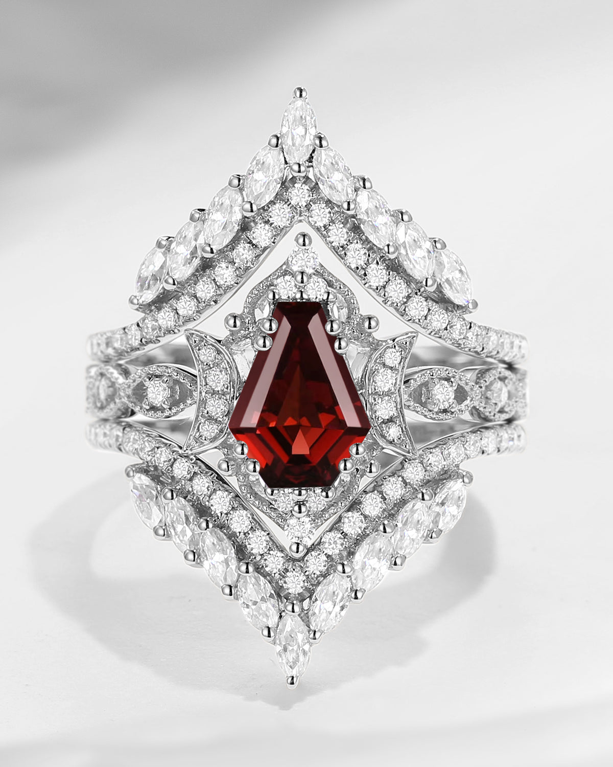 Crescent Moon | Vintage Coffin Cut Garnet Engagement Ring Jacket 2pcs - Guardian Angel