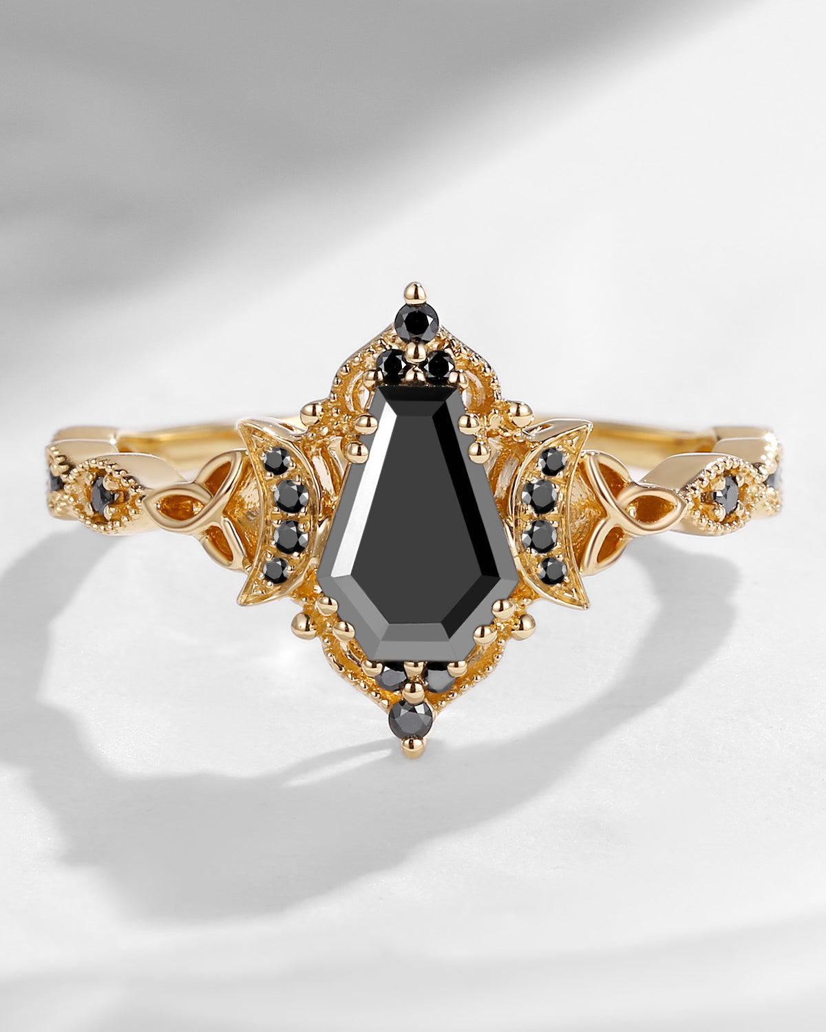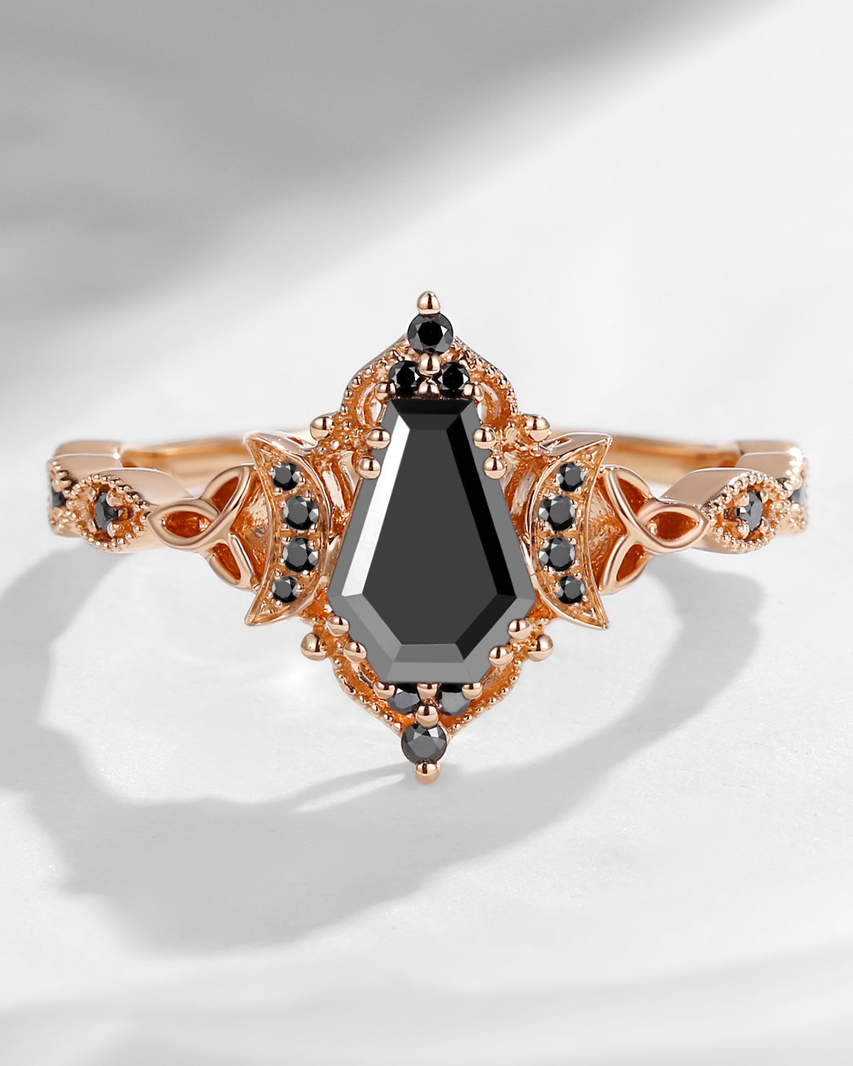 Crescent Moon | Unique Coffin Garnet Celtic Infinity Engagement Ring Set 3pcs