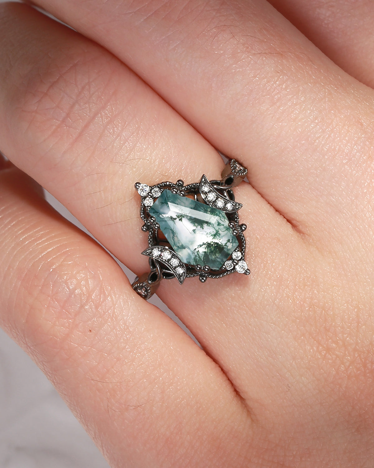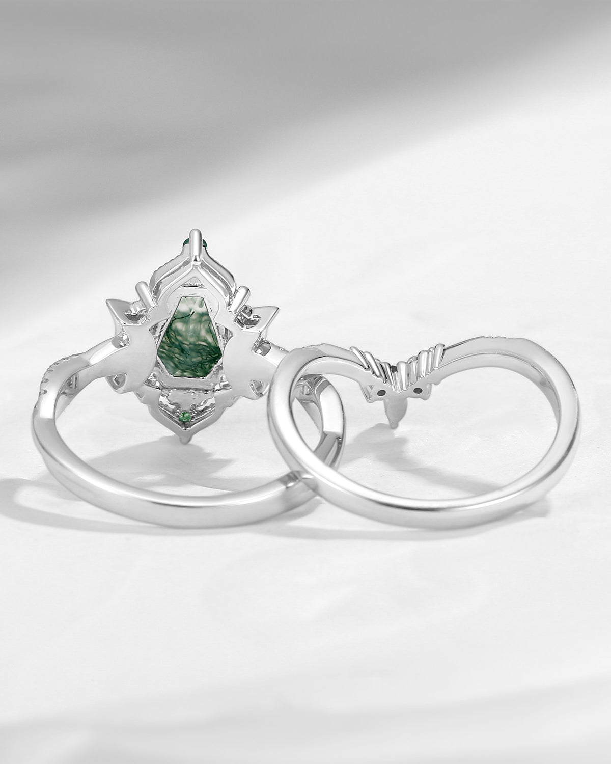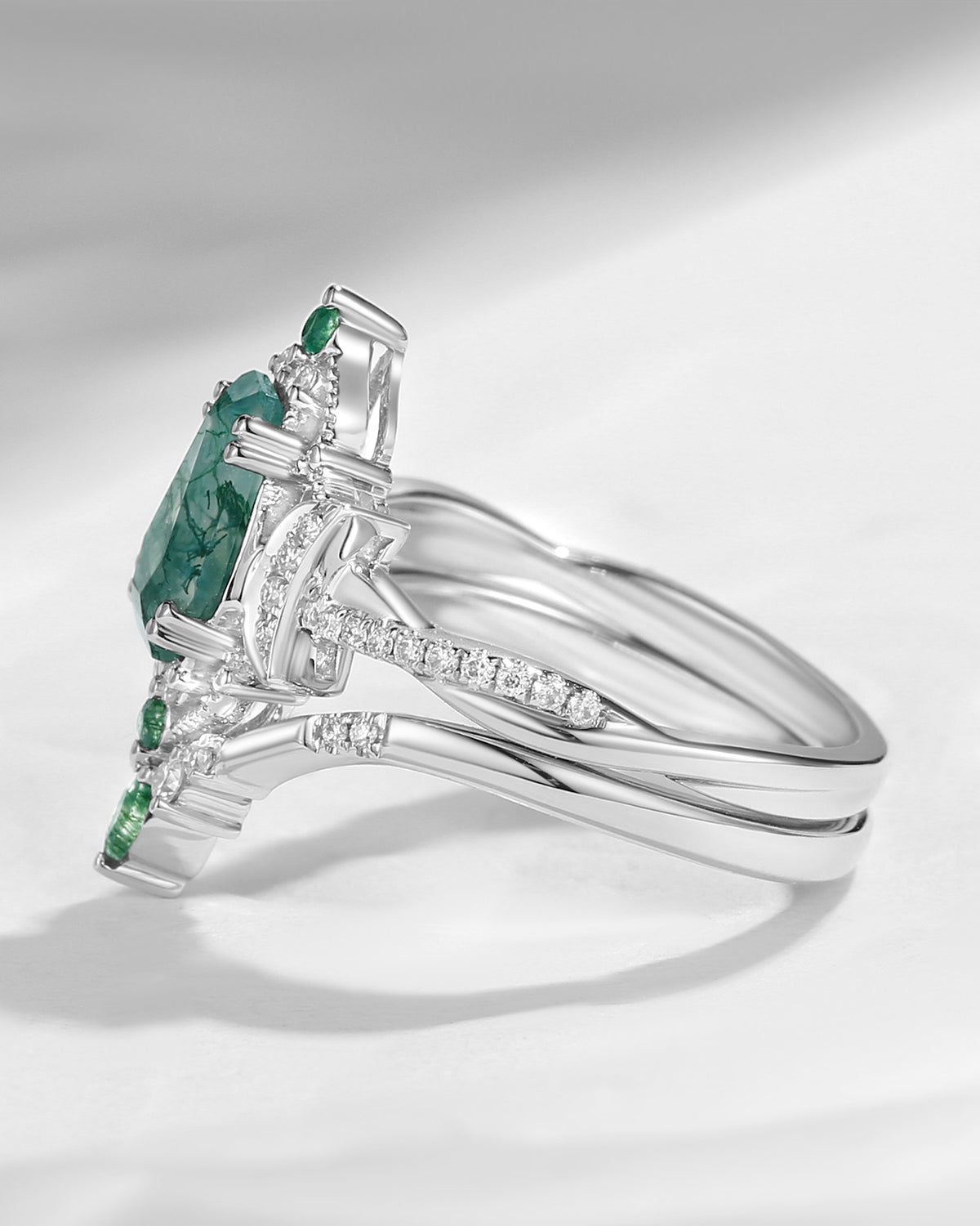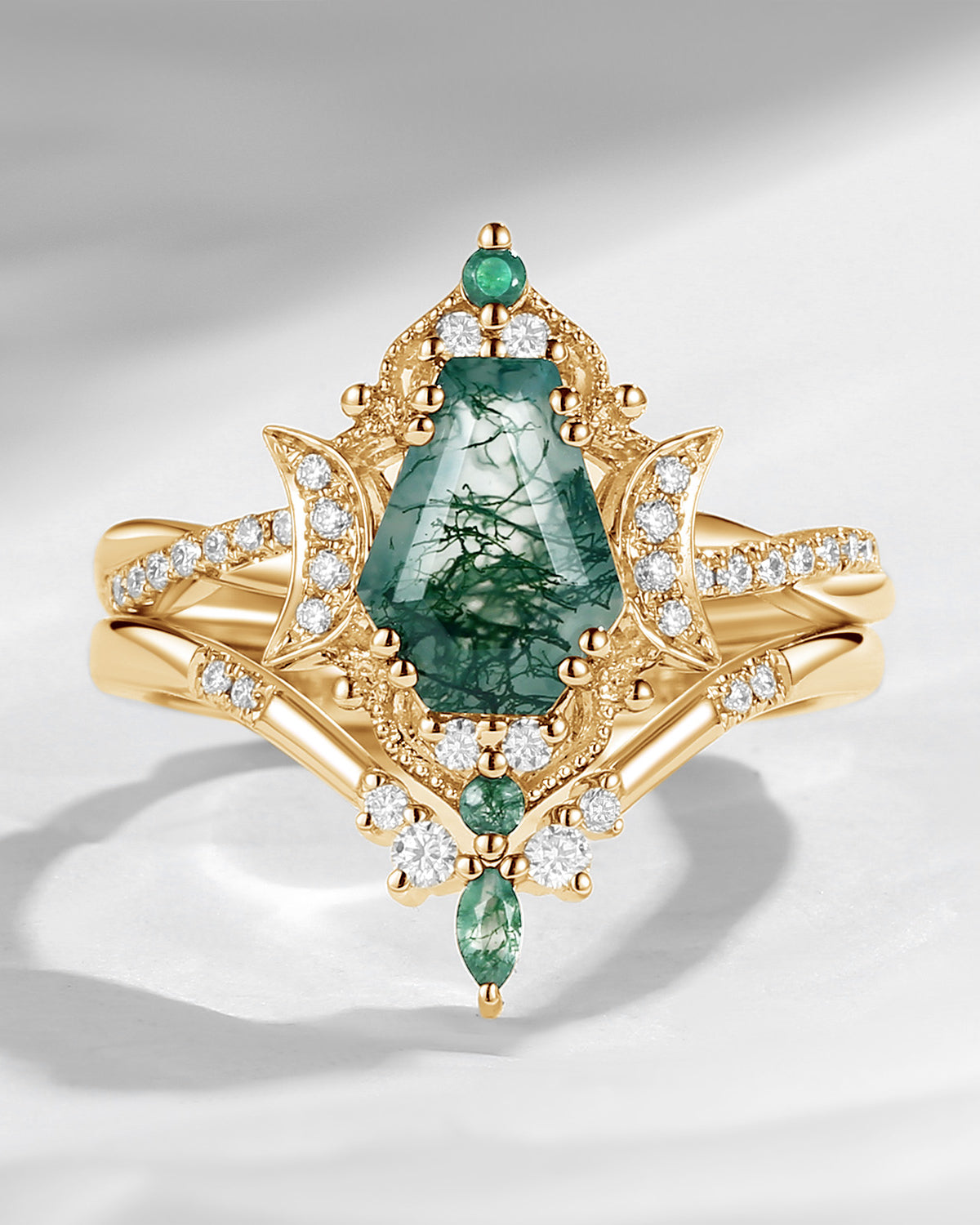 Crescent Moon | Coffin Cut Moss Agate Infinity Open Black Gold Engagement Ring 2pcs - Infinity Galaxy