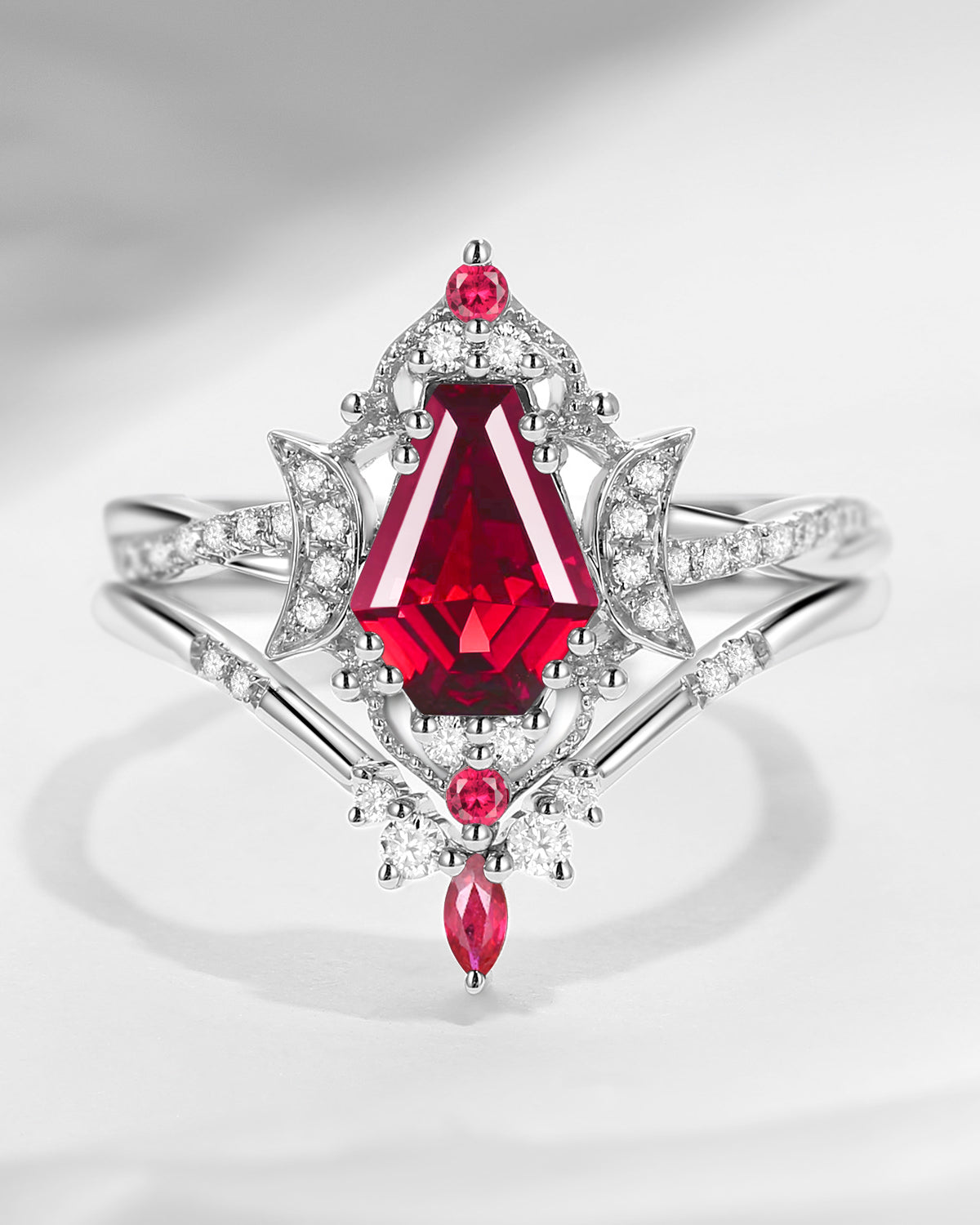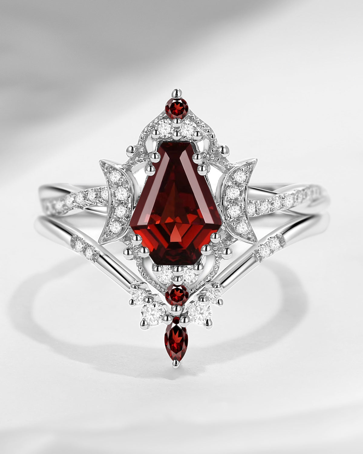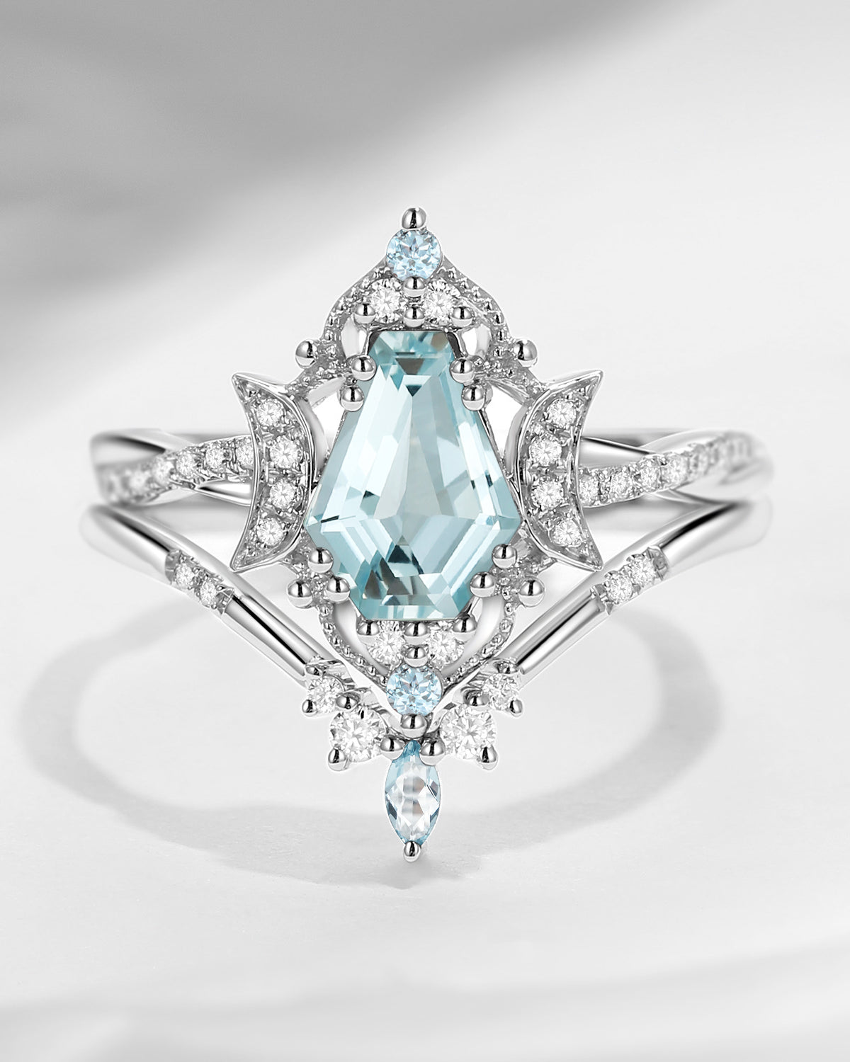 Crescent Moon | Unique Coffin Cut Lab Alexandrite Celtic Engagement Ring Set 2pcs