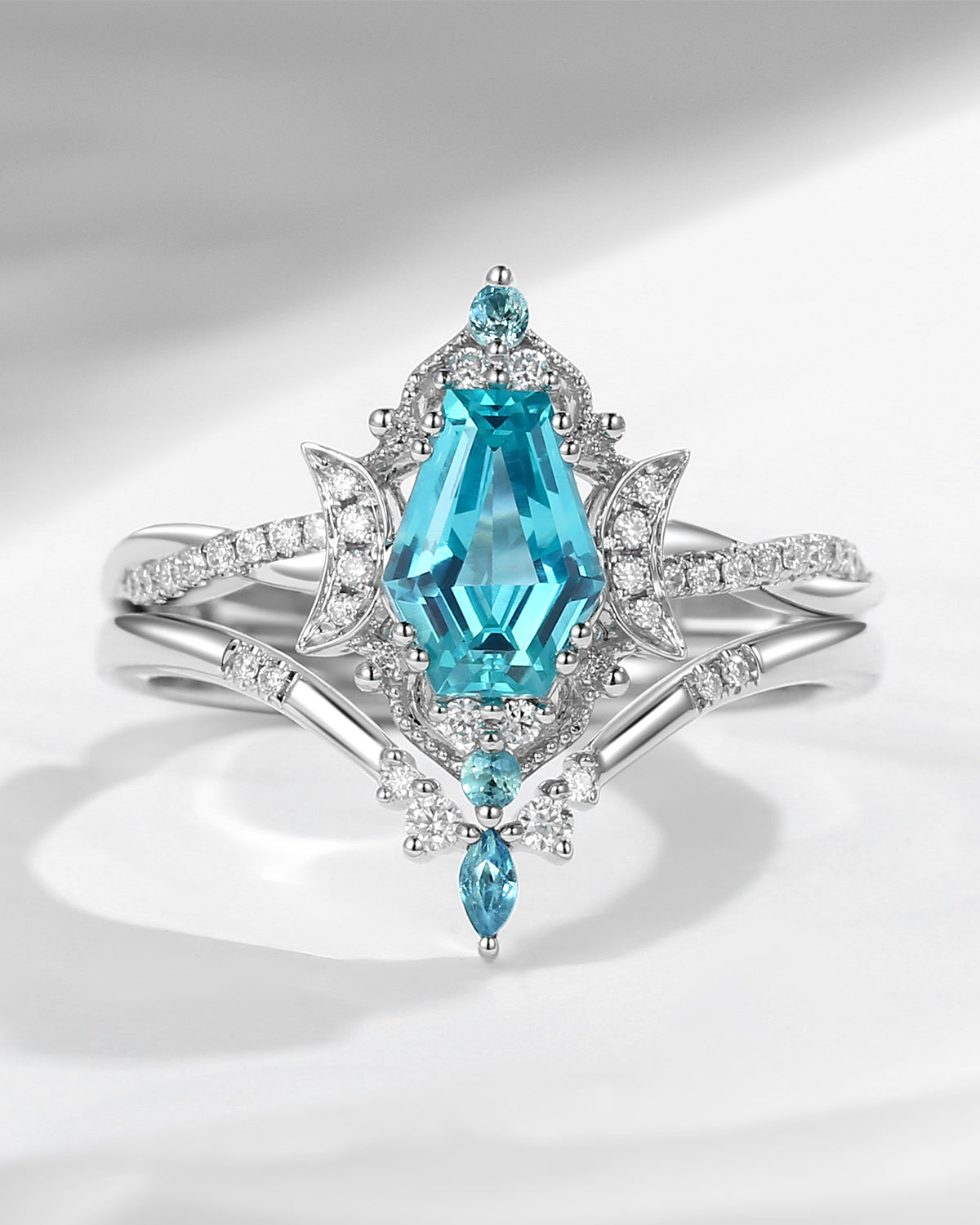 Crescent Moon | Coffin Lab Alexandrite Classic Engagement Ring Set 2pcs