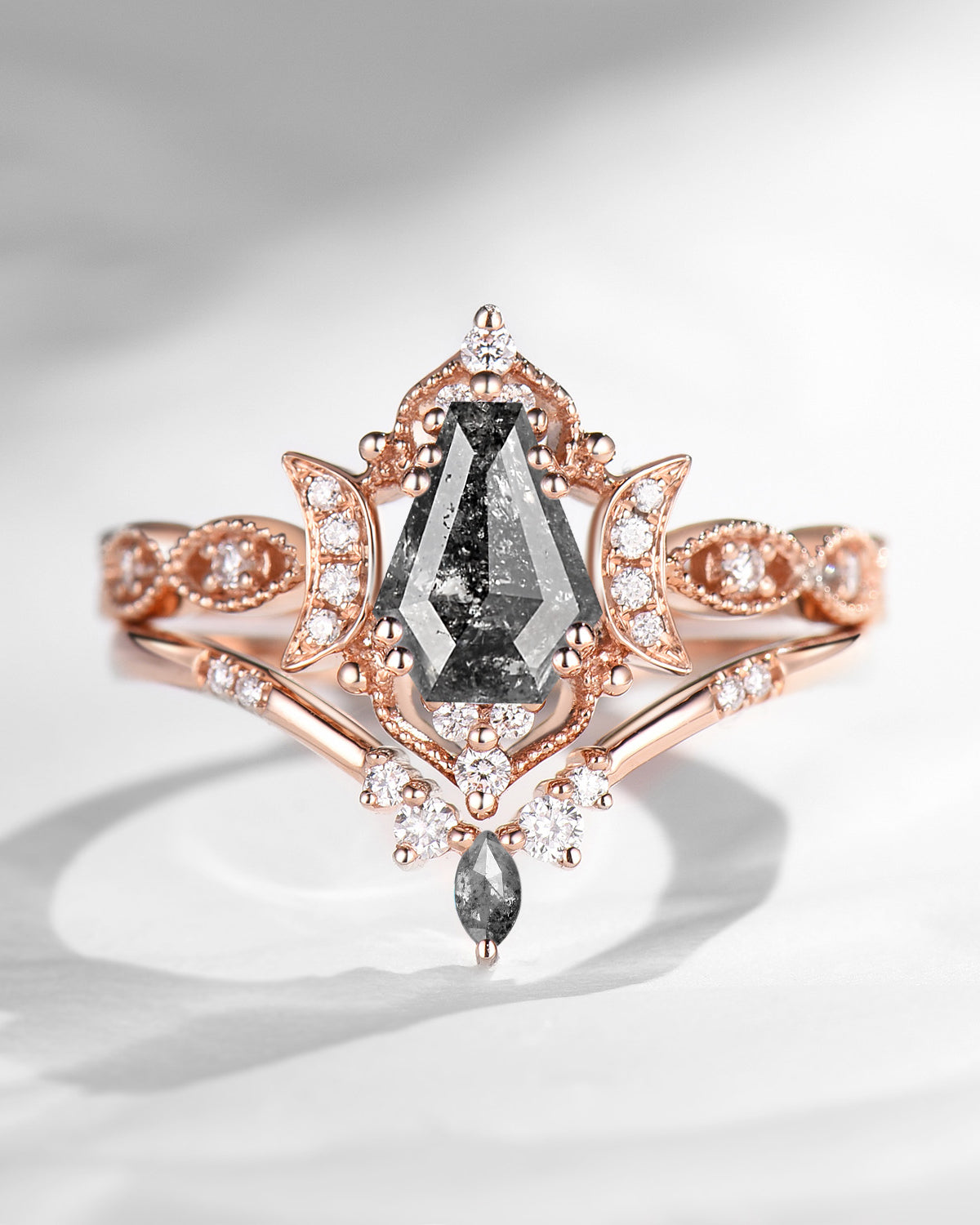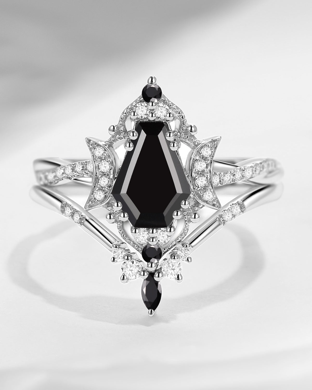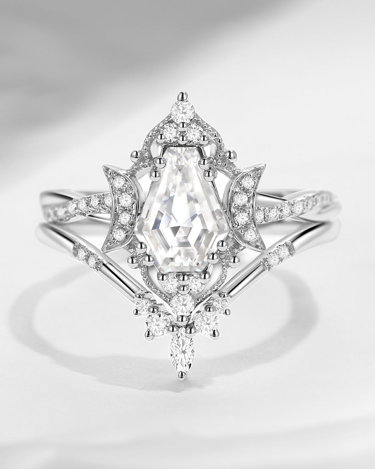 Crescent Moon | Unique Coffin Cut Moonstone Engagement Ring Set 2pcs - Luna