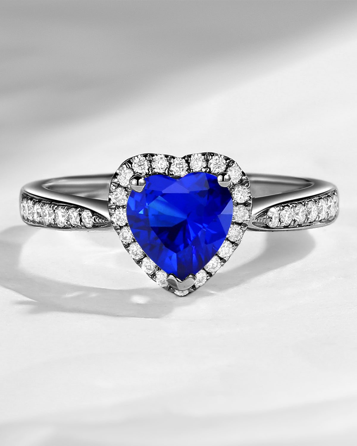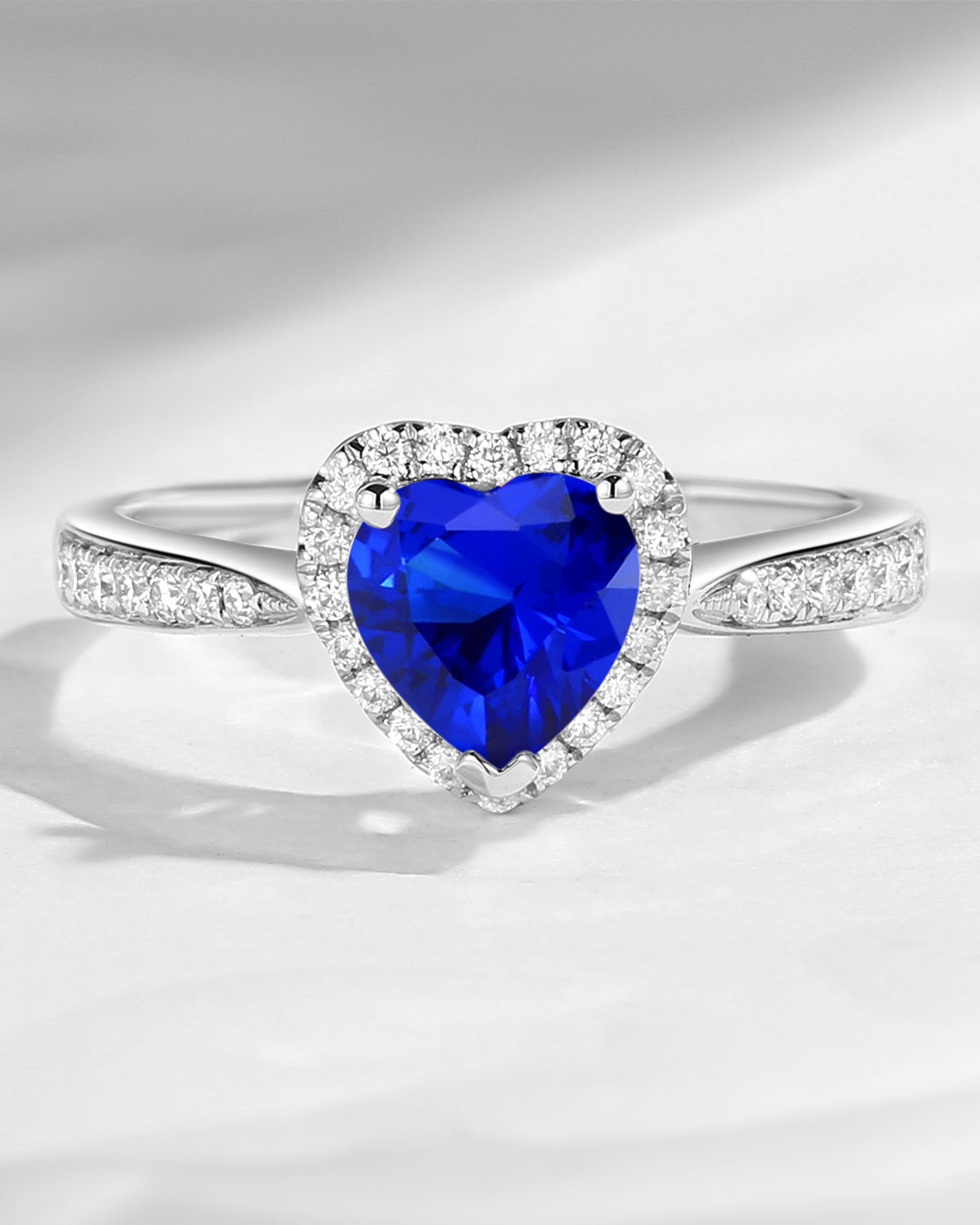 Classic Heart Shaped Halo Lab Sapphire Promise Ring