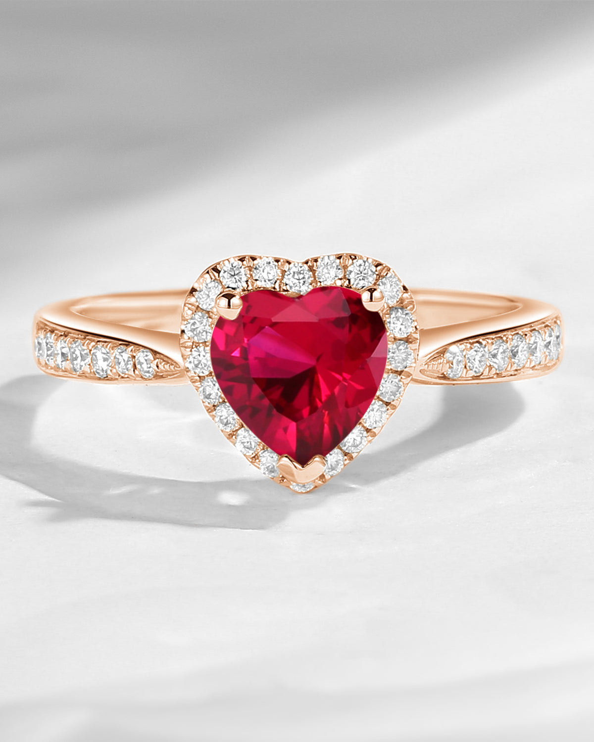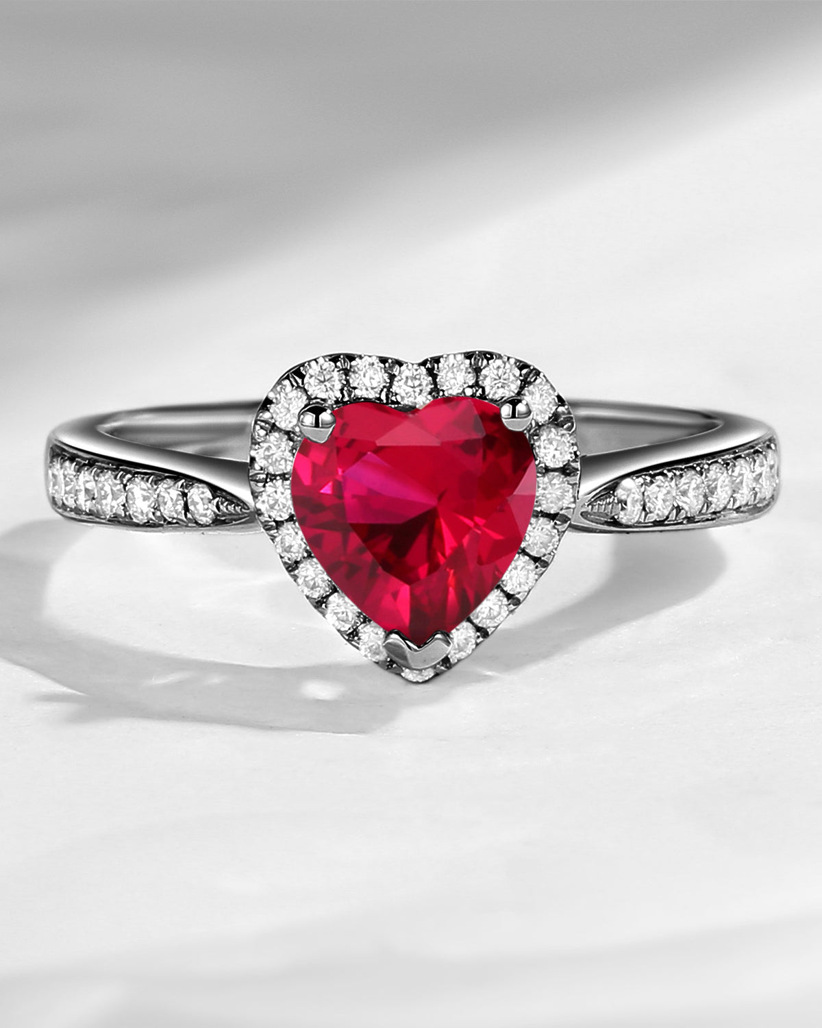 Classic Heart Shaped Halo Lab Ruby Promise Ring