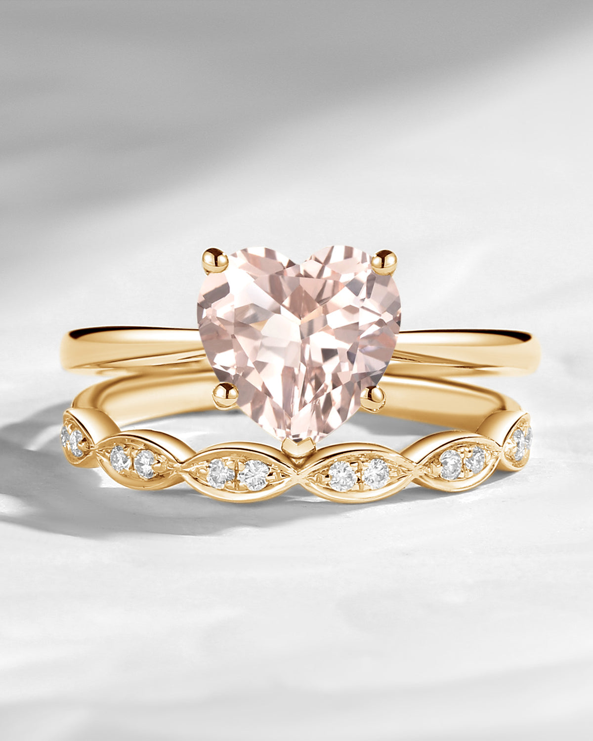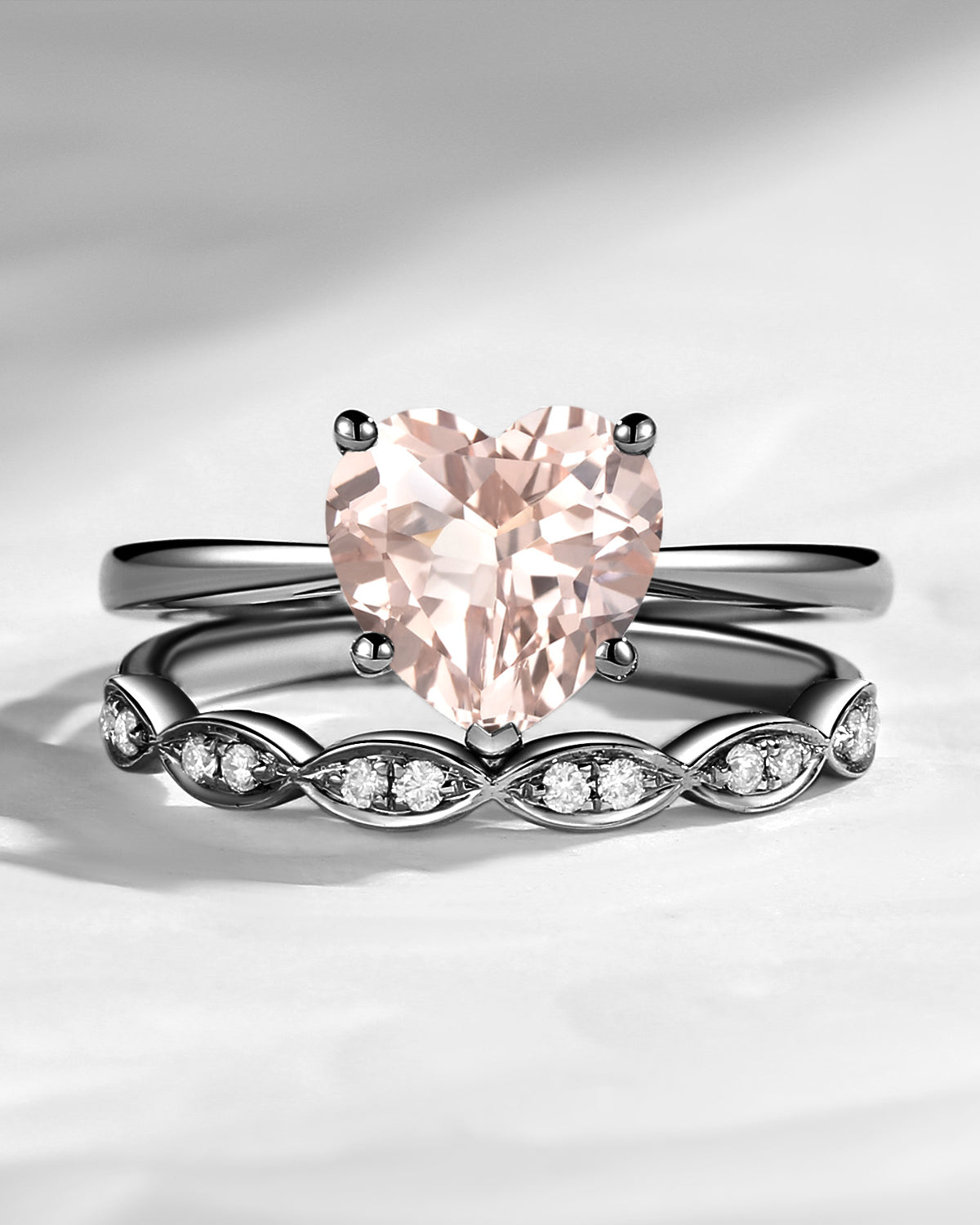 Unique Heart Shaped Solitare Morganite Engagement Ring 2pcs Set