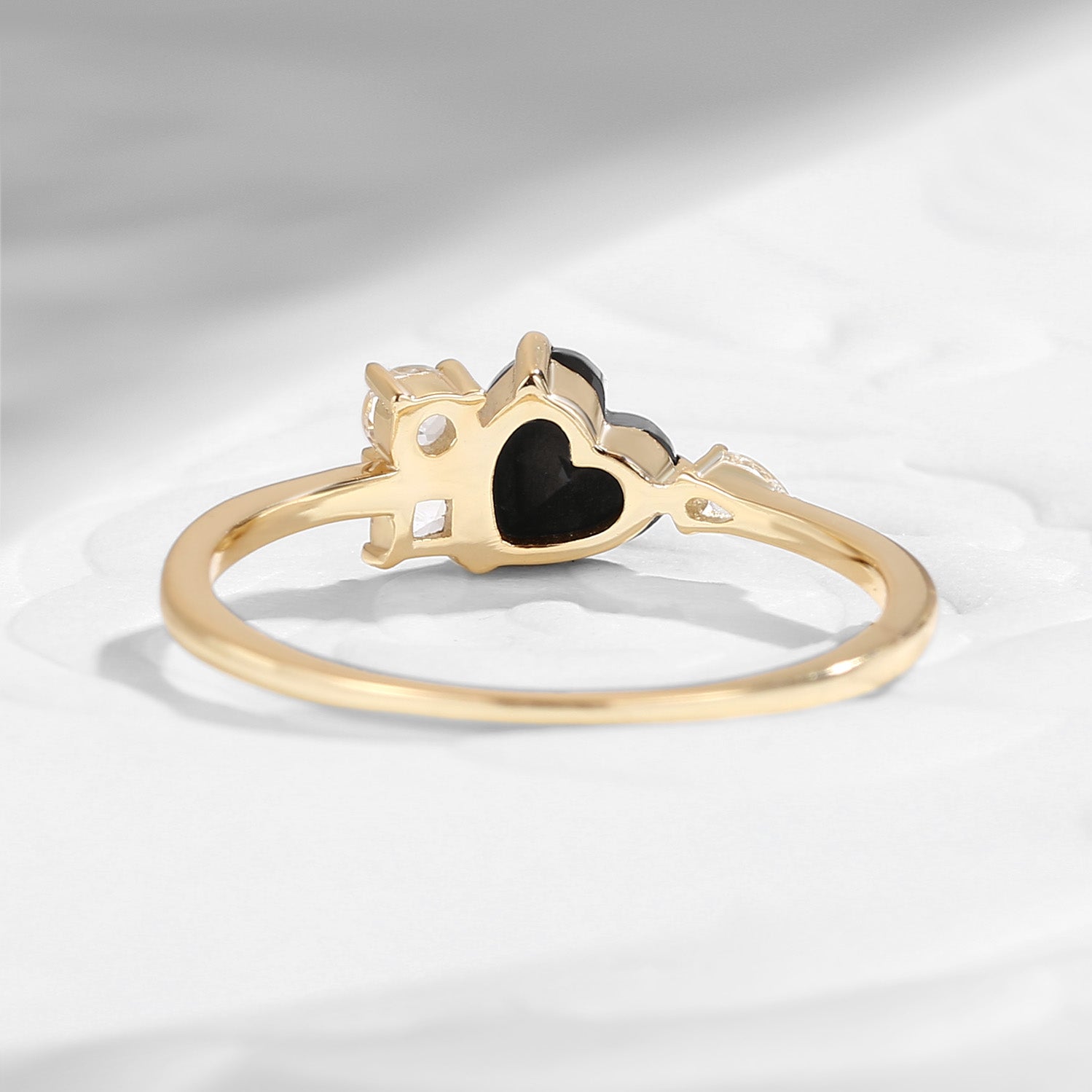 Dainty Art Deco Three Stones Heart Shaped Black Moissanite Promise Ring