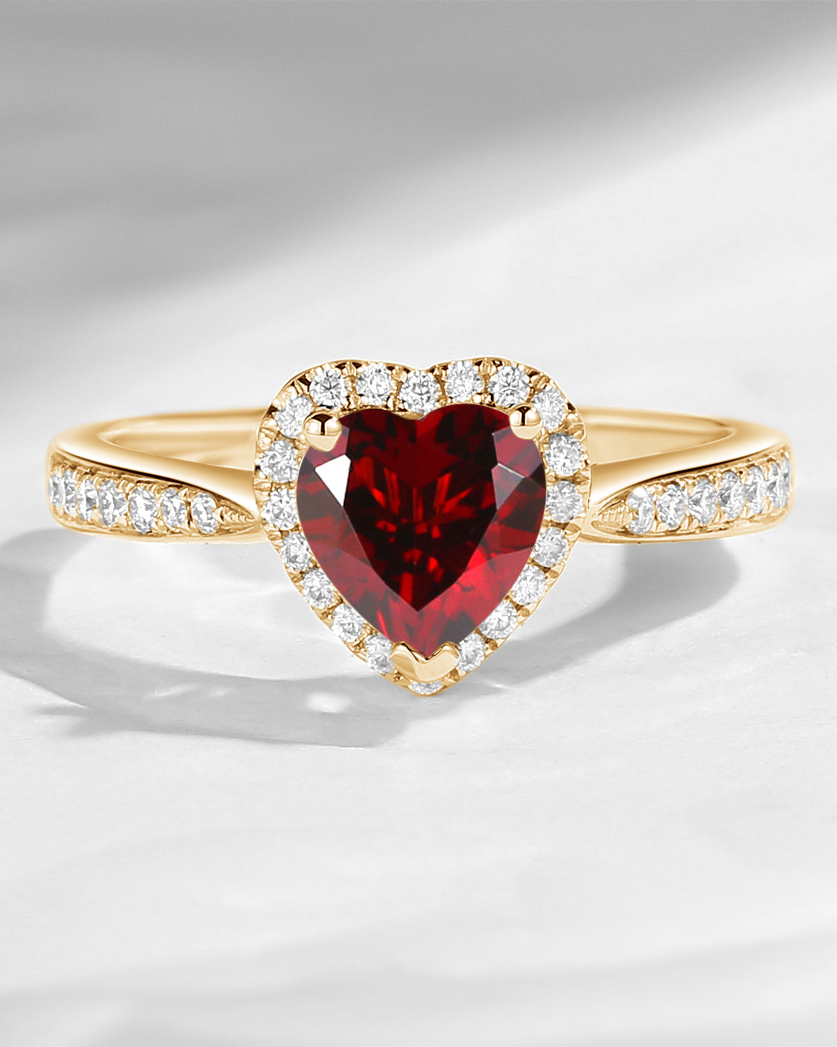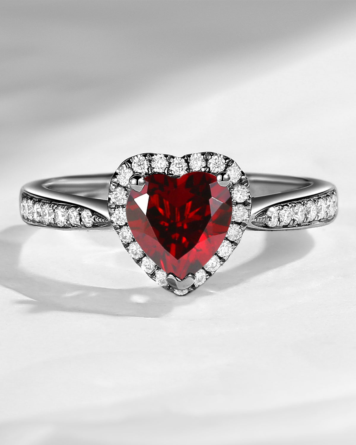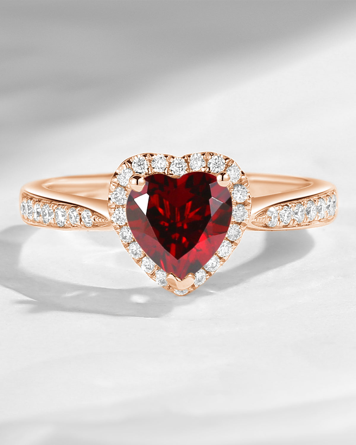 Classic Heart Shaped Halo Garnet Promise Ring