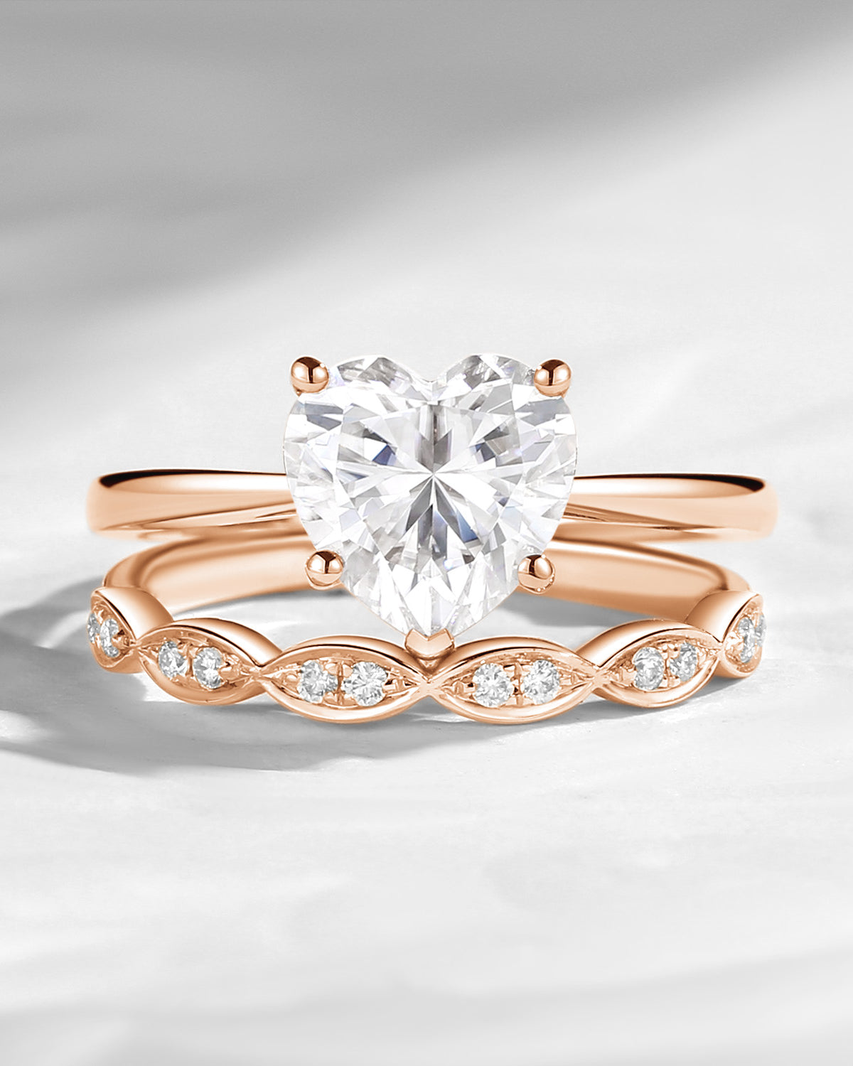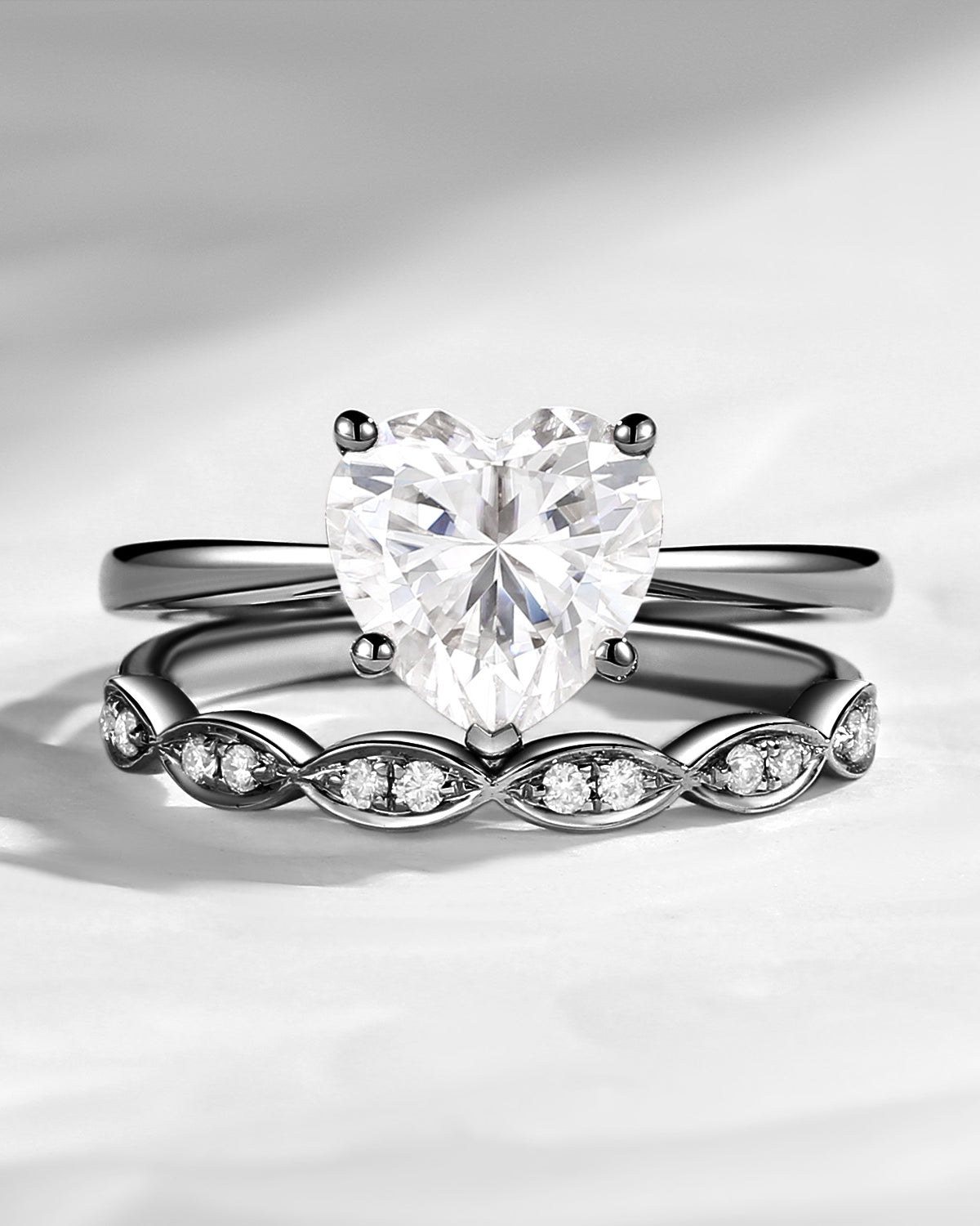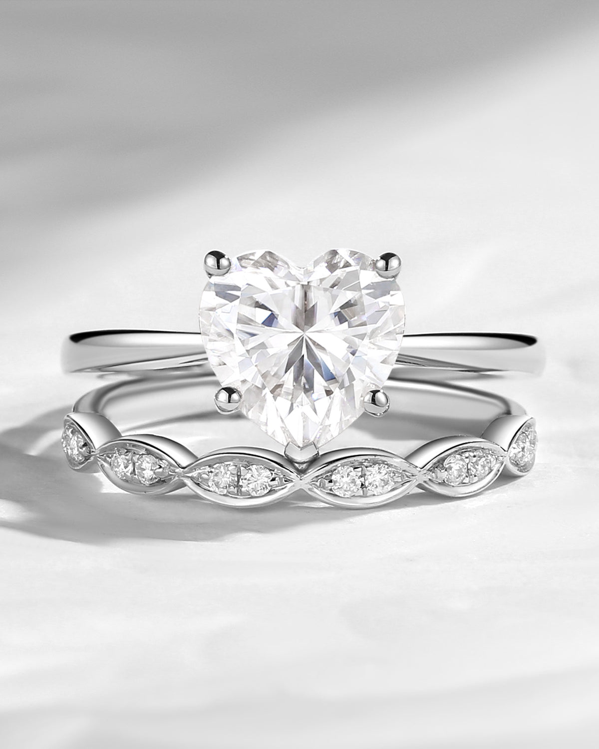 Unique Heart Shaped Solitare Moissanite Engagement Ring 2pcs Set