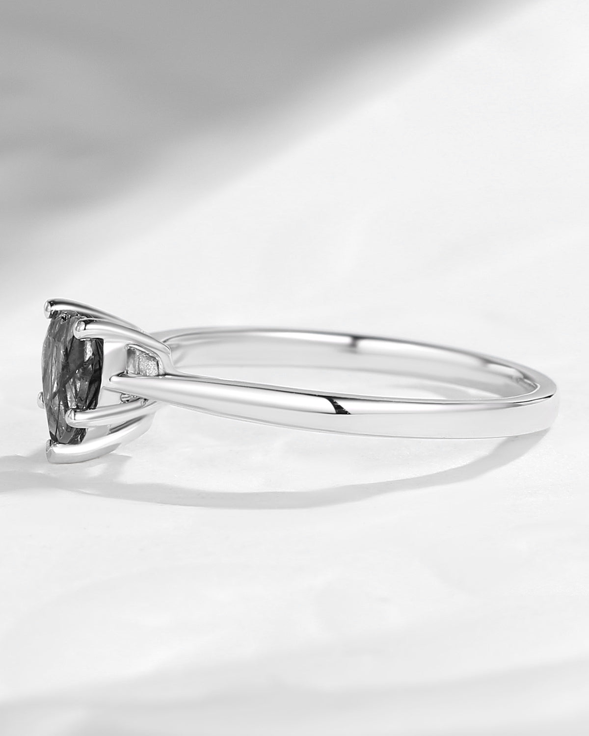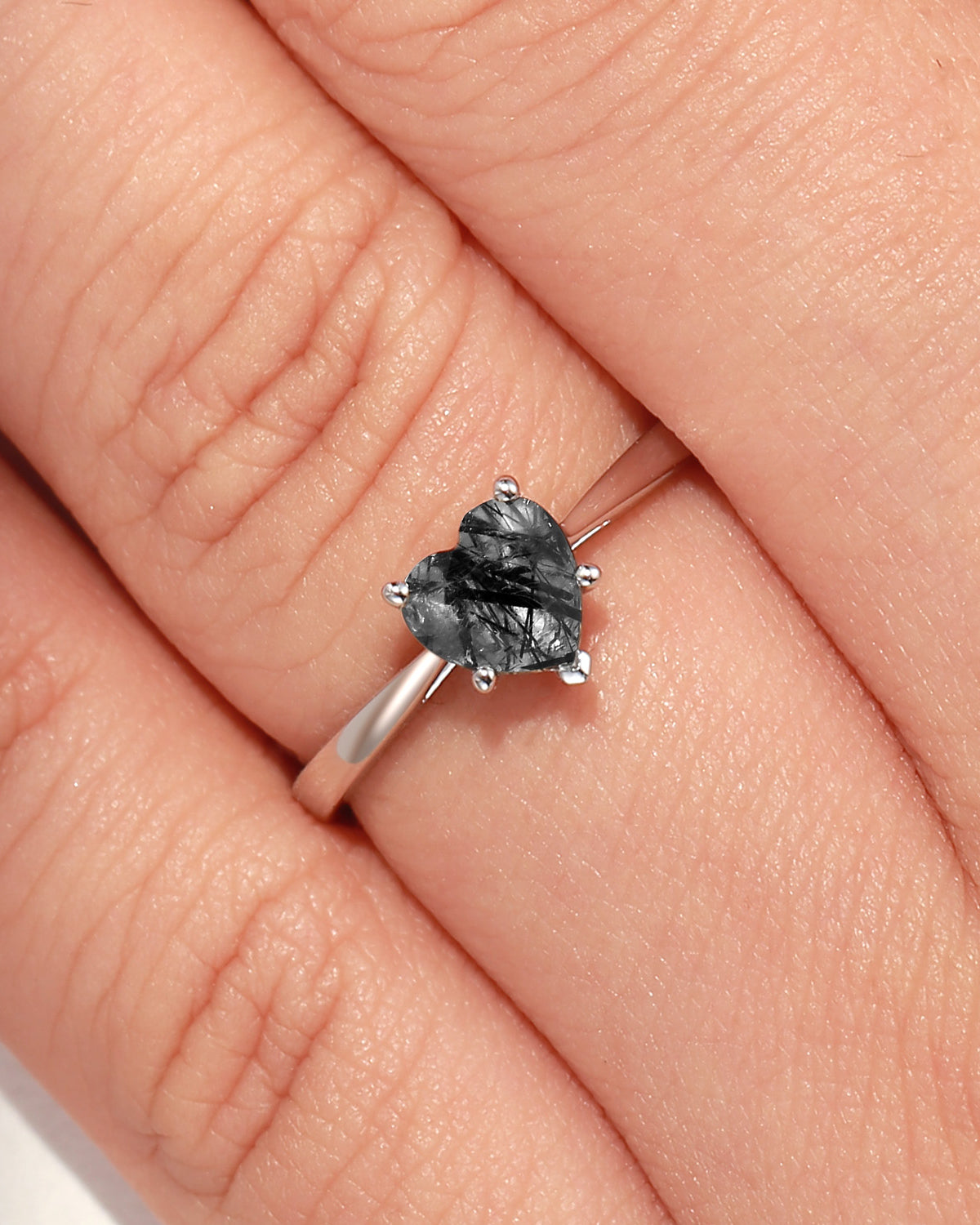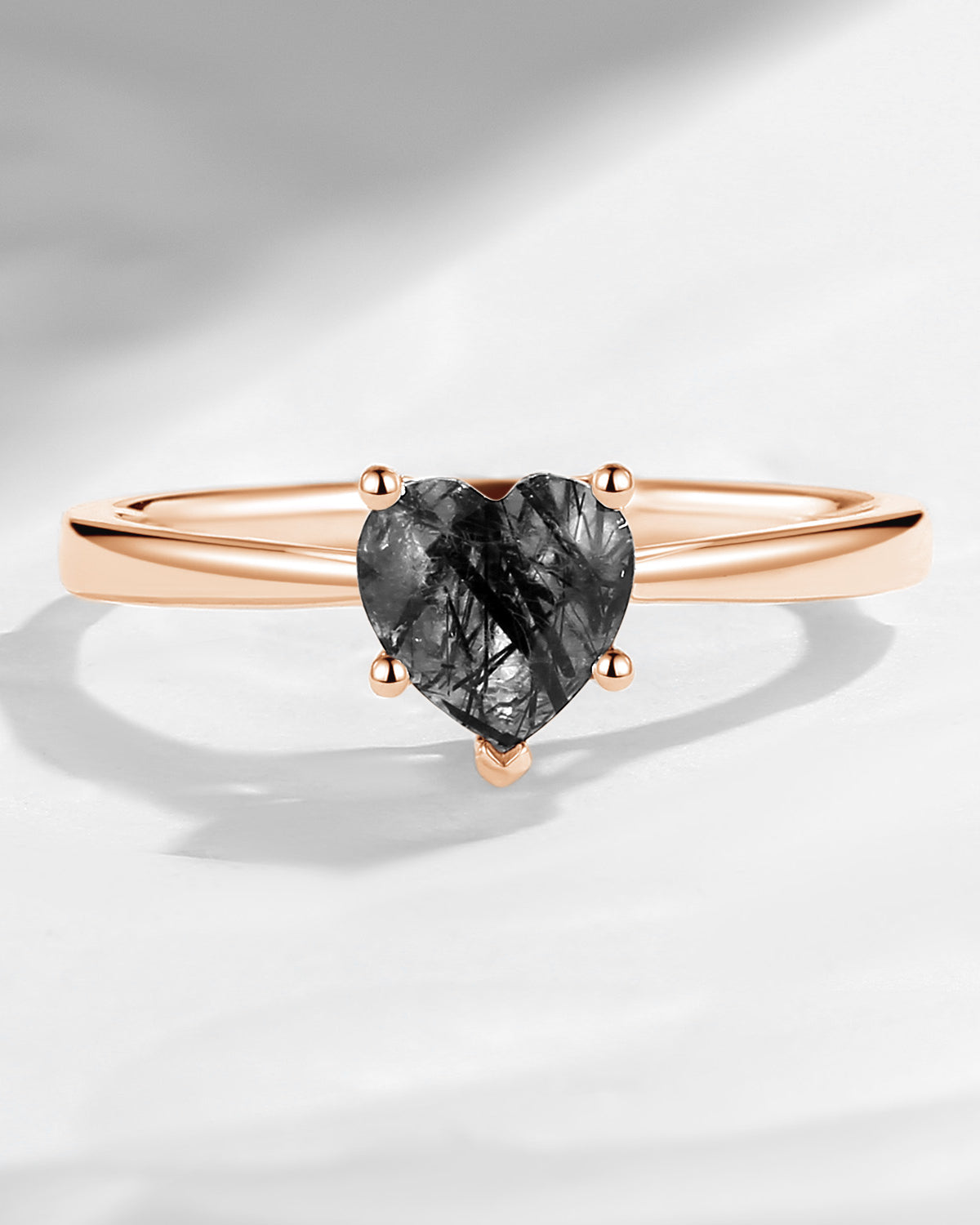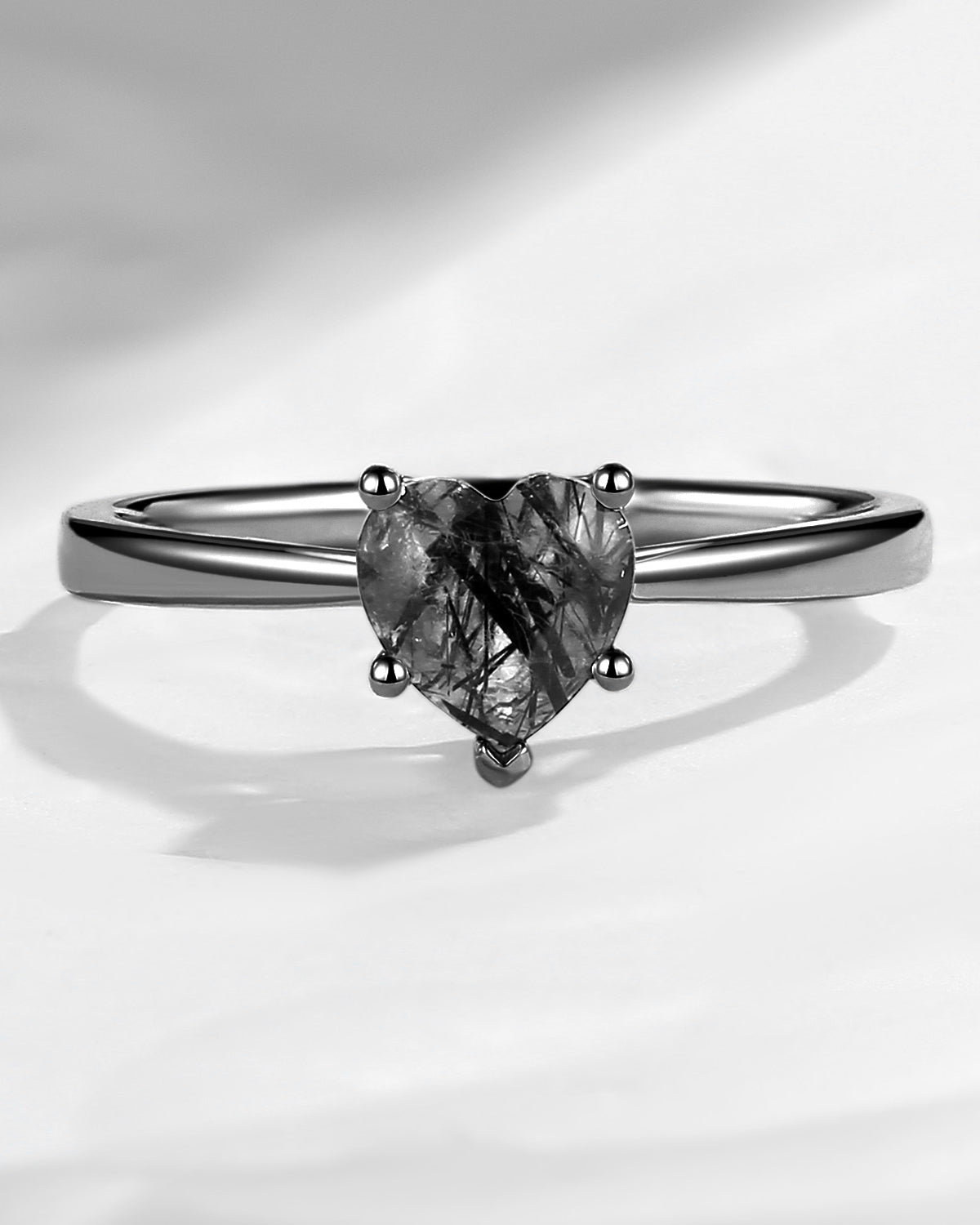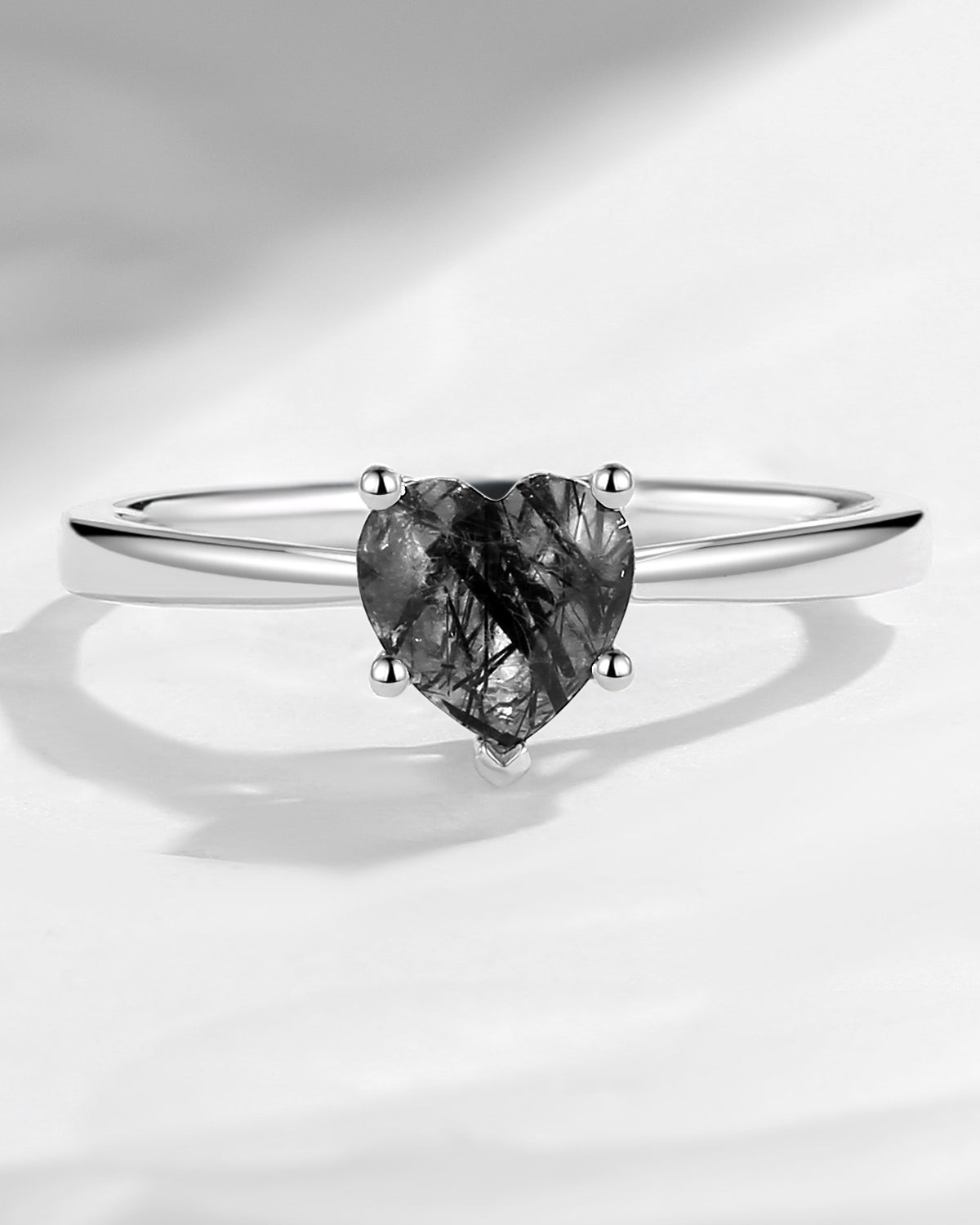 Classic Heart Shaped Solitaire Black Rutilated Quartz Promise Ring