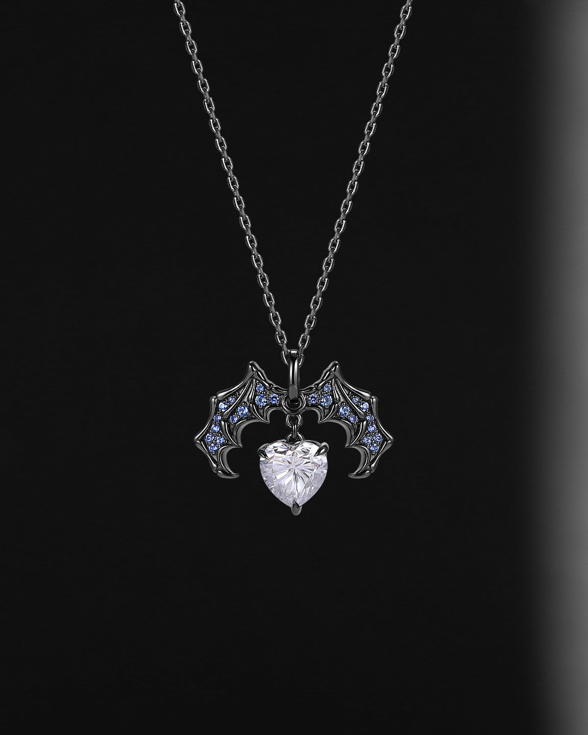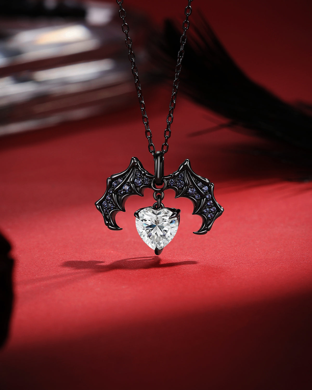 Unique Heart Shaped Garnet Necklace Bat Wing Halloween Jewelry