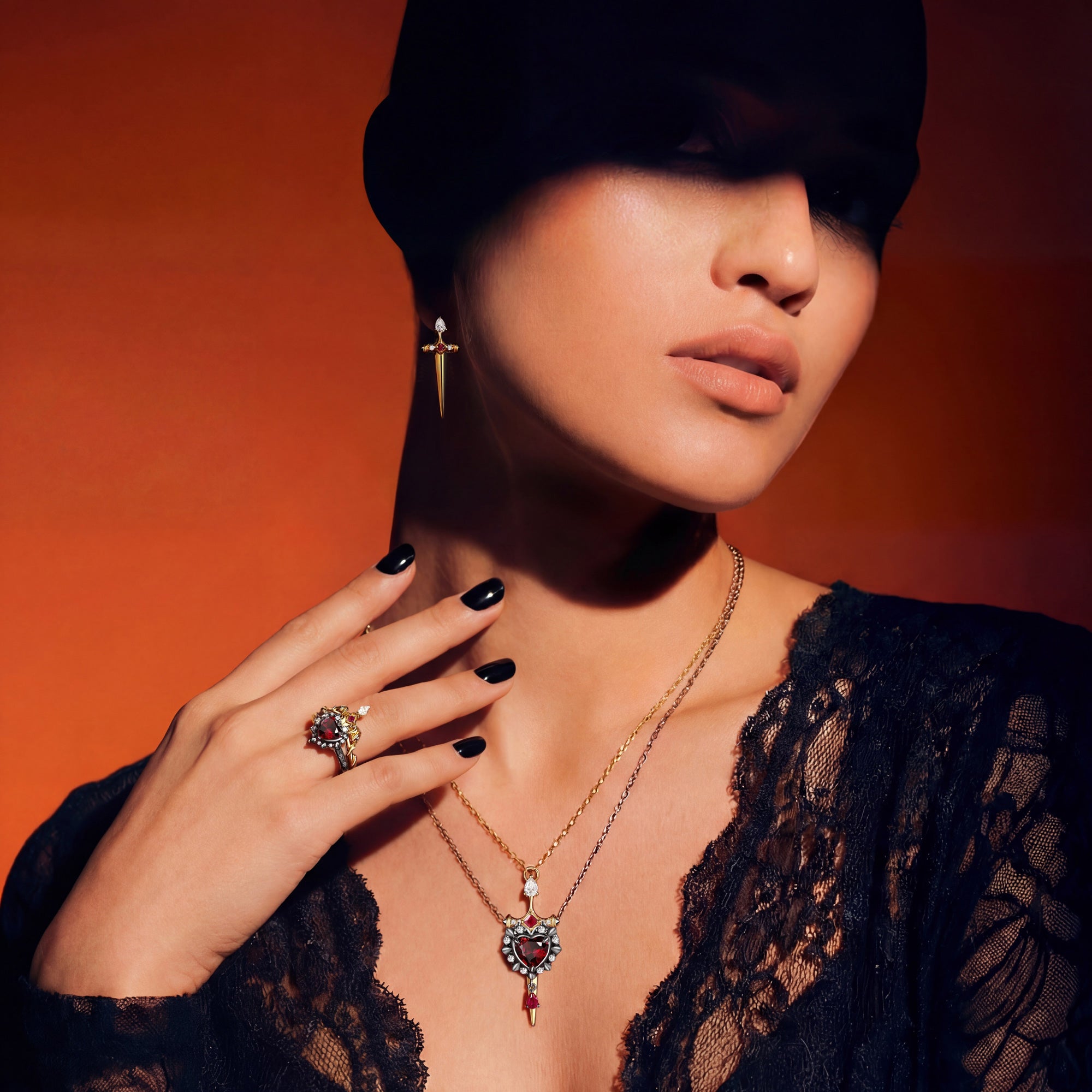 Unique Garnet Heart Cut Gothic Style Necklace - Fly To Love