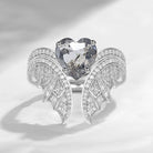 Heart Shaped Natural Salt And Pepper Diamond Vintage Bridal Set 2pcs - Bat Ring