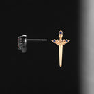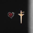 Unique Gothic Style Heart Shaped Garnet & Sapphire Sword Earrings - 'Pierced Heart'