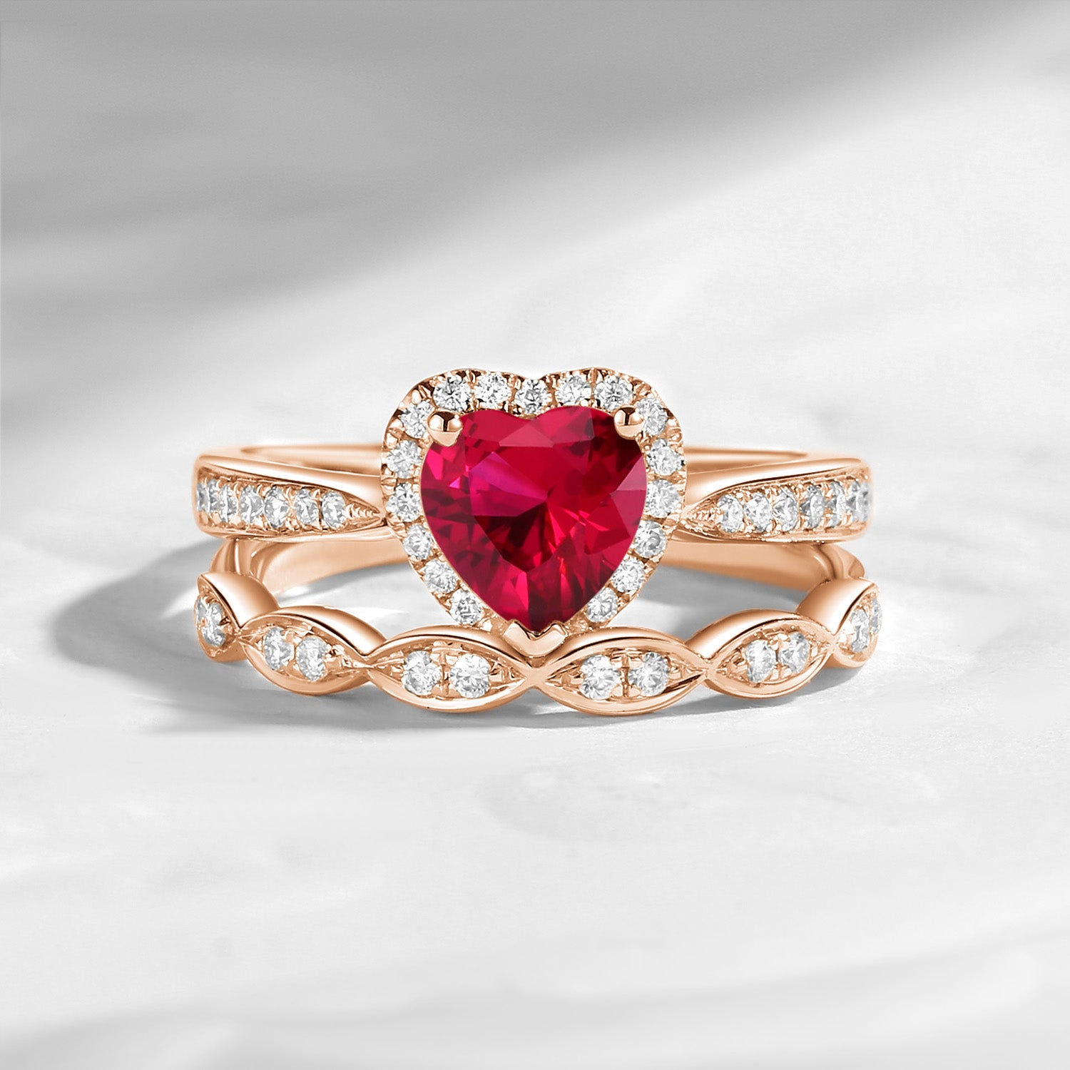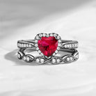 Select moreUnique Heart Shaped Halo Lab Ruby Engagement Ring 2pcs Set