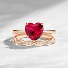 Unique Heart Shaped Solitare Lab Ruby Engagement Ring 2pcs Set