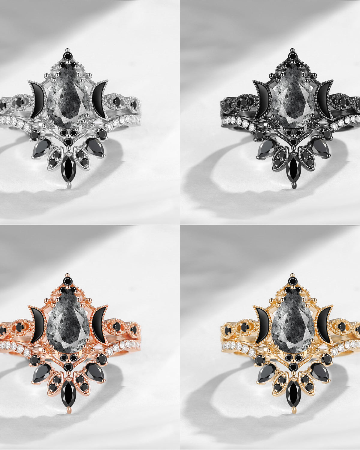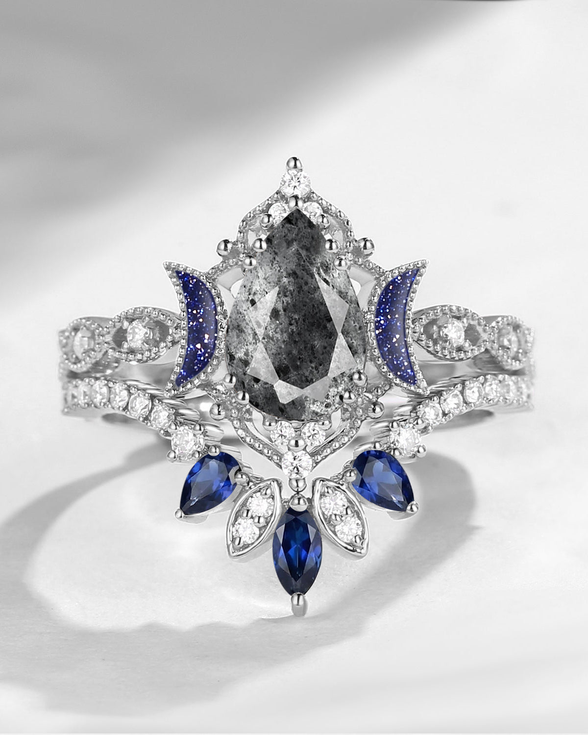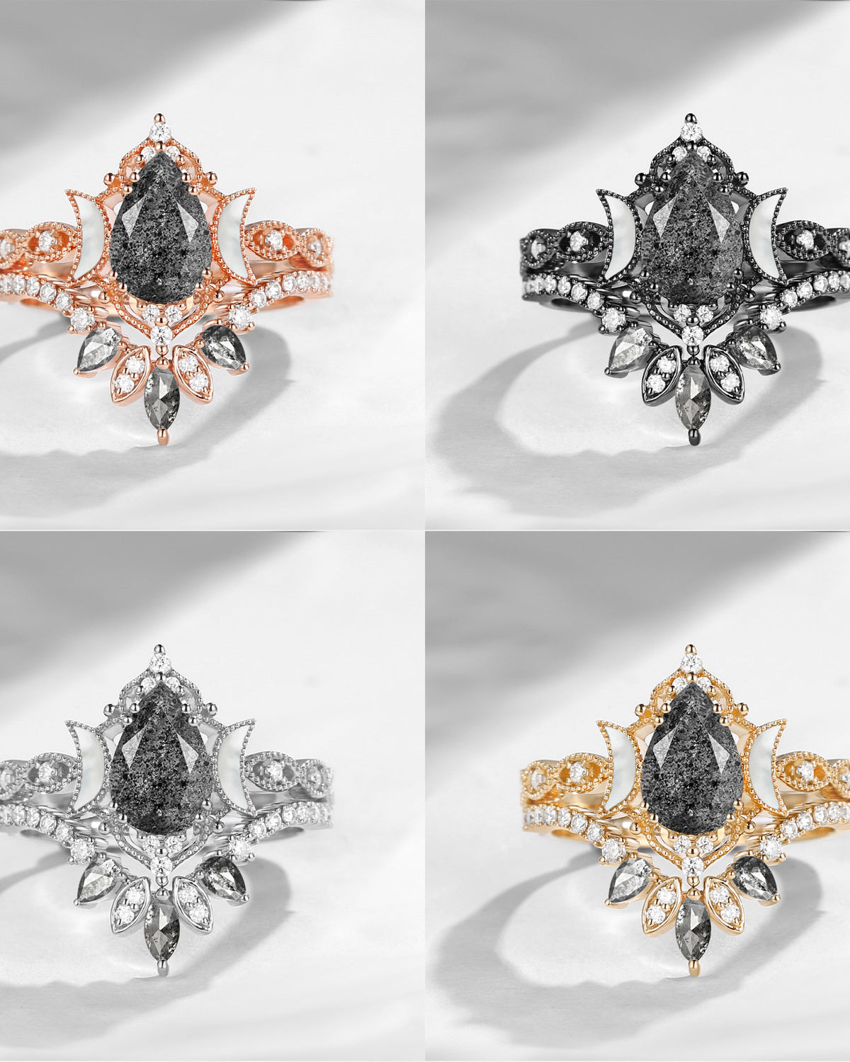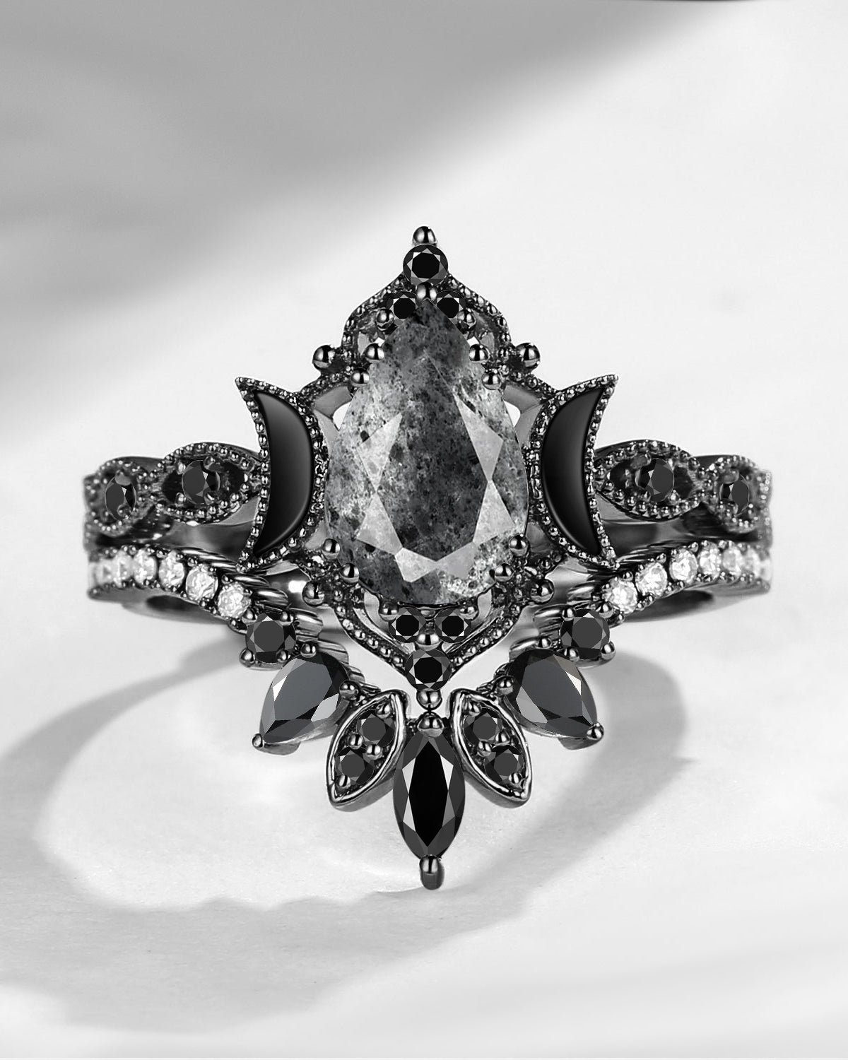Unique Coffin Cut Herkimer Diamond Bat Wing Inspired Engagement Ring Set 2pcs