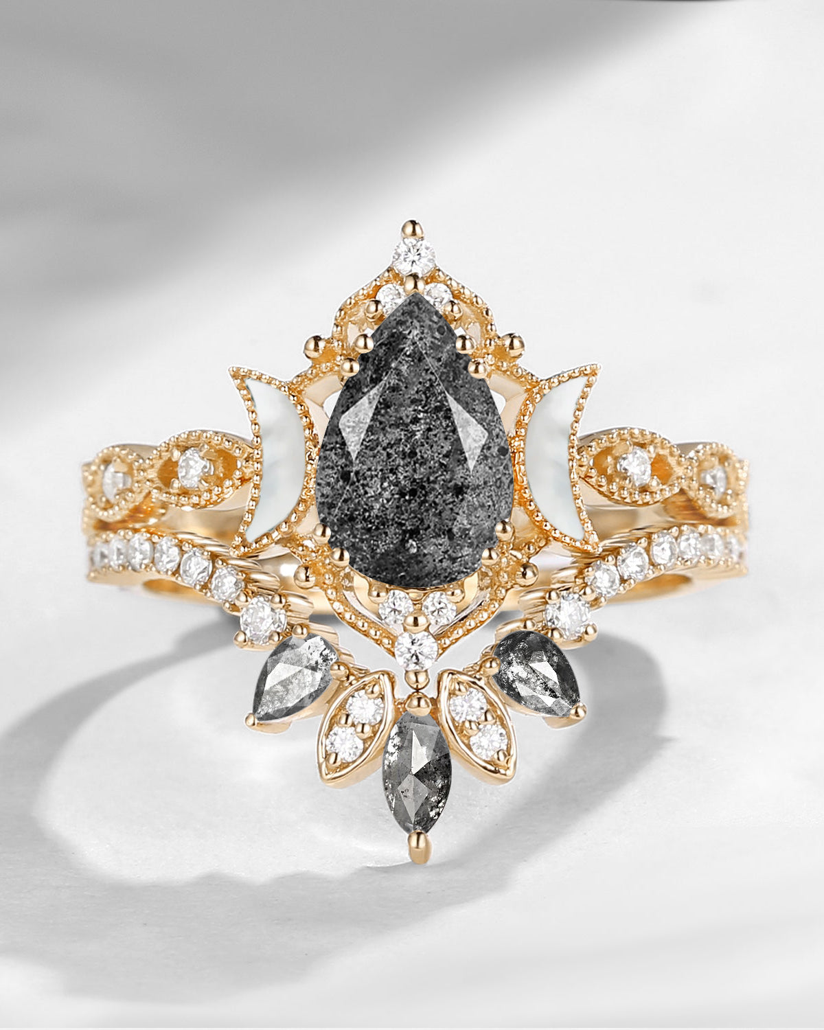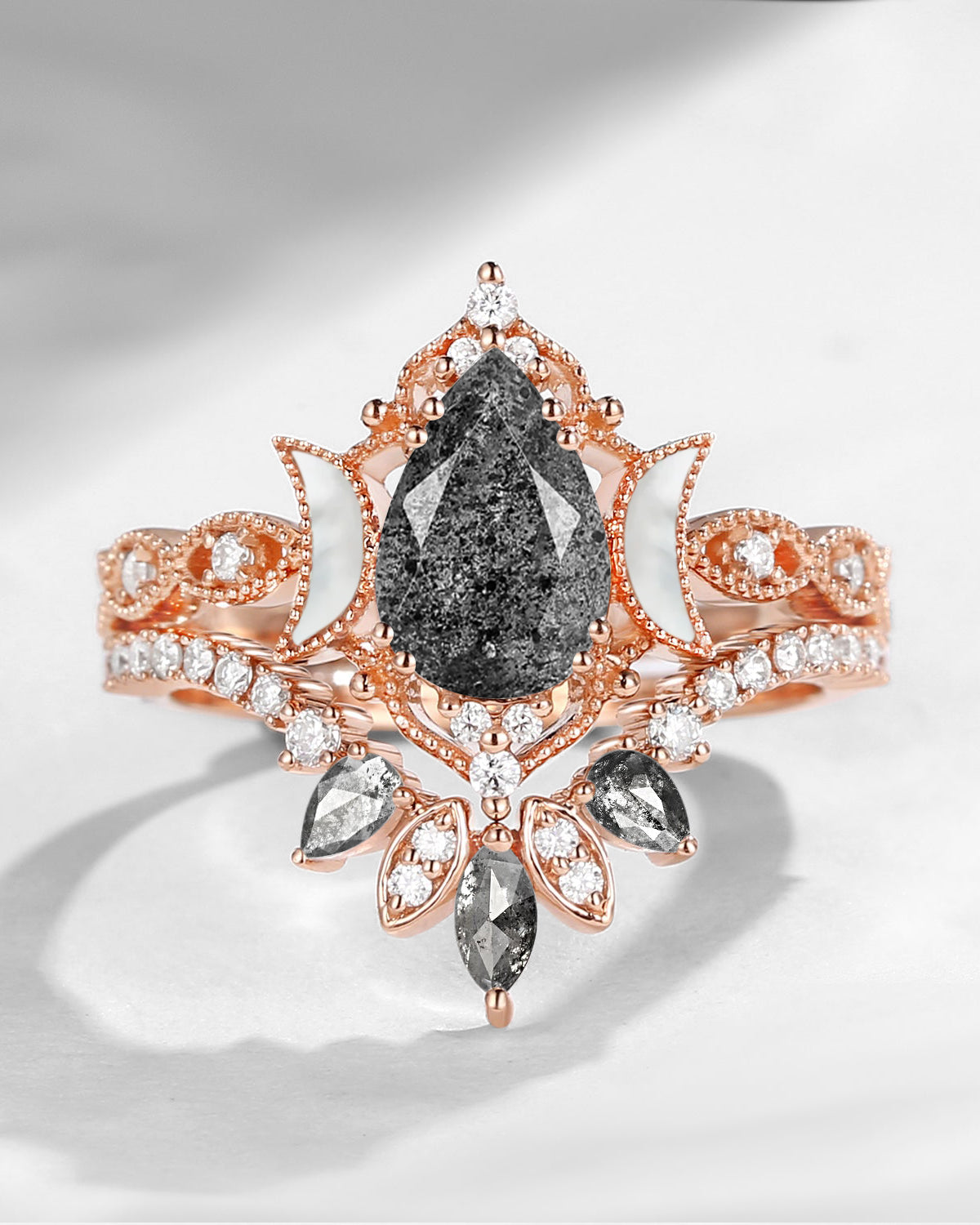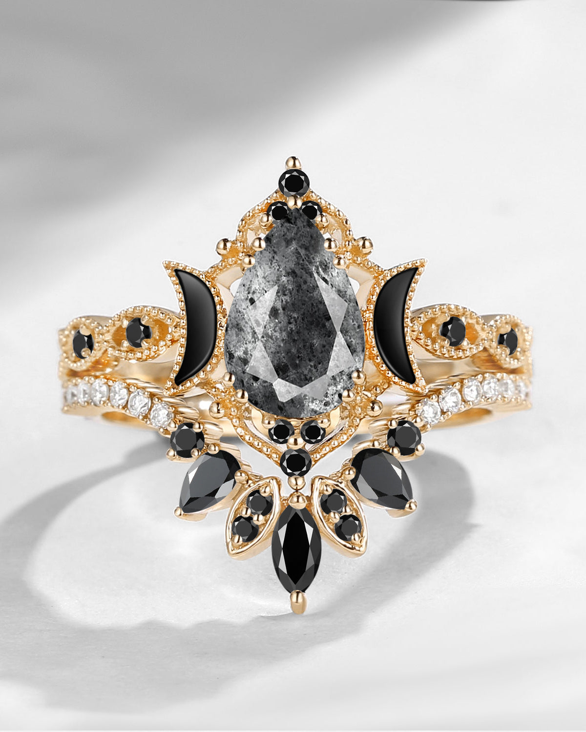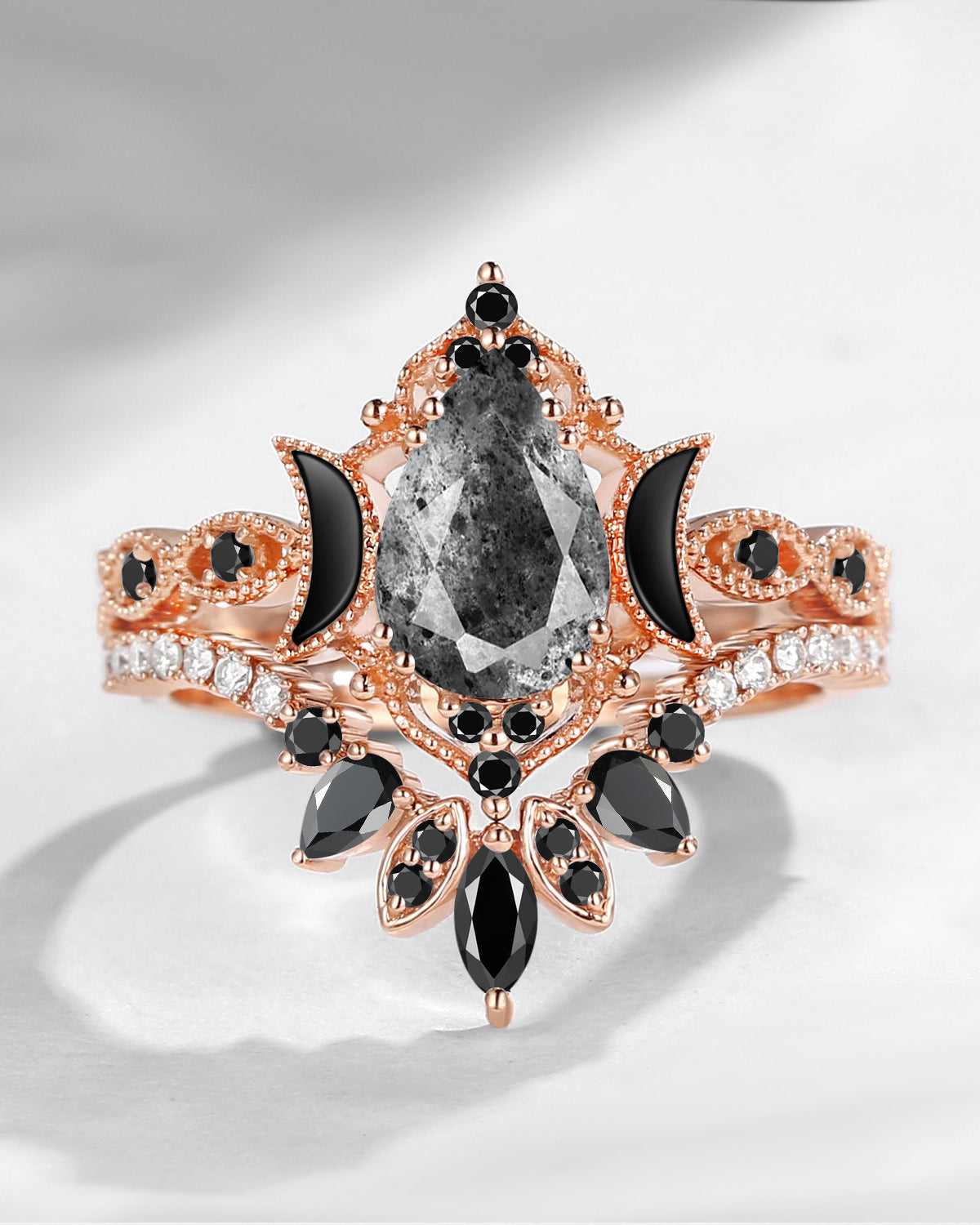 Unique Coffin Cut Herkimer Diamond Bat Wing Inspired Engagement Ring Set 2pcs