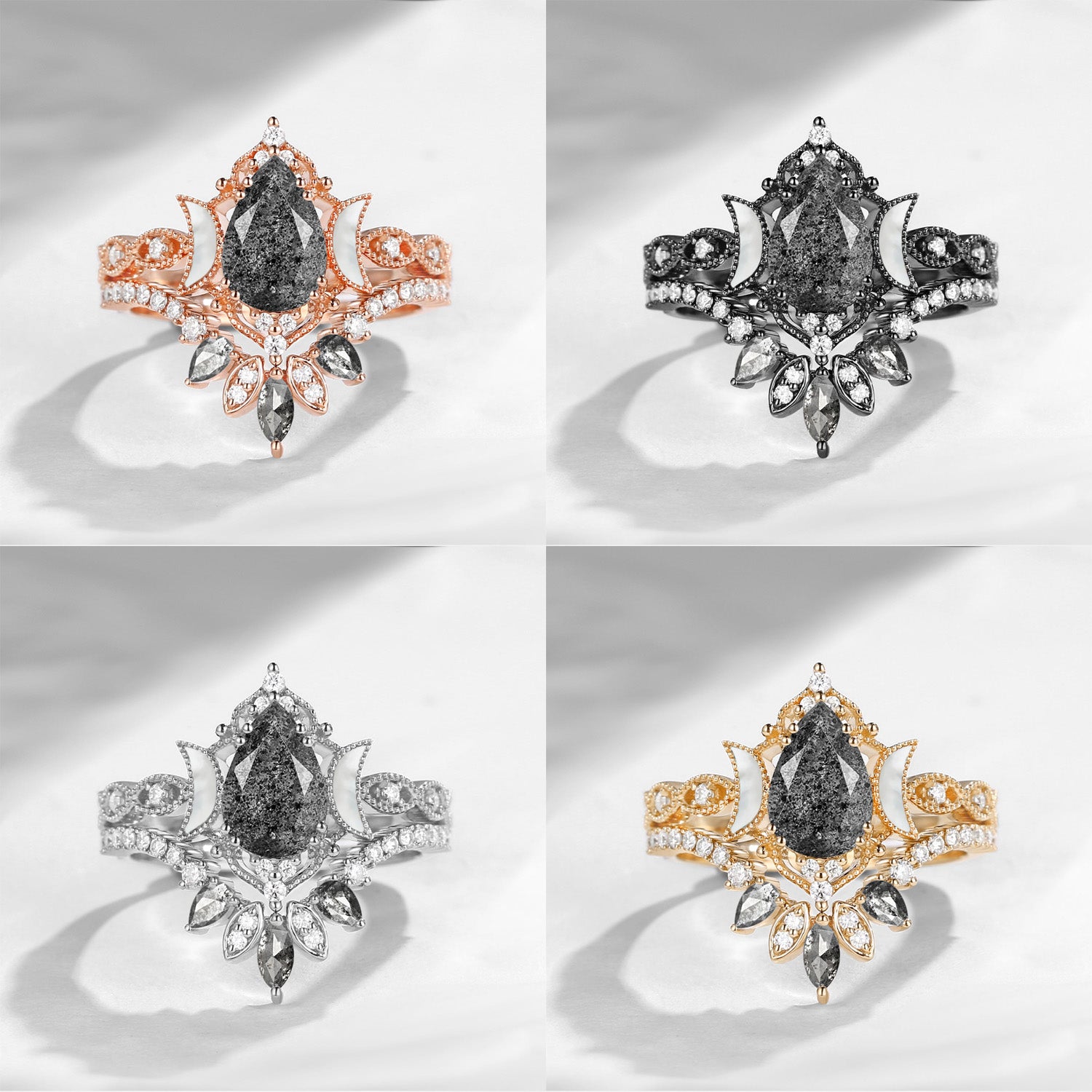 Gothic Coffin Cut Herkimer Diamond Nature Inspired Engagement Ring Set 2pcs